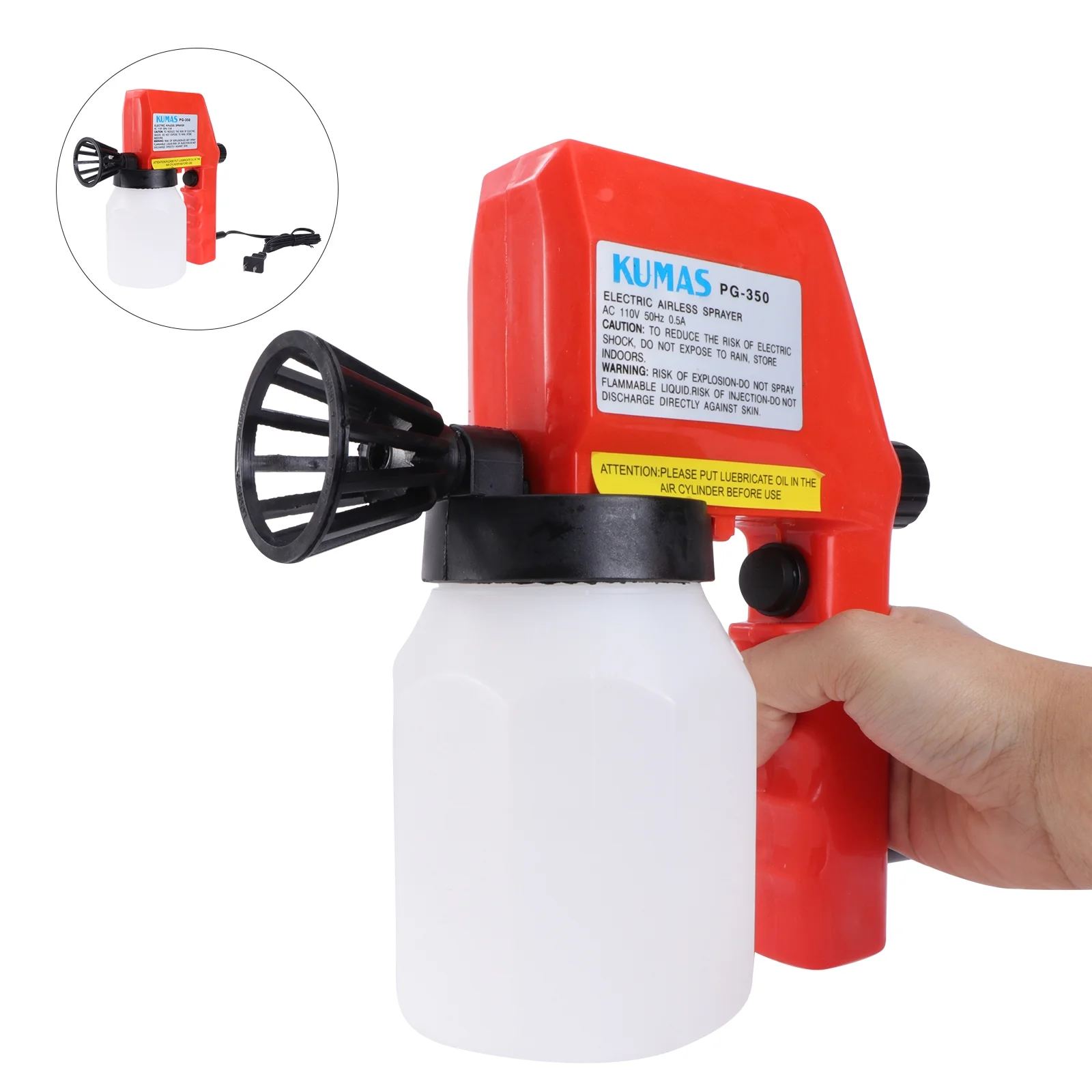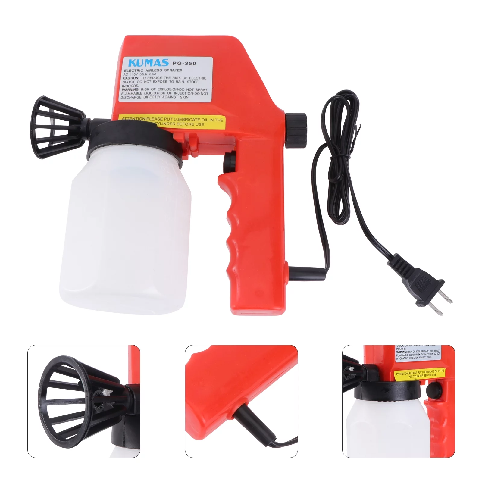OUNONA 110V 45W 600ml Electric Paint Sprayer DIY Spraying Tool Alcohol Paint Sprayer Atomizer with US Plug (Orange)
