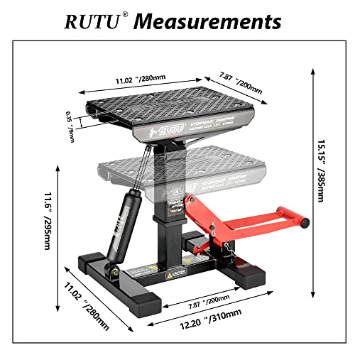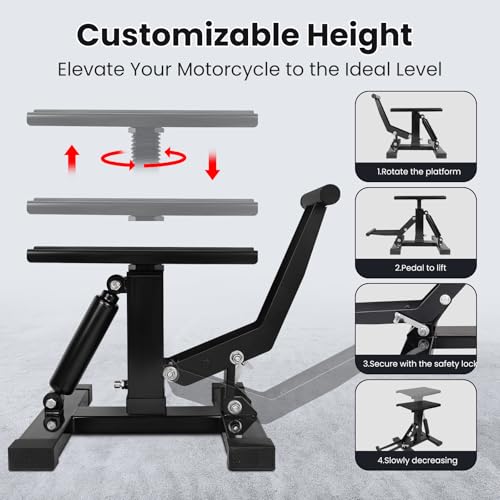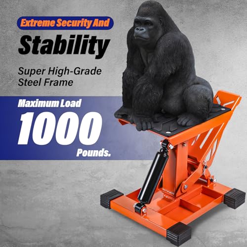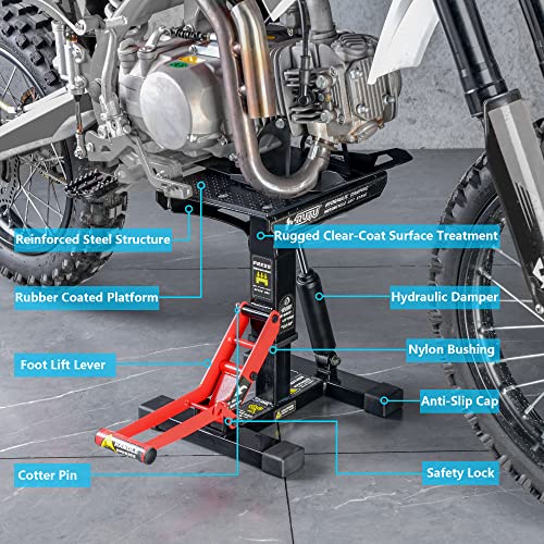 RUTU Hydraulic Motorcycle Lift Stand – Heavy-Duty Steel Maintenance Hoist Jack for Dirt Bike, Snowmobile - Motorcycle Stand Lift with 1000Lbs Capacity - Motorbike Repair Accessories Tools