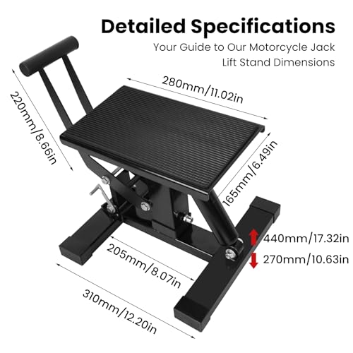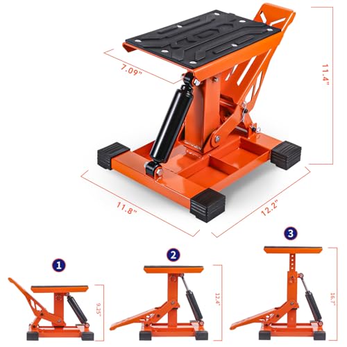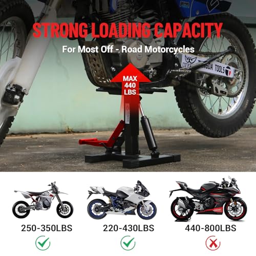 Dirt Bike Lift Stand, Hydraulic Motorcycle Lift Stand 440 Lbs Capacity, Adjustable Height Hoist Table, for Dirt Pit Bike Repair, Maintenance, Motorbike Repair Accessories Tools