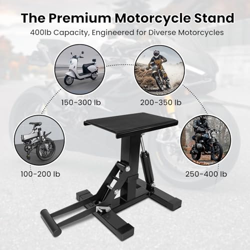 Motorcycle Jack Lift Stand 400 lbs Capacity, Heavy Duty Steel Hydraulic Dirt Bike Stand Lift with Adjustable Height Hoist Table for for Pit Bikes ATVs Maintenance, Motorbike Repair Accessories Tools