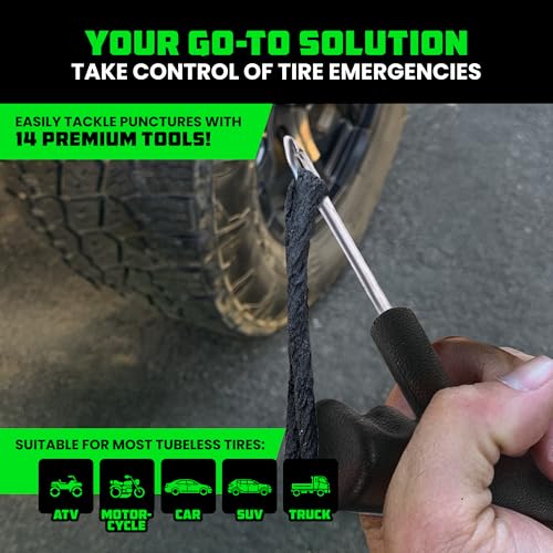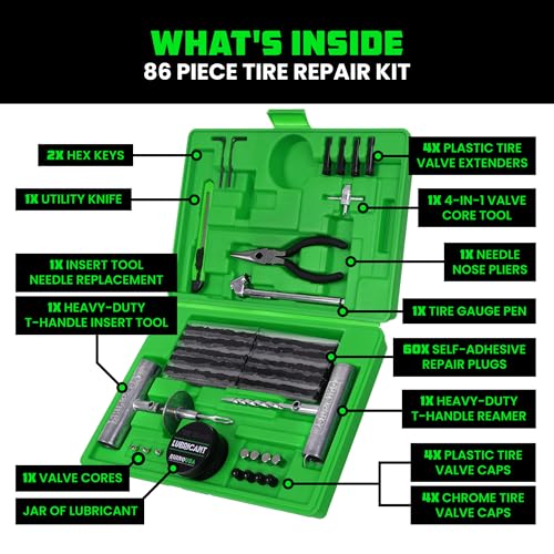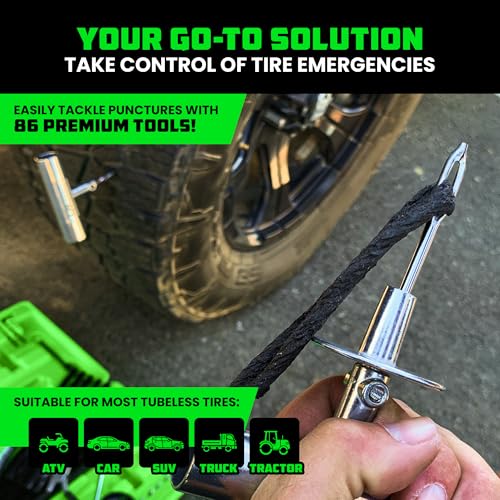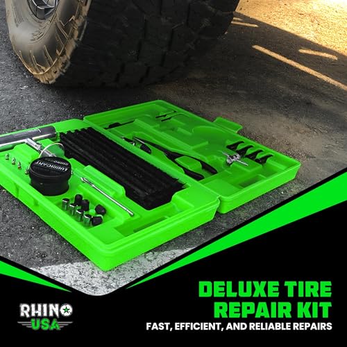 Rhino USA Tire Repair Kit (86-Piece) Professional Heavy Duty Tire Plug Kit to Fix Punctures & Patch Flats with Ease - Ultimate Tubeless Tire Repair Tools for Car, Motorcycle, ATV, UTV, RV and Trailer