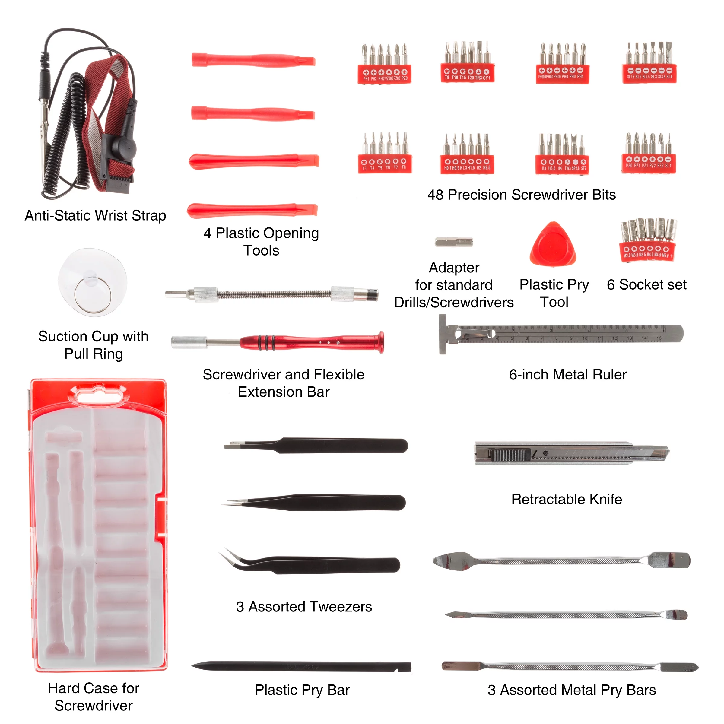 Stalwart Electronic Repair Tech Tool Kit- 70 Piece Set with Precision Screwdriver, Bits, Tweezers and More For Repairing Cell Phone/Tablet/Laptop