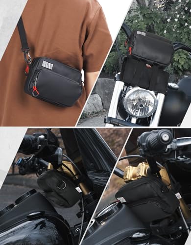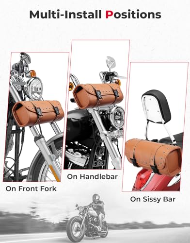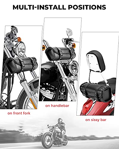 KEMIMOTO Motorcycle Bag, Handlebar Tool Bag Storage Accessory Saddlebag Universal for Front Fork Handle Bar Sissy Bar Compatible with Cruiser Softail Dyna Sportsters