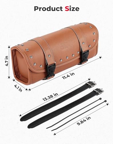 KEMIMOTO Motorcycle Tool Fork Bag PU Leather Universal Saddlebag for Front Fork Handlebar Sissybar Storage Pouch Motorcycle Roll Bag