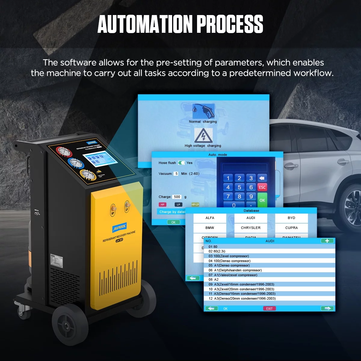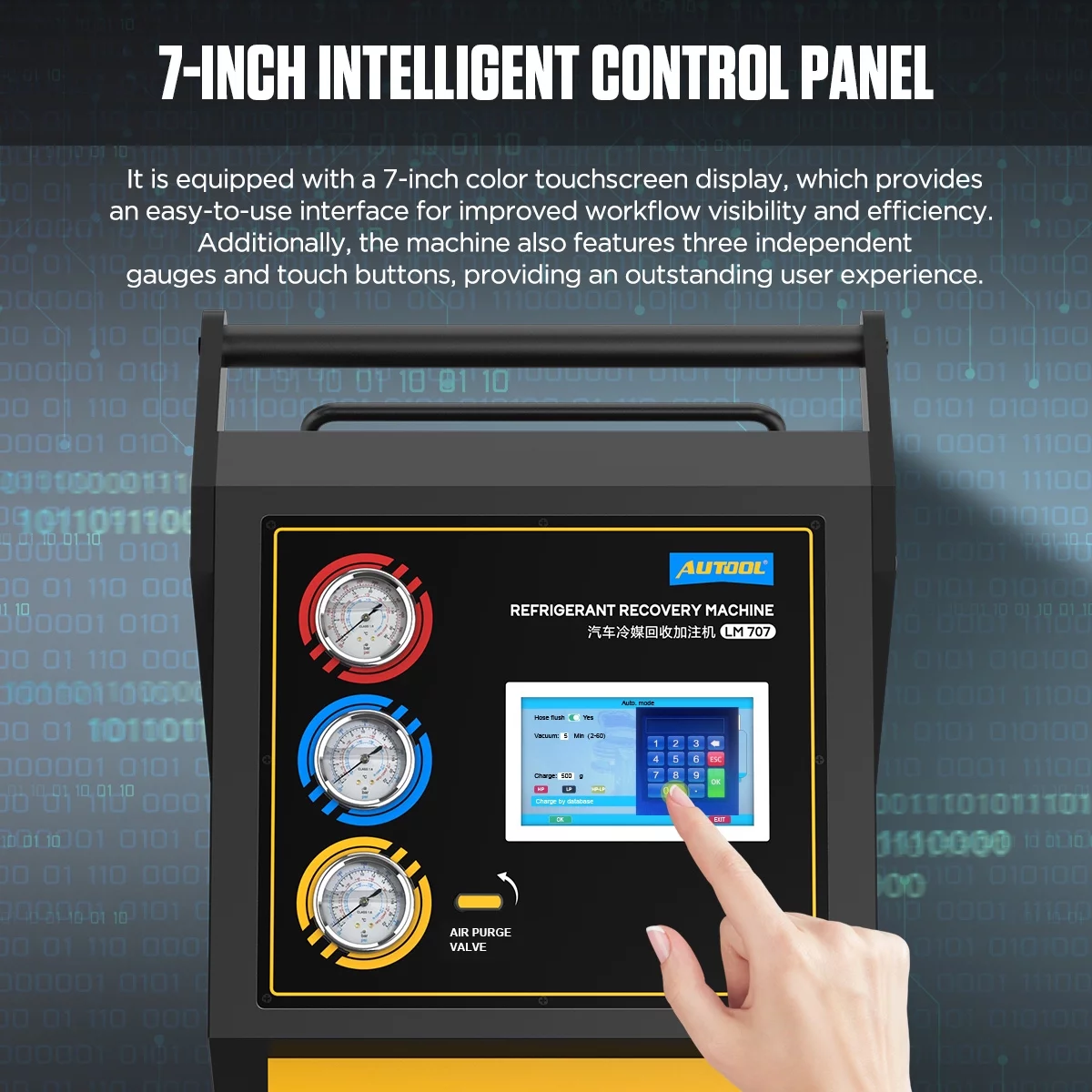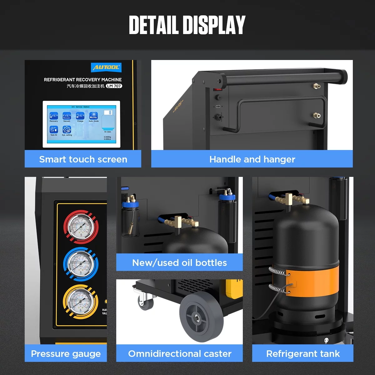 AUTOOL LM707 Automoatic AC Refrigerant Recharge Recovery Machine 3/8 HP Refrigerant Recovery Machine AC 110V 60Hz Refrigerant Recycle Filling Machine Fully Automatic for R134a R1234yf Car A/C Systems