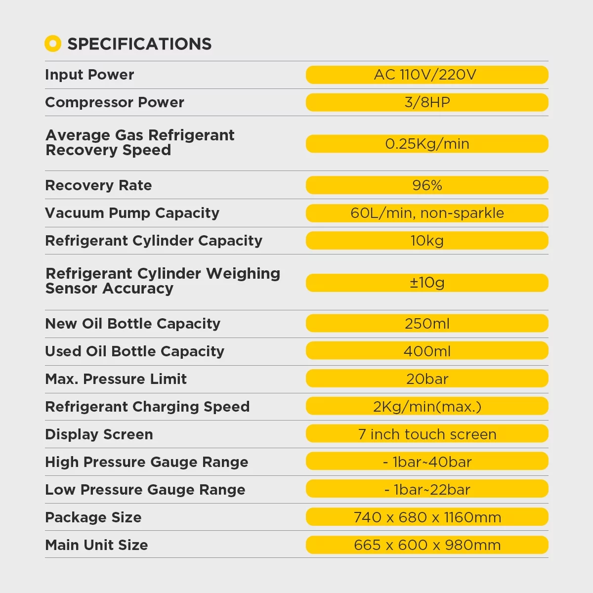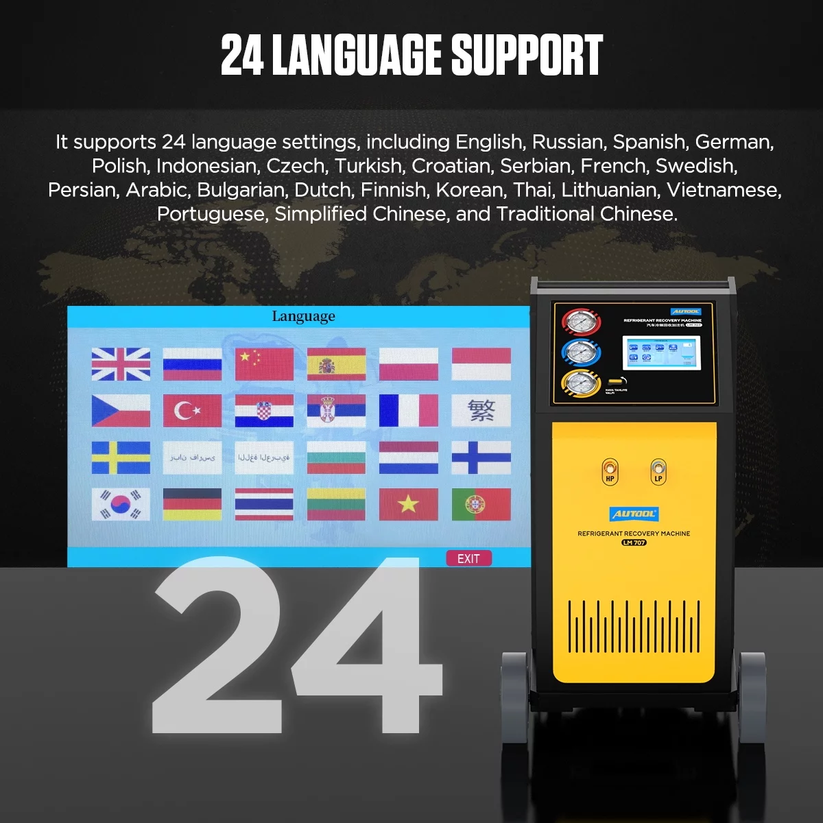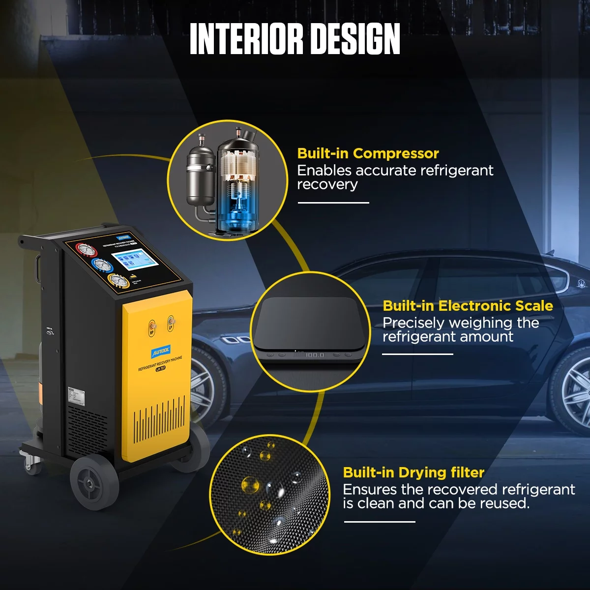 AUTOOL LM707 Automoatic AC Refrigerant Recharge Recovery Machine 3/8 HP Refrigerant Recovery Machine AC 110V 60Hz Refrigerant Recycle Filling Machine Fully Automatic for R134a R1234yf Car A/C Systems