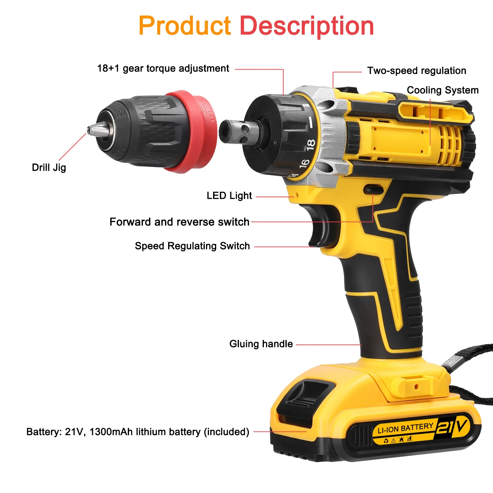 Walmeck Electric screwdriver,Driver Appliances Furniture Drill Screwdriver Tool Torque Brushed Drill Set Lithium Drill 21V Drill 2in1 Drill Appliances Furniture Installation Power Tool Brushed Motor