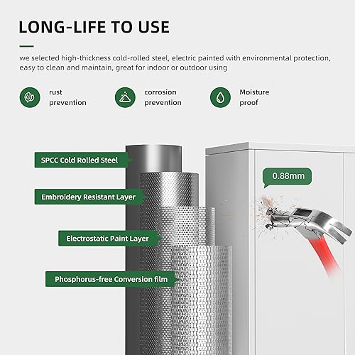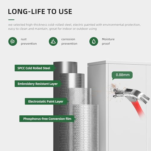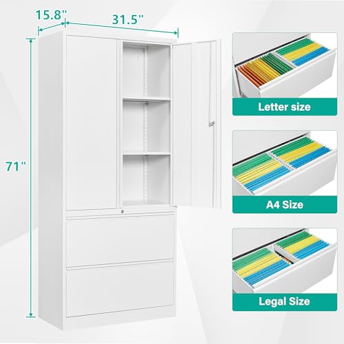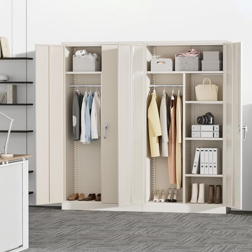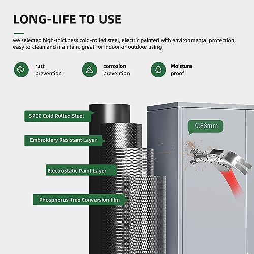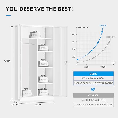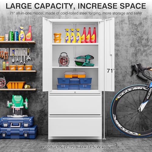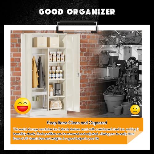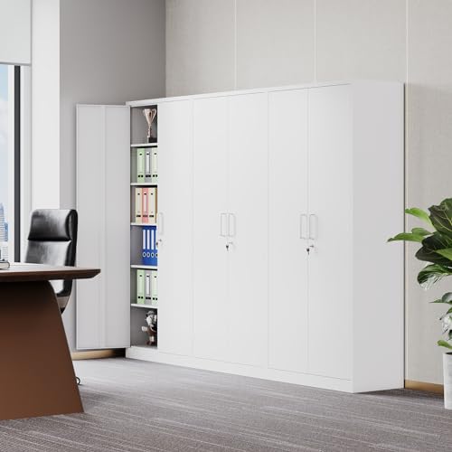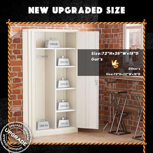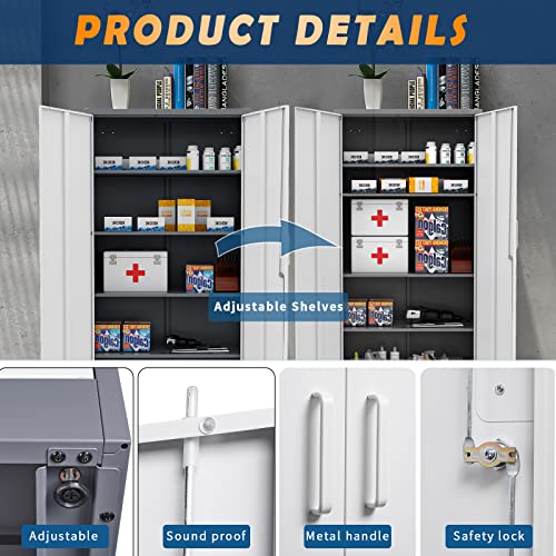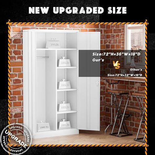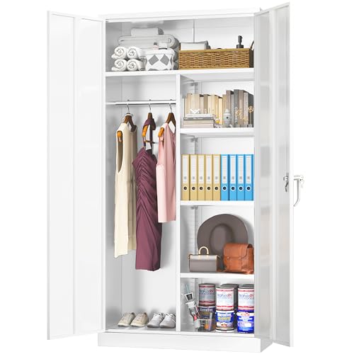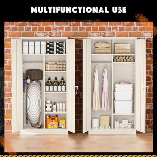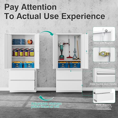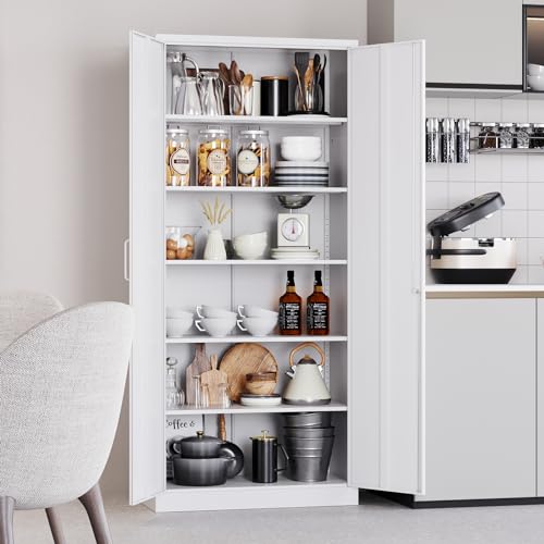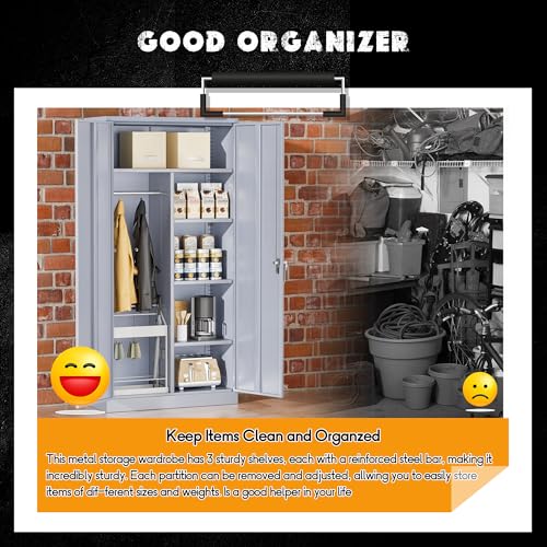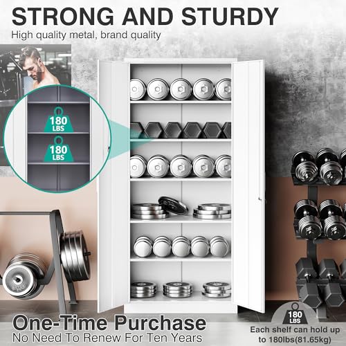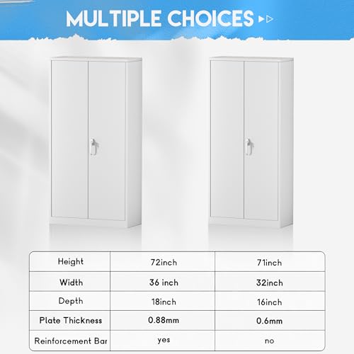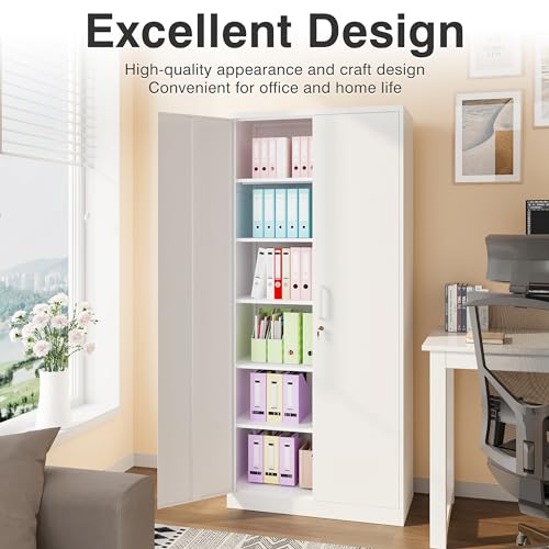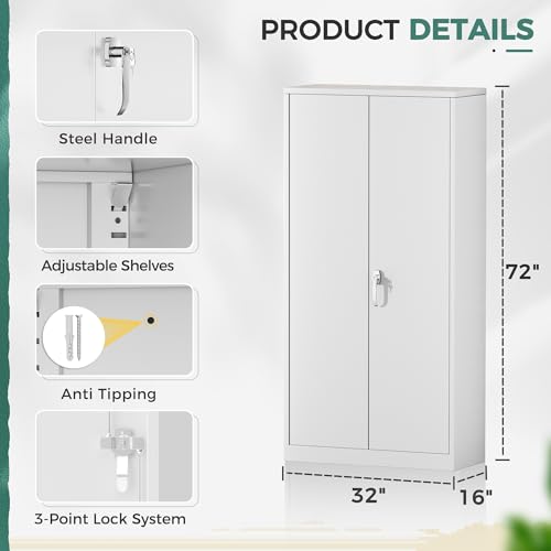 Yizosh Metal Garage Storage Cabinet with 2 Doors and 5 Adjustable Shelves - 71" Steel Lockable File Cabinet,Locking Tool Cabinets for Office,Home,Garage,Gym,School (Gray White)