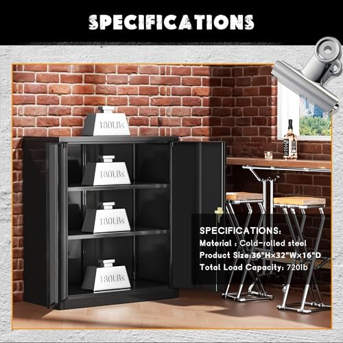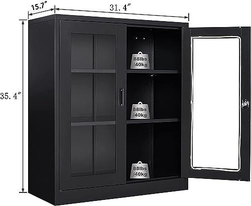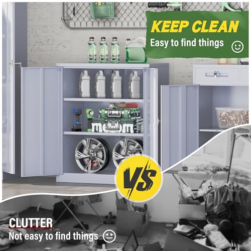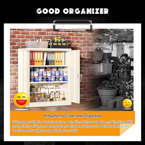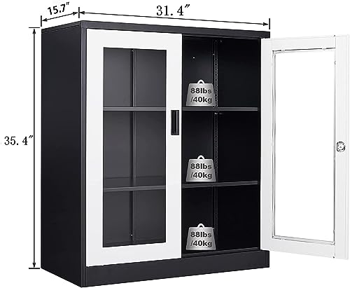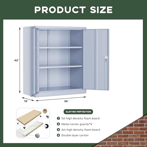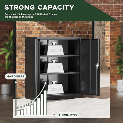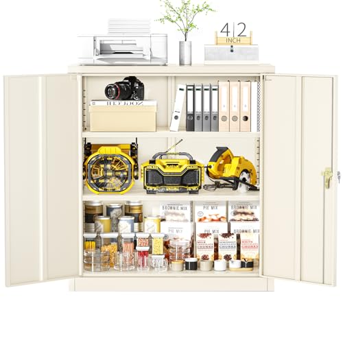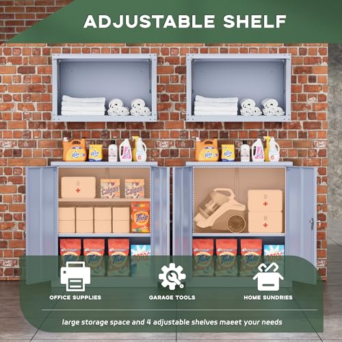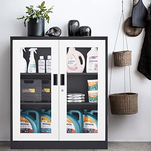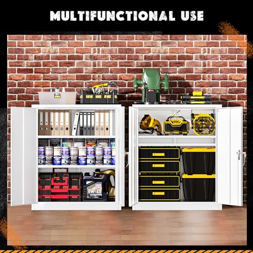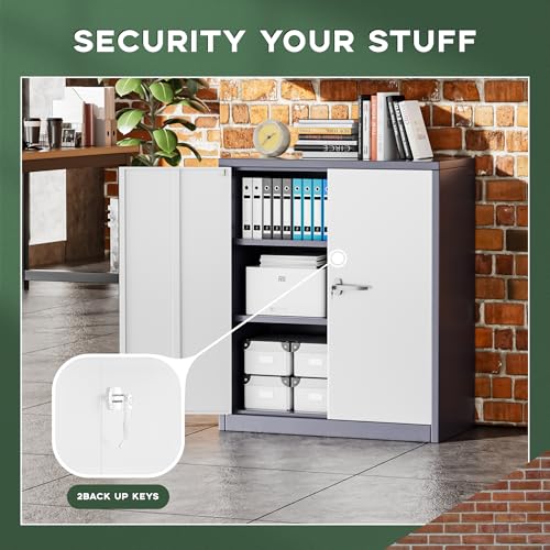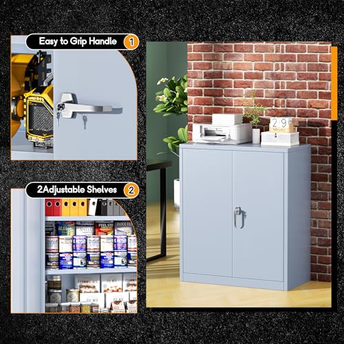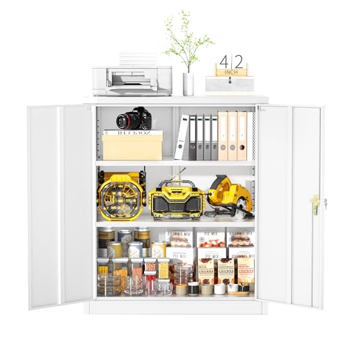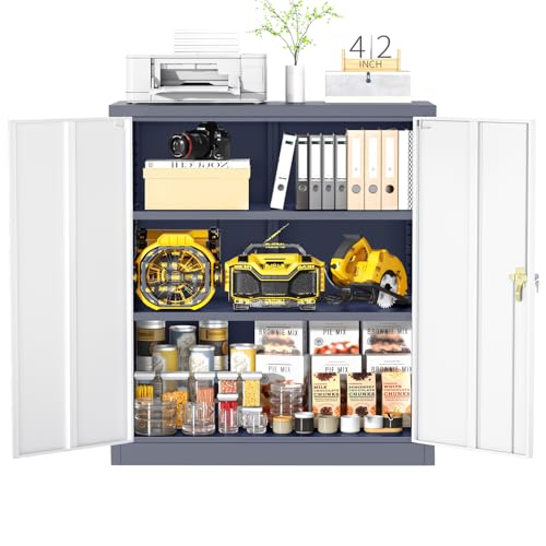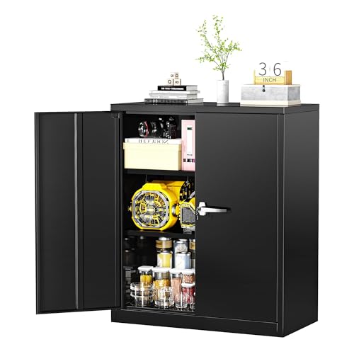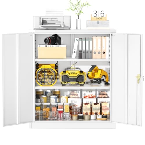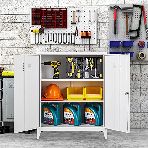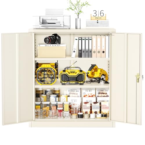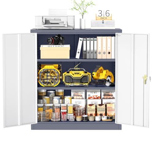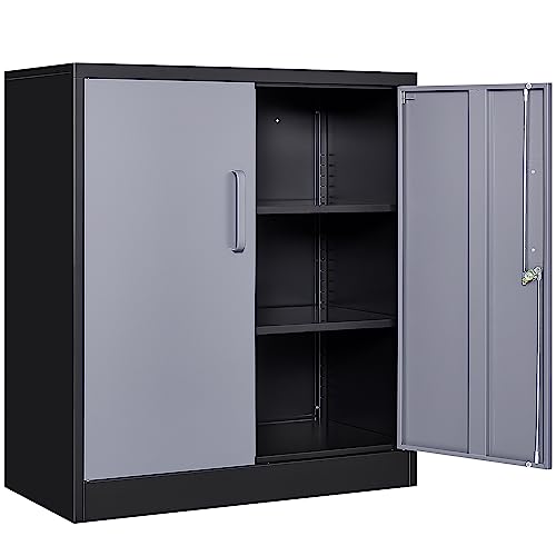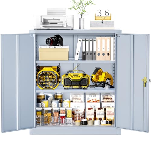 SISESOL Metal Storage Cabinet Locked Steel Cabinet with 2 Adjustable Shelves,Office Cabinet Locking Tool Cabinets,Kitchen Storage Cabinets Metal Locker Small Counter Height Storage Cupboard 36" H