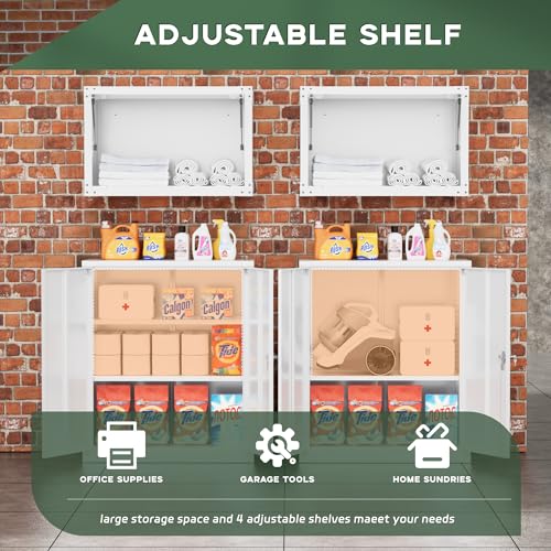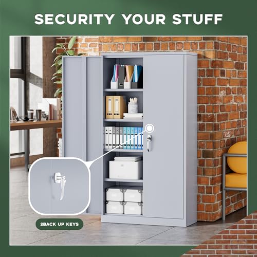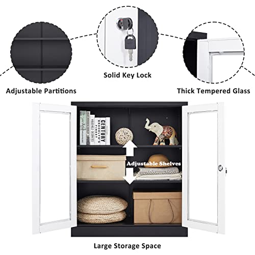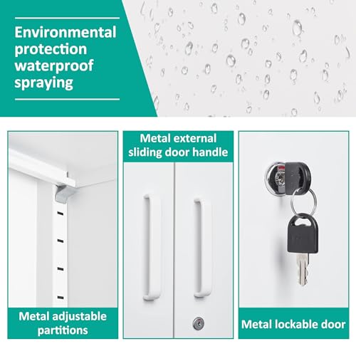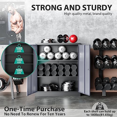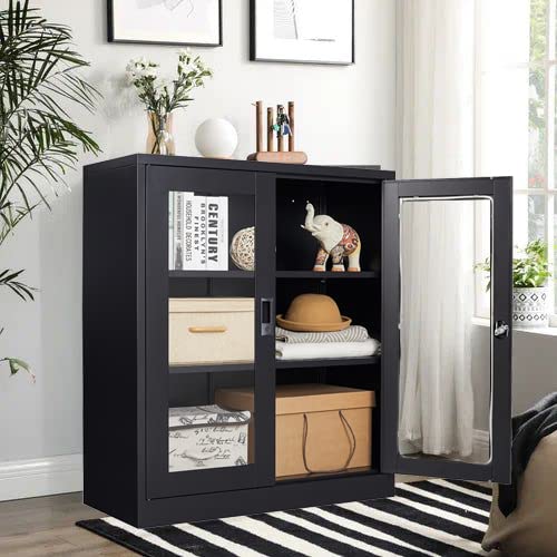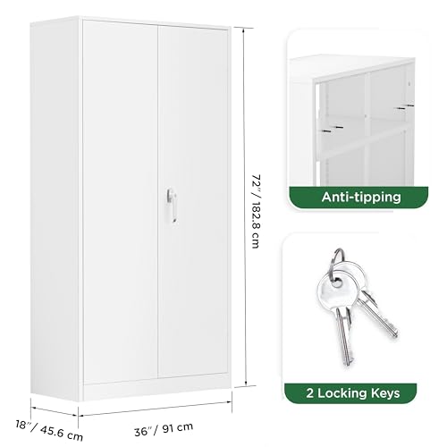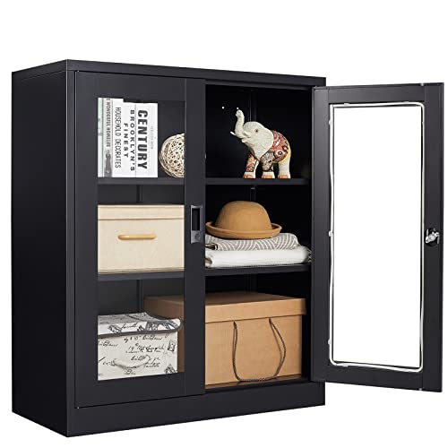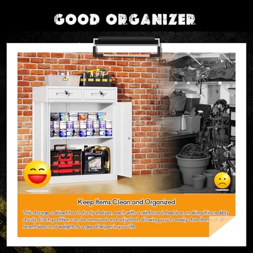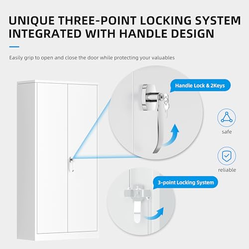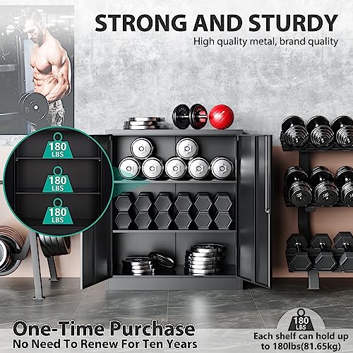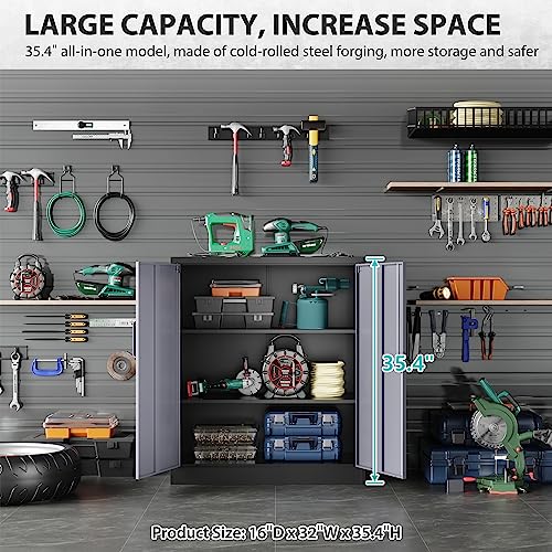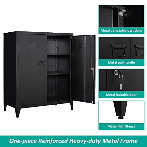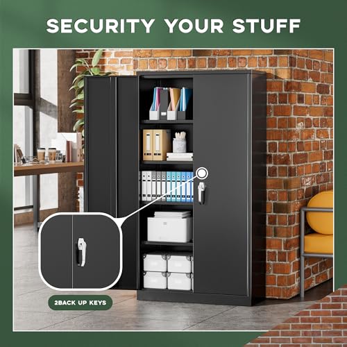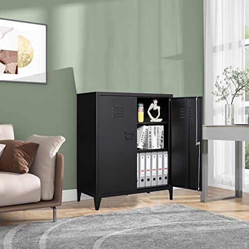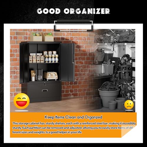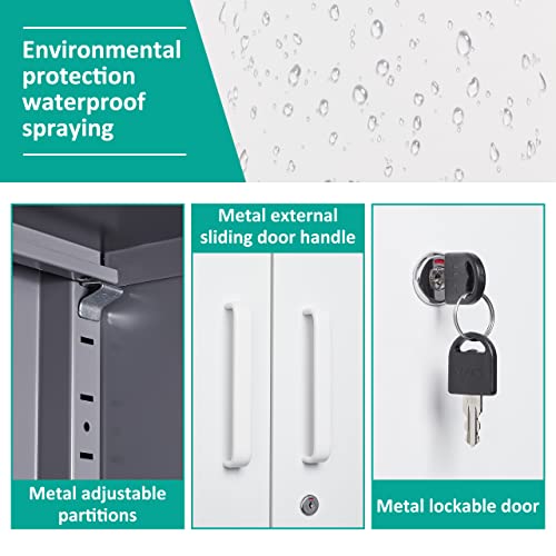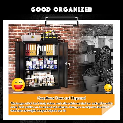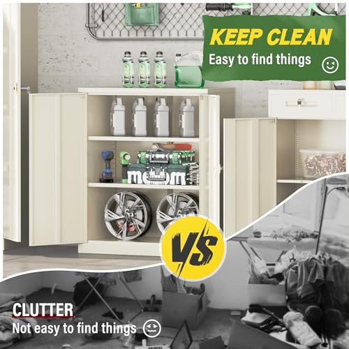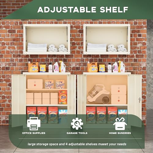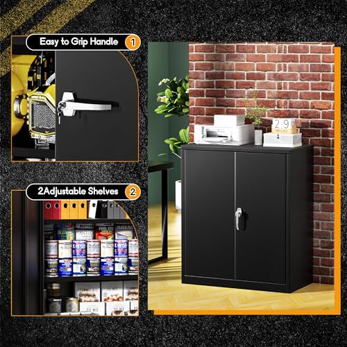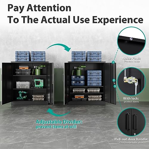 SISESOL Metal Storage Cabinet Locked Steel Cabinet with 2 Adjustable Shelves,Office Cabinet Locking Tool Cabinets,Kitchen Storage Cabinets Metal Locker Small Counter Height Storage Cupboard 36" H