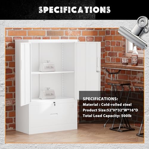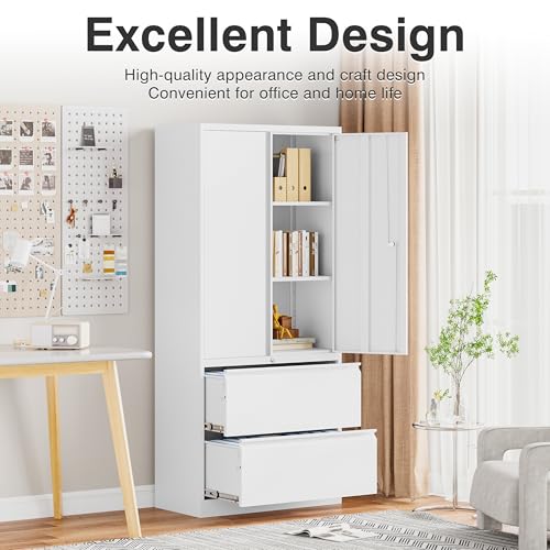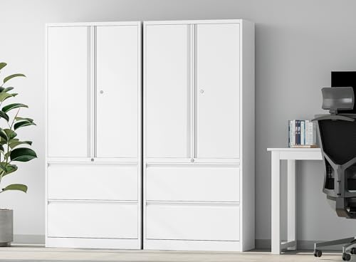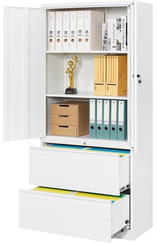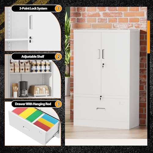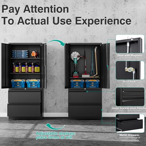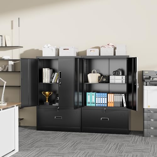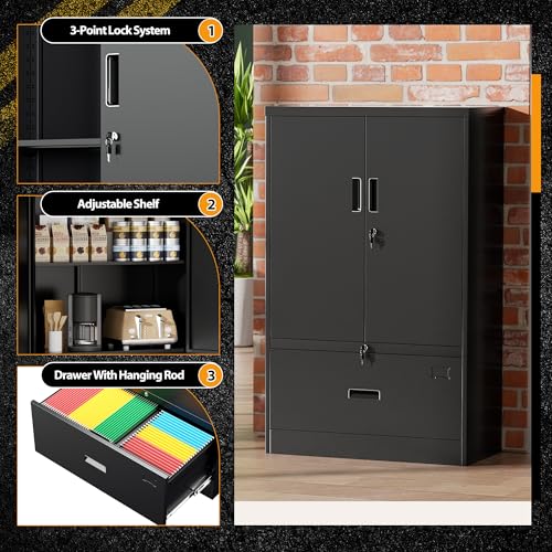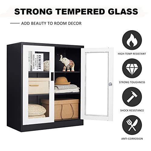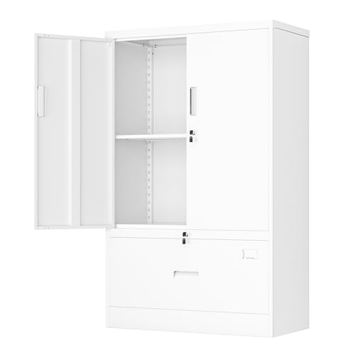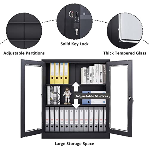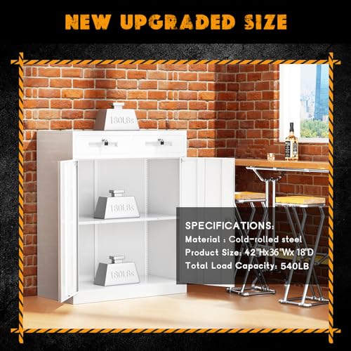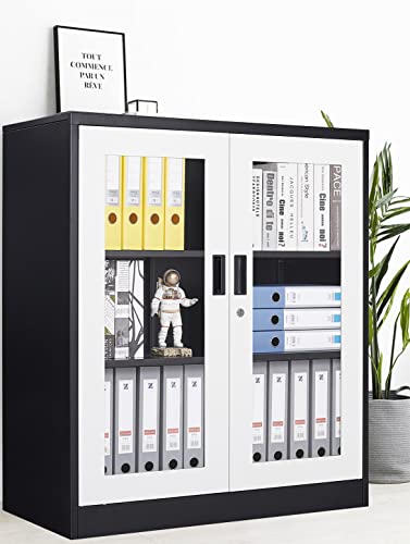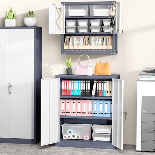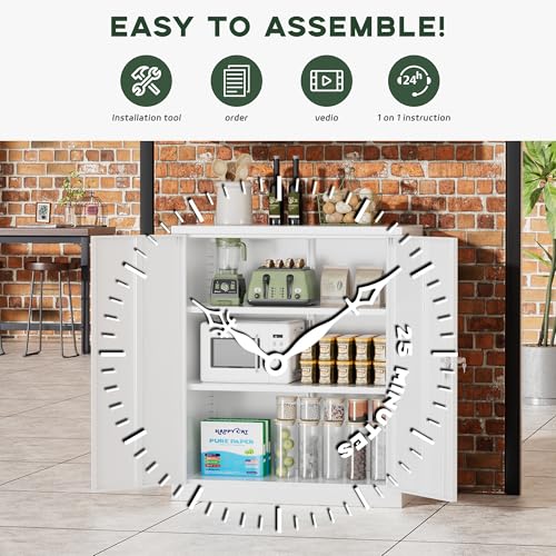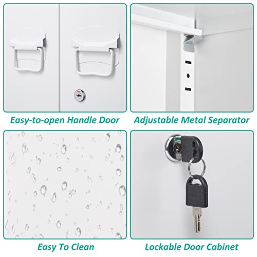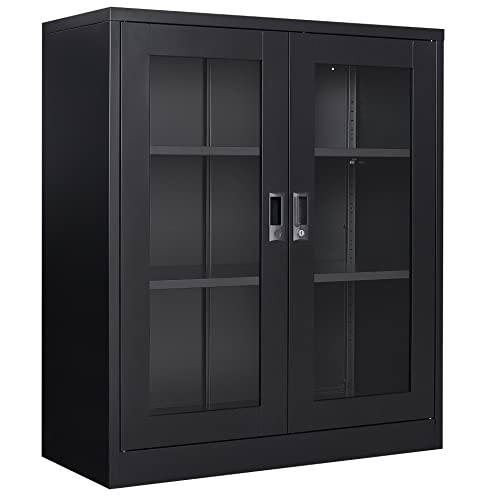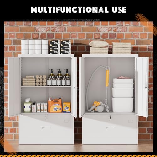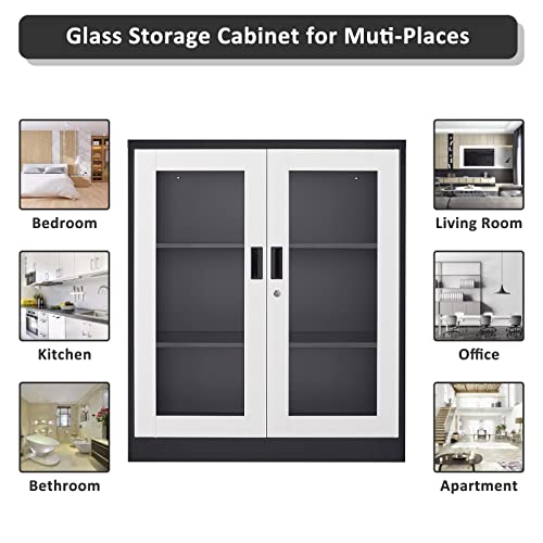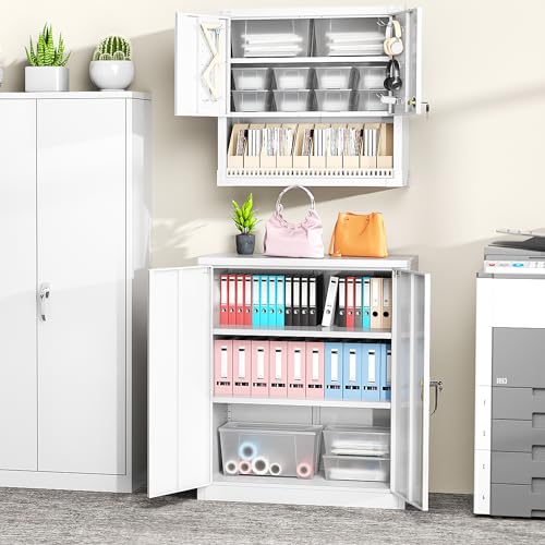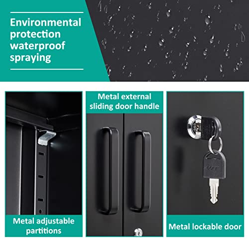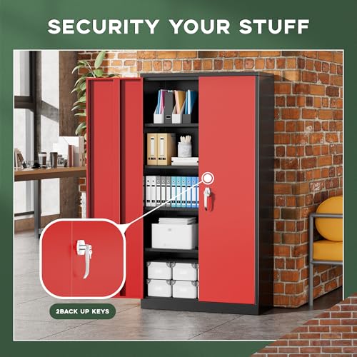 SISESOL Metal Storage Cabinet Locked Steel Cabinet with 2 Adjustable Shelves,Office Cabinet Locking Tool Cabinets,Kitchen Storage Cabinets Metal Locker Small Counter Height Storage Cupboard 36" H