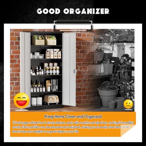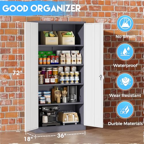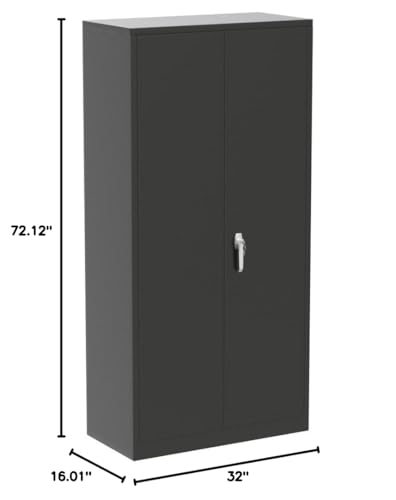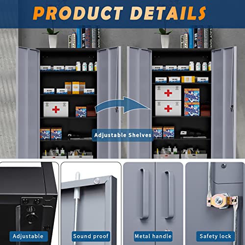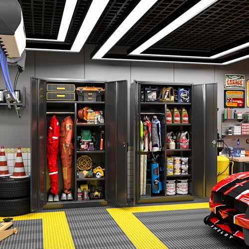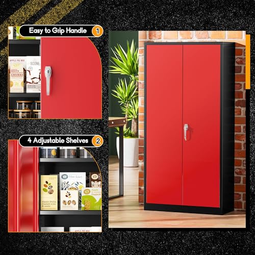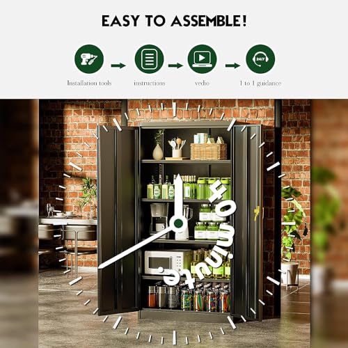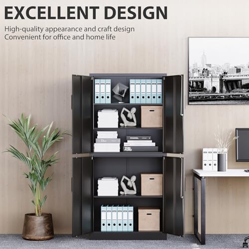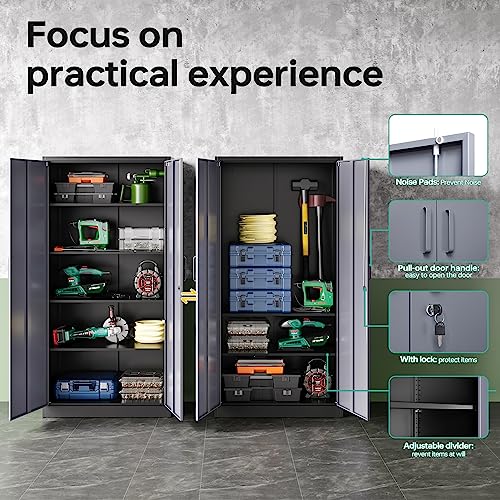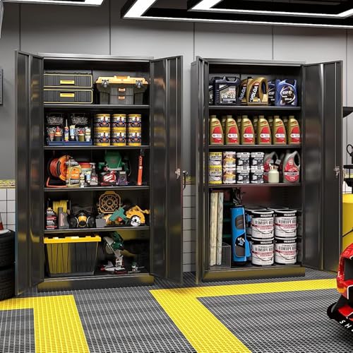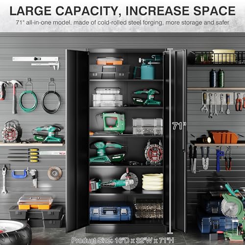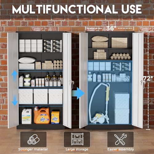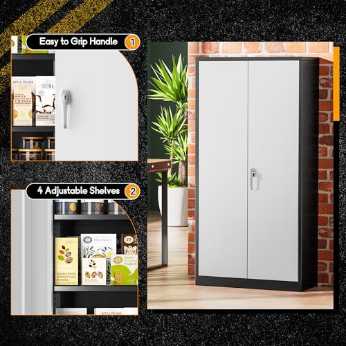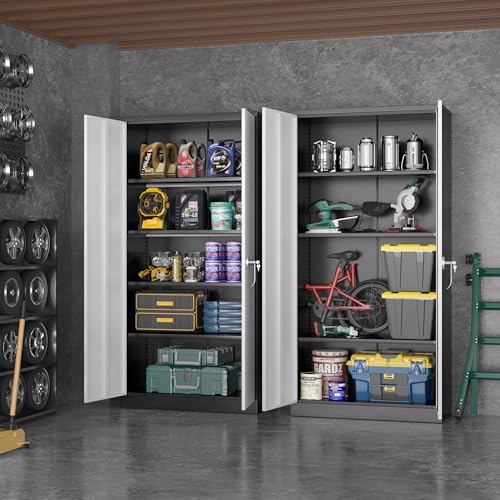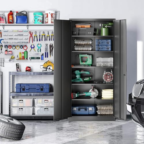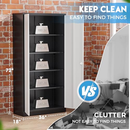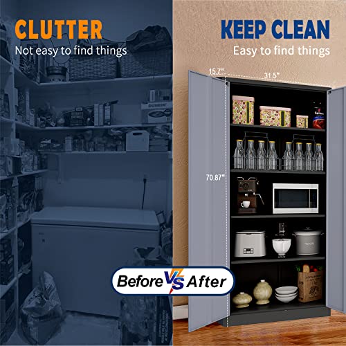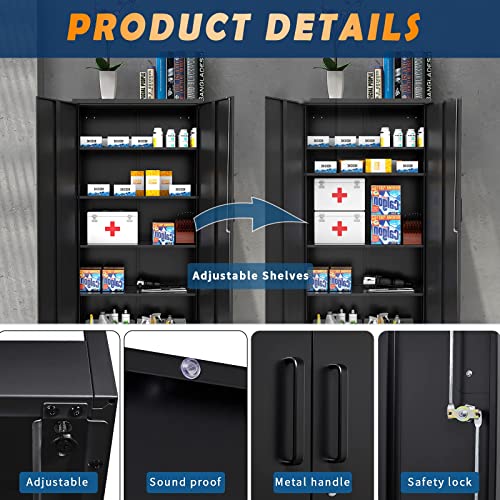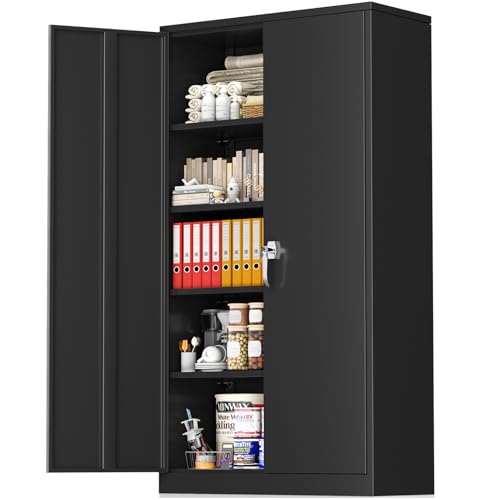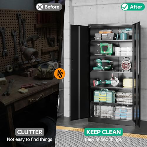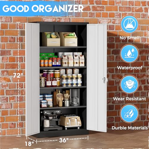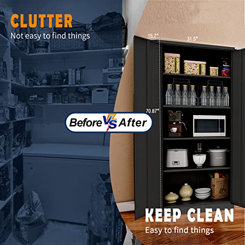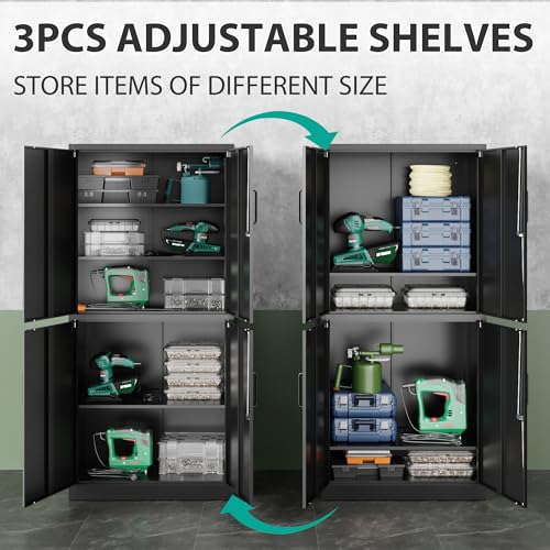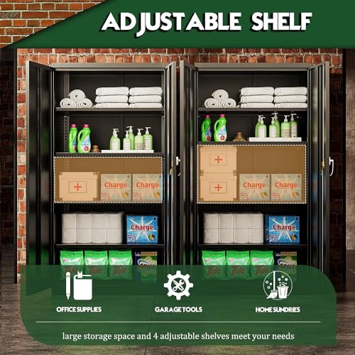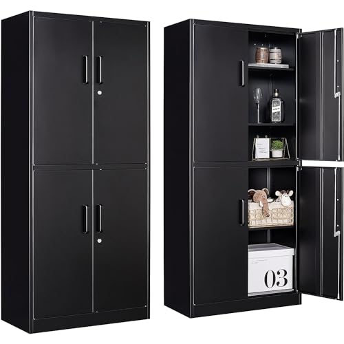 Greenvelly Metal Garage Storage Cabinet, 72” Locking Black Tool Steel Cabinet with Doors and 4 Shelves, Tall Metal Cabinets with Garage Storage Systems for Home Office, Kitchen/Pantry