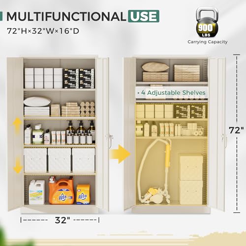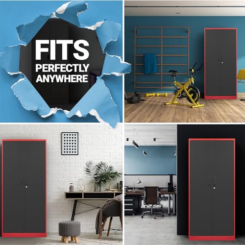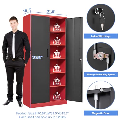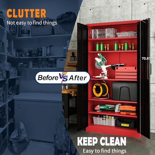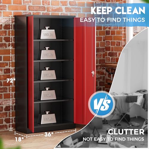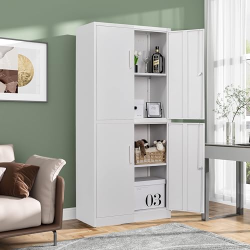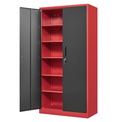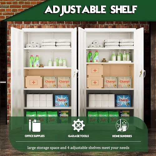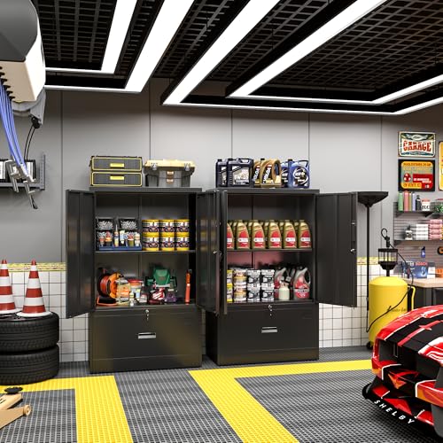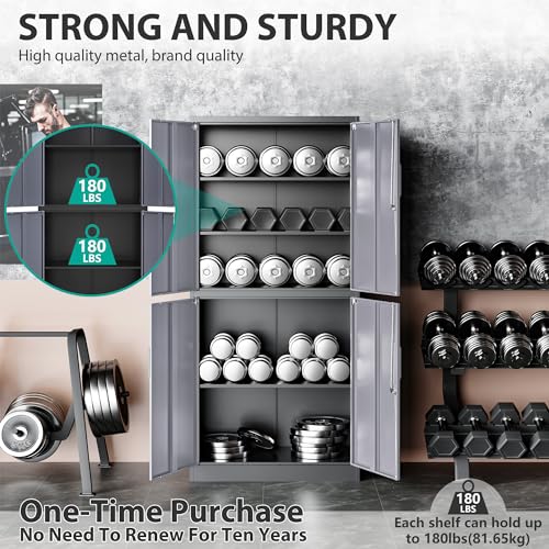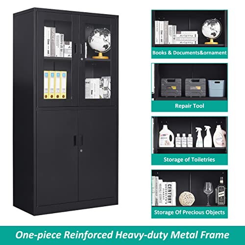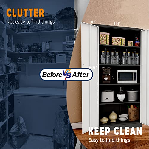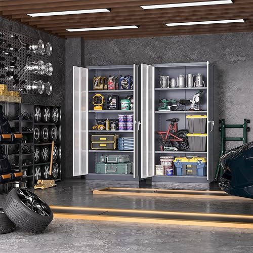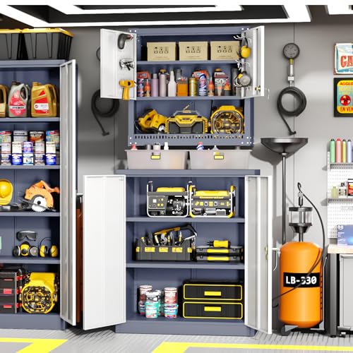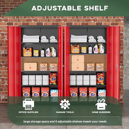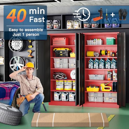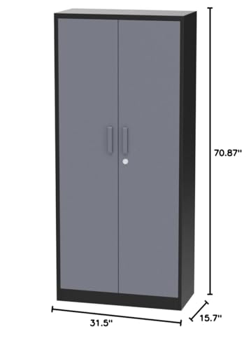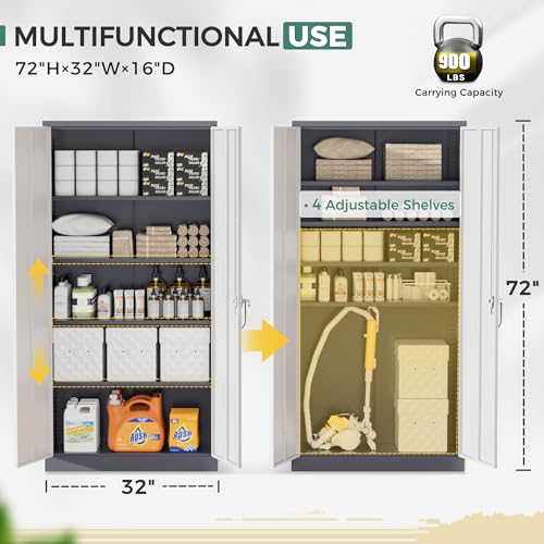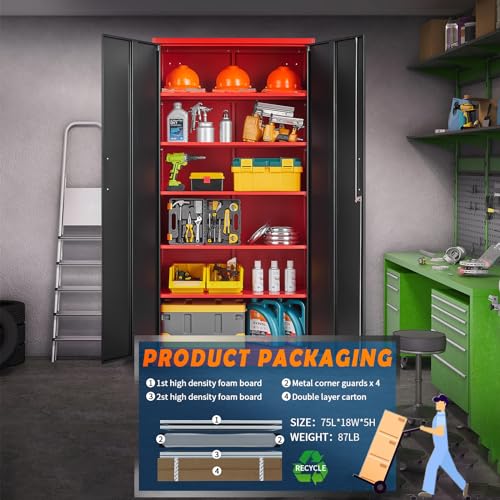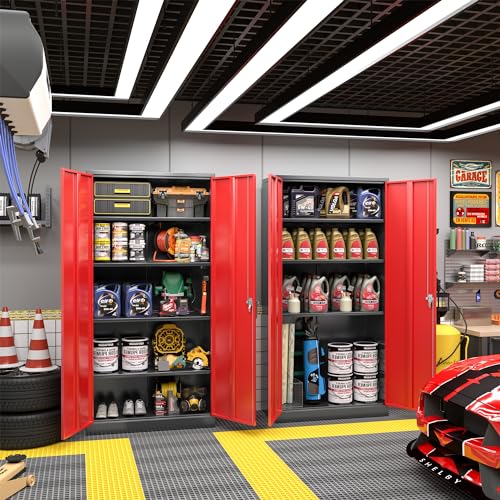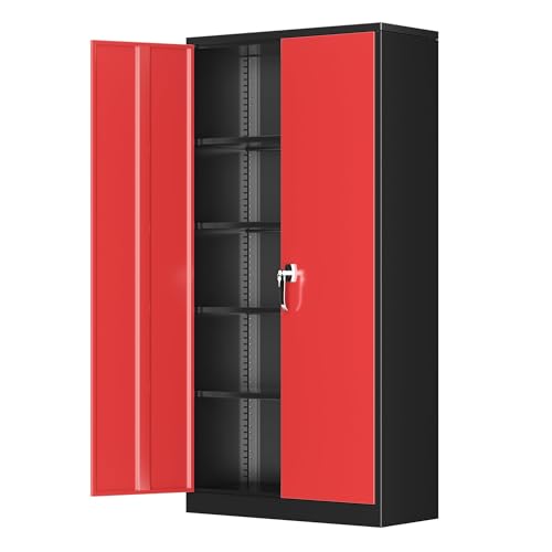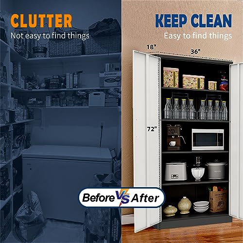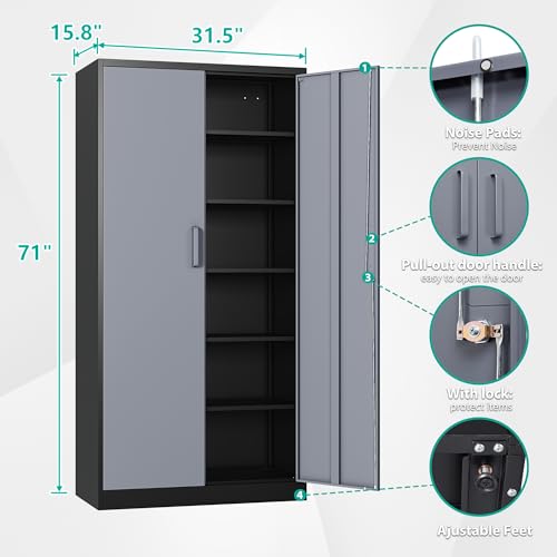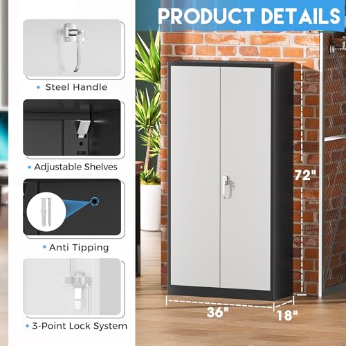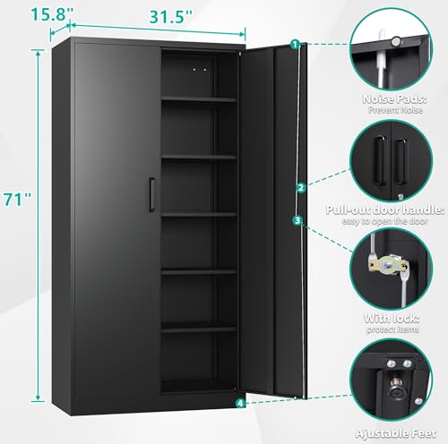 Greenvelly Metal Garage Storage Cabinet, 72” Locking Black Tool Steel Cabinet with Doors and 4 Shelves, Tall Metal Cabinets with Garage Storage Systems for Home Office, Kitchen/Pantry
