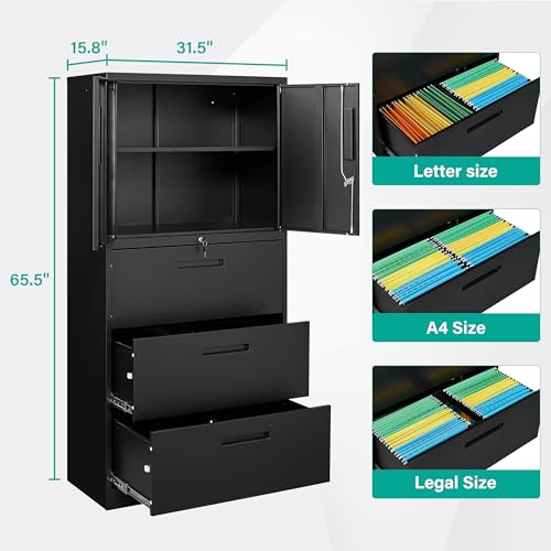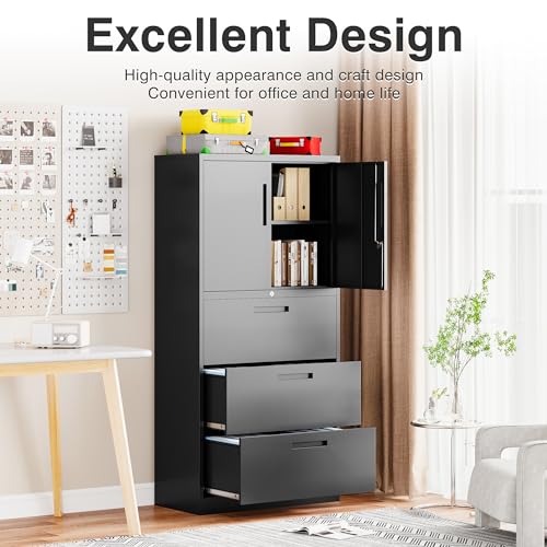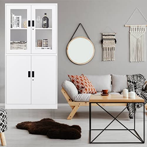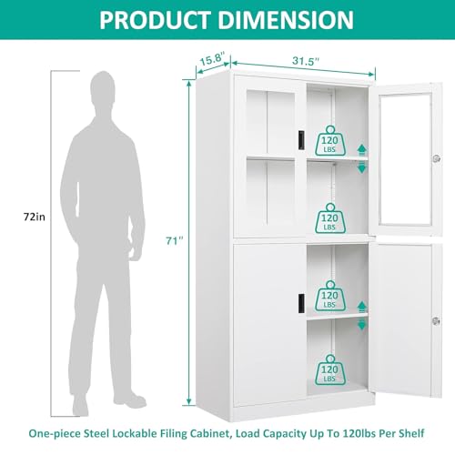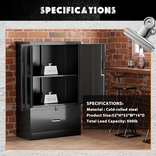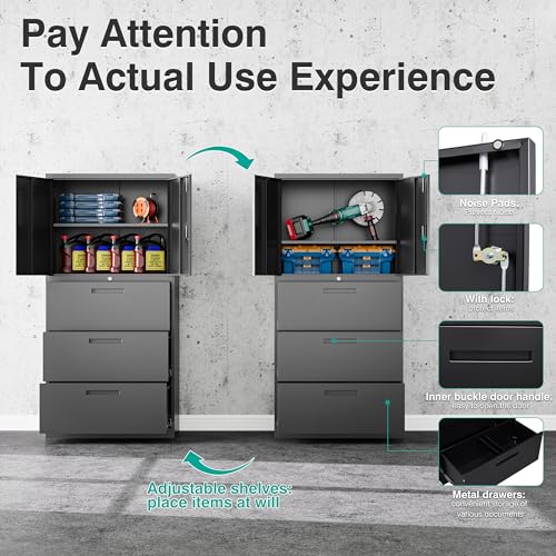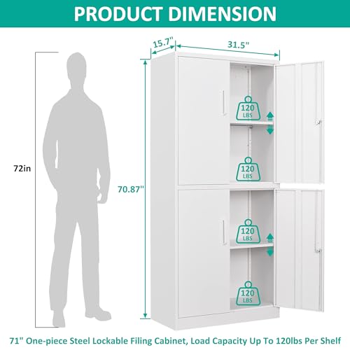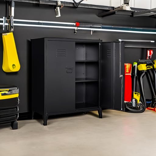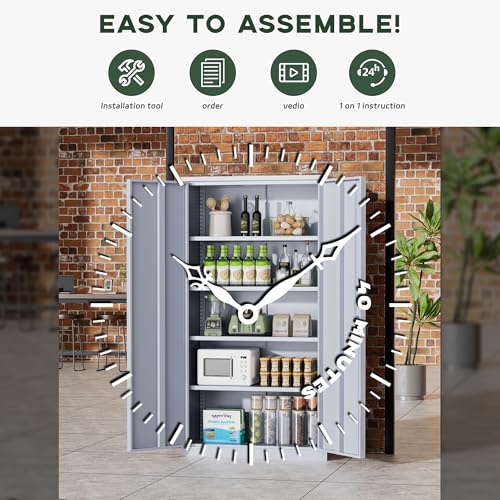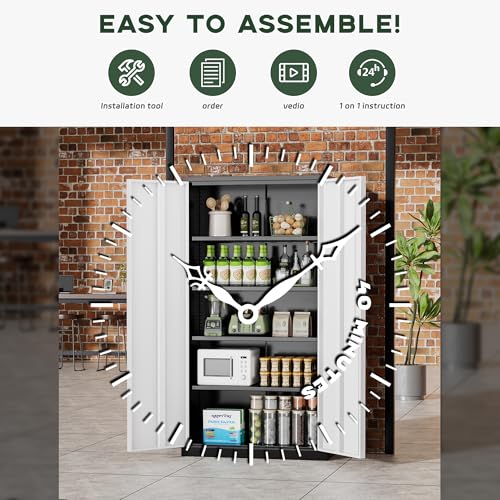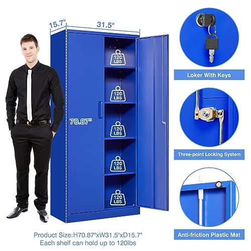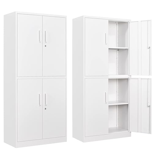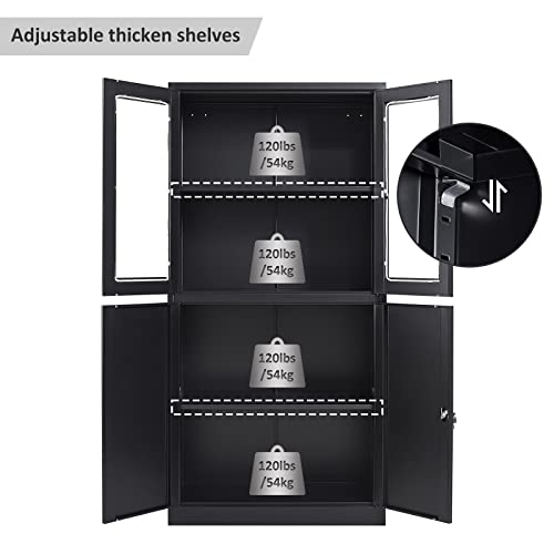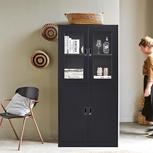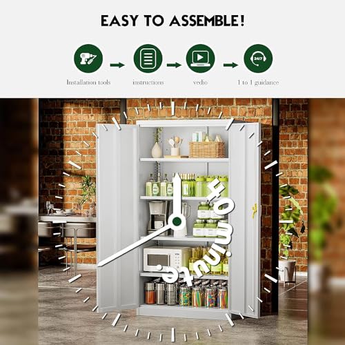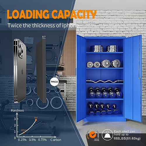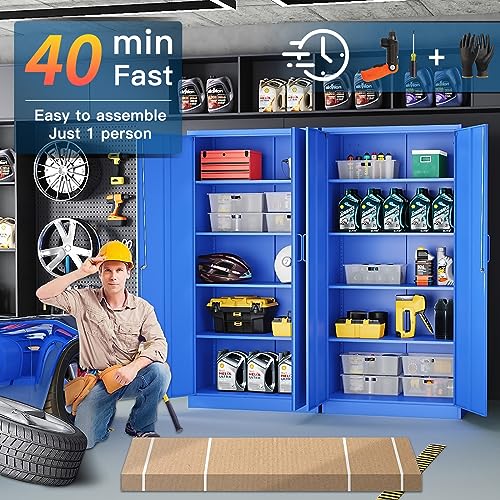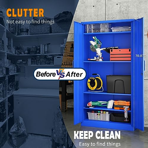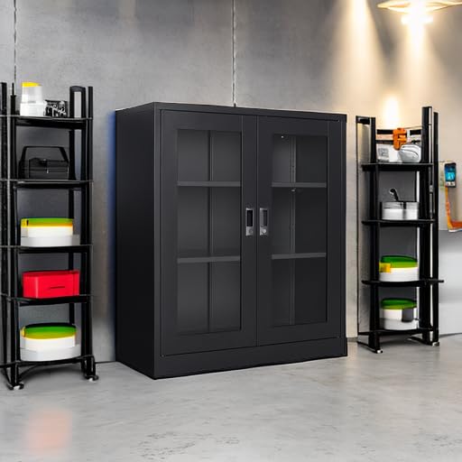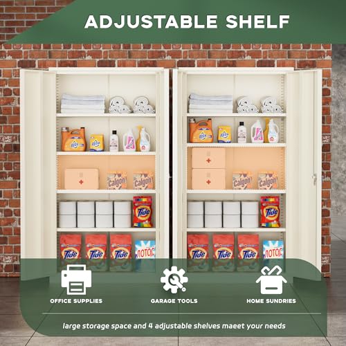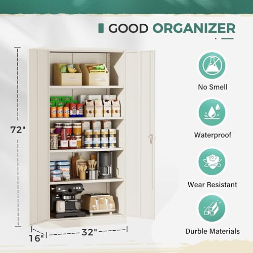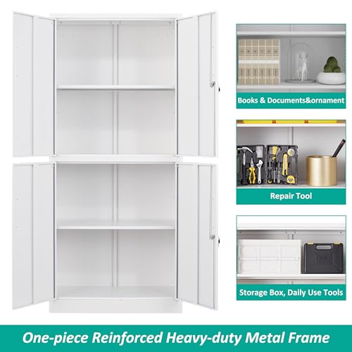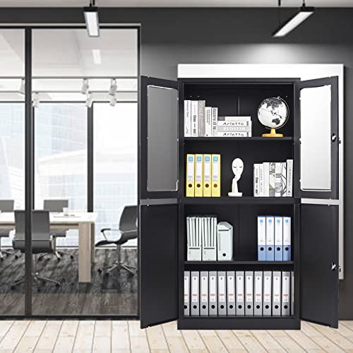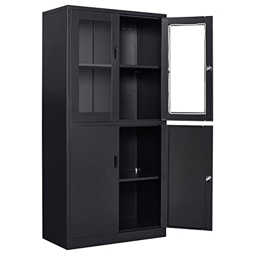Greenvelly Metal Garage Storage Cabinet, 72” Locking Black Tool Steel Cabinet with Doors and 4 Shelves, Tall Metal Cabinets with Garage Storage Systems for Home Office, Kitchen/Pantry