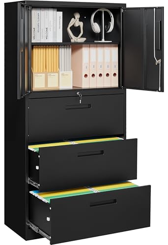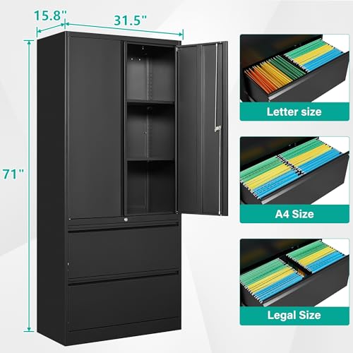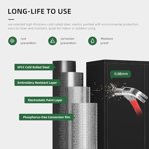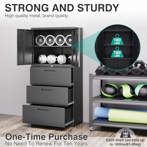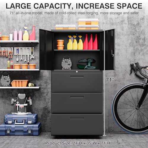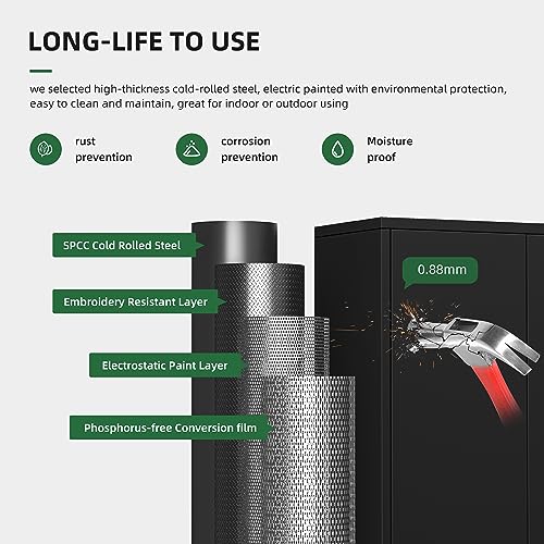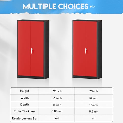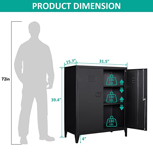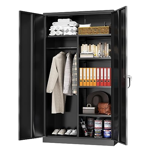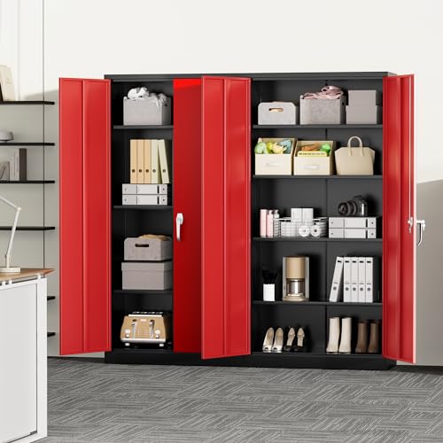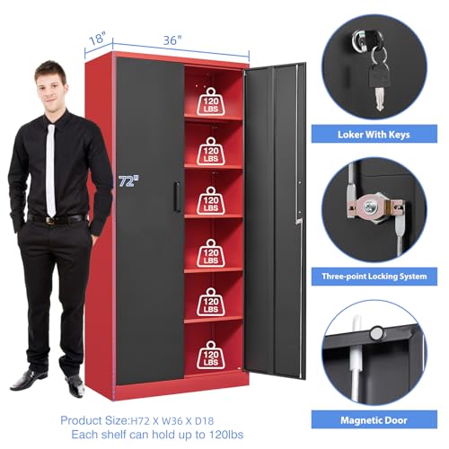 Greenvelly Metal Storage Cabinet with Lock, 72” Black Garage Storage Cabinet with Doors and Shelves, Tall Lockable File &Tool Cabinet for Home Office, Metal Classroom Cabinet Basement