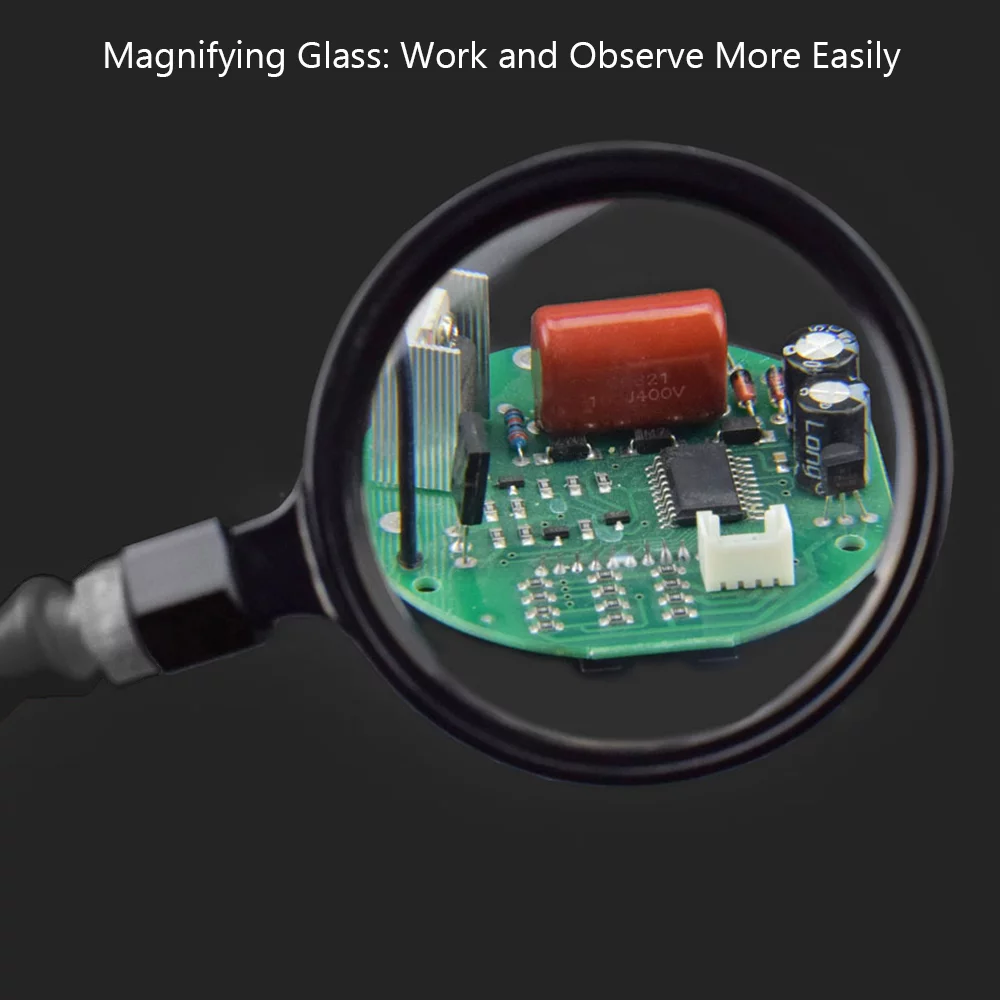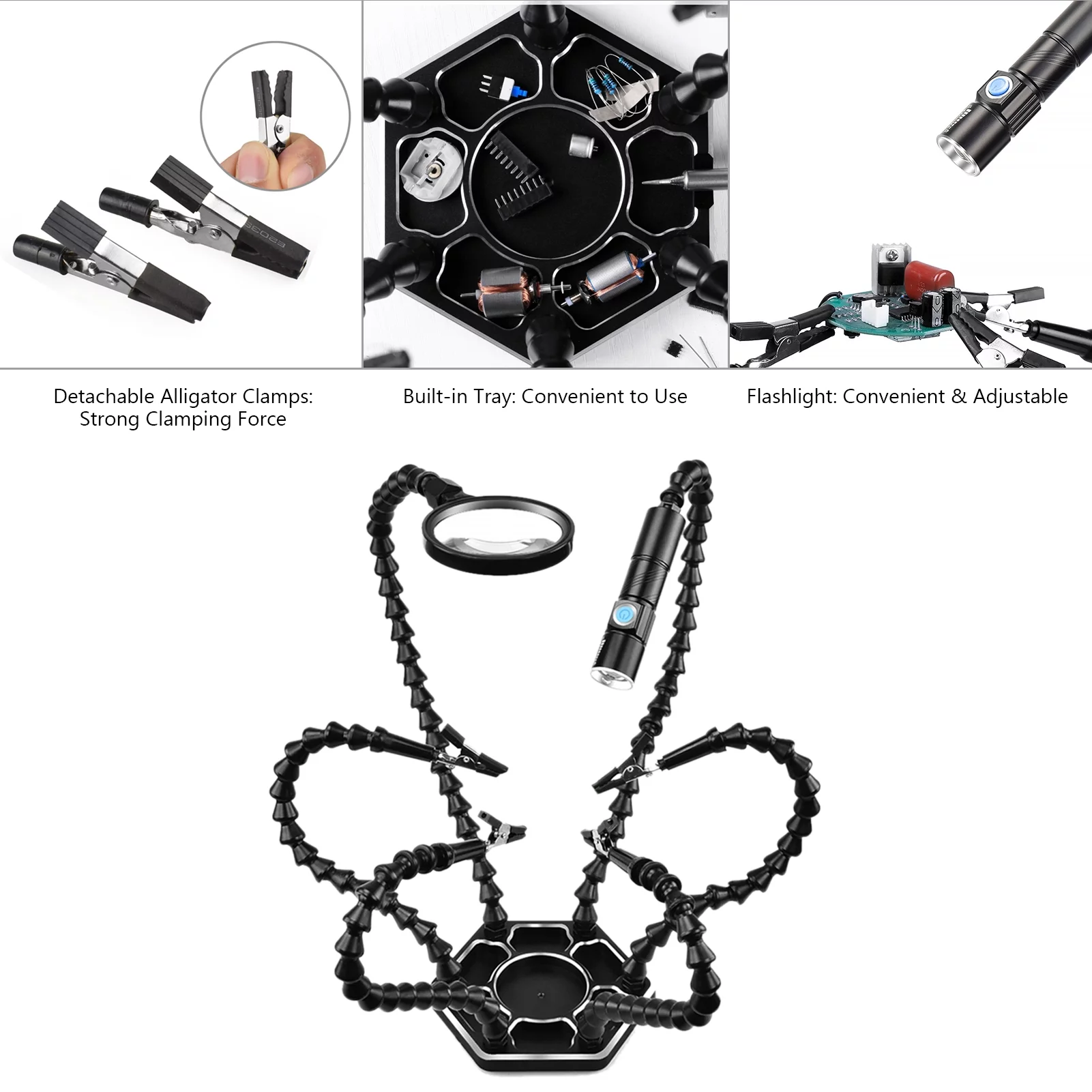 Walmeck Helping Hands Soldering Third Hand PCB Tool with 6 Flexable Arms Light Rotatable Clips and Stable Desk Clamp Base for Soldering Assembly Modeling DIY Black