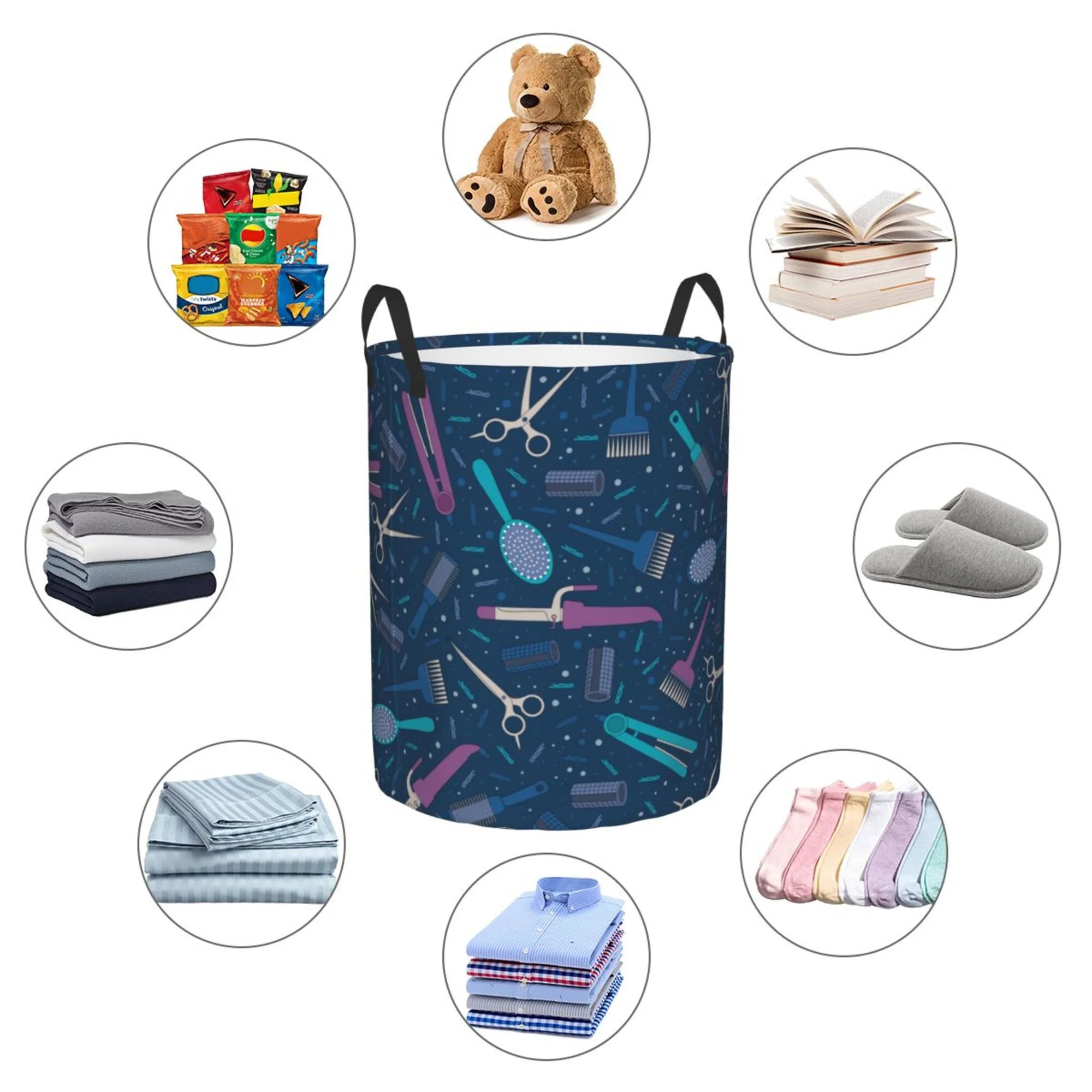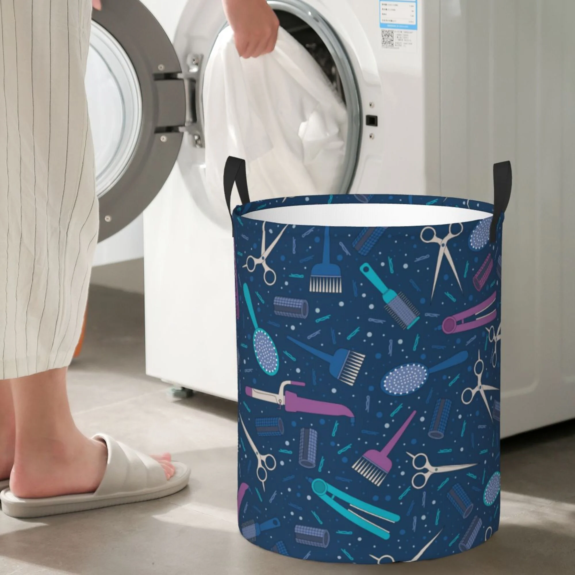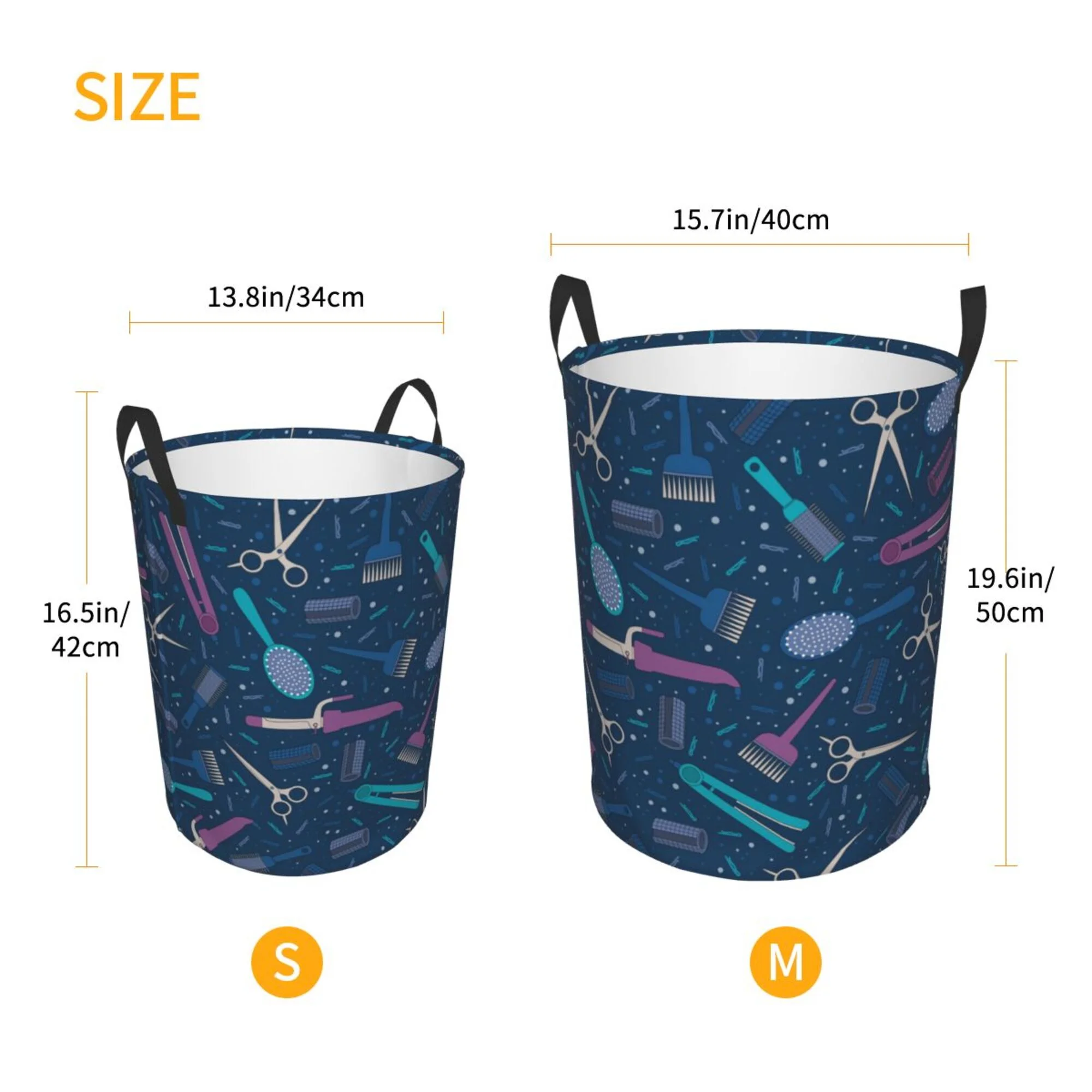 TEQUAN Waterproof Laundry Hampers, Hairdressing Tools Hair Stylist Salon Pattern Clothes Storage Basket with Handle (S)