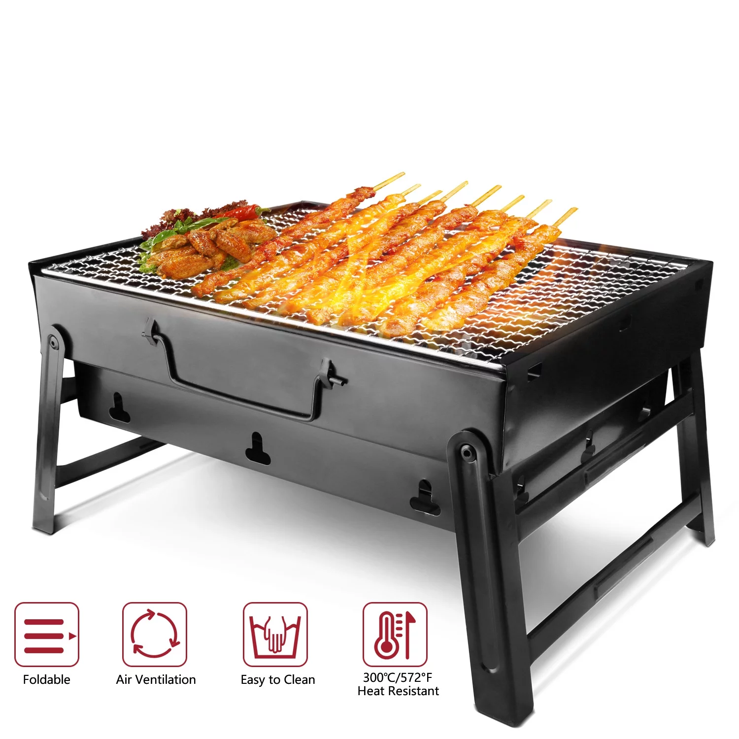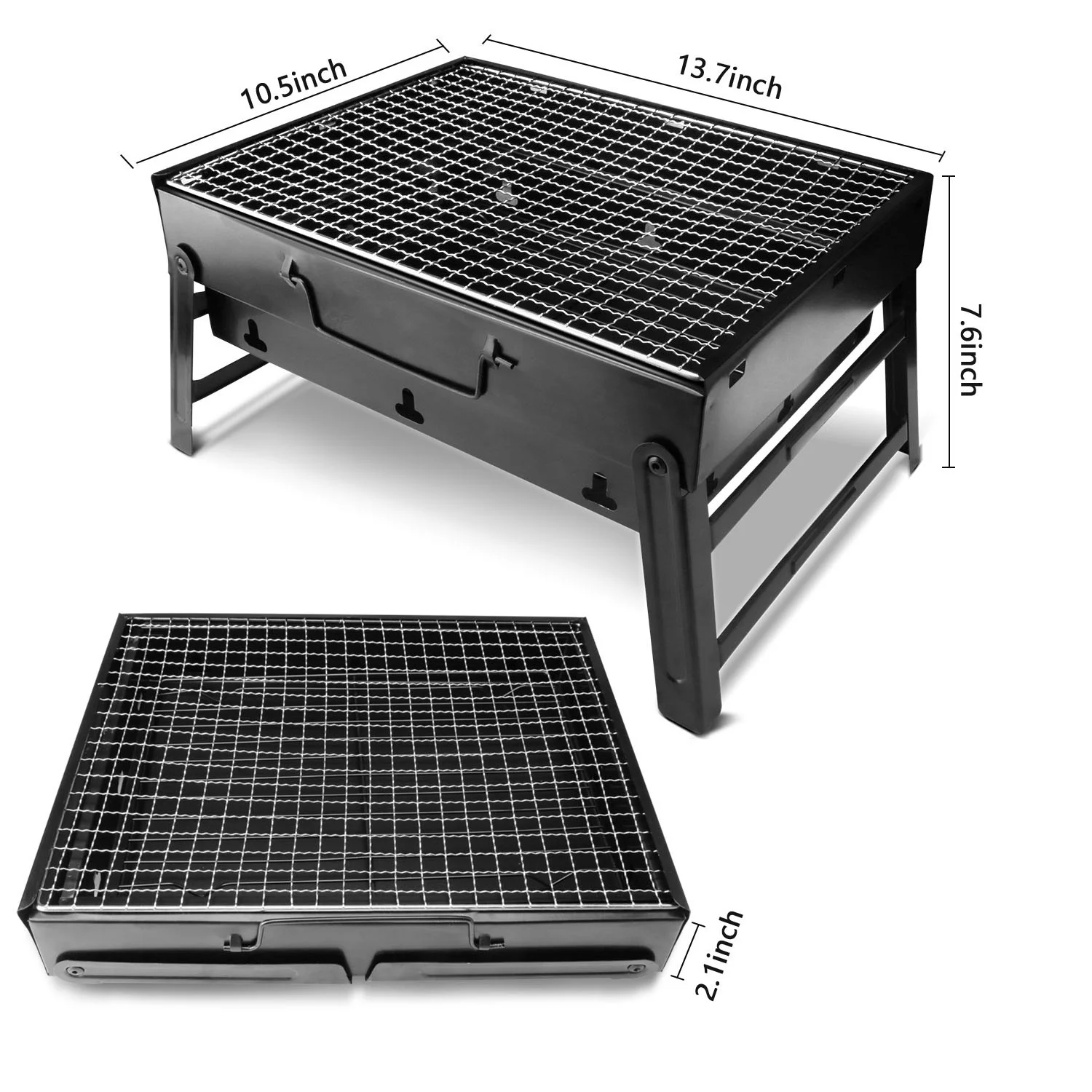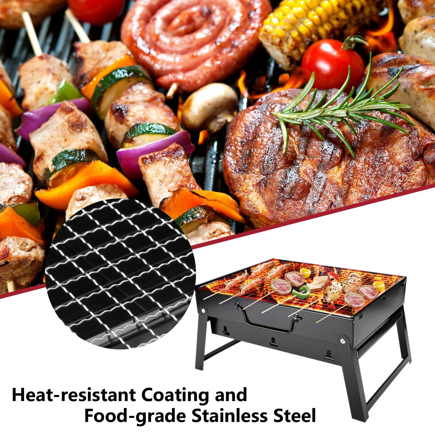 Htwon 13.7" Foldable BBQ Charcoal Grill, Portable Heavy Duty Barbecue Stainless Steel Tabletop Grill Stove with Handle Outdoor Camping Picnic Barbecue BBQ Accessories Tools