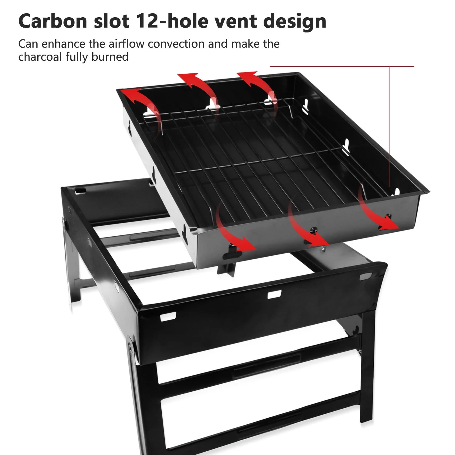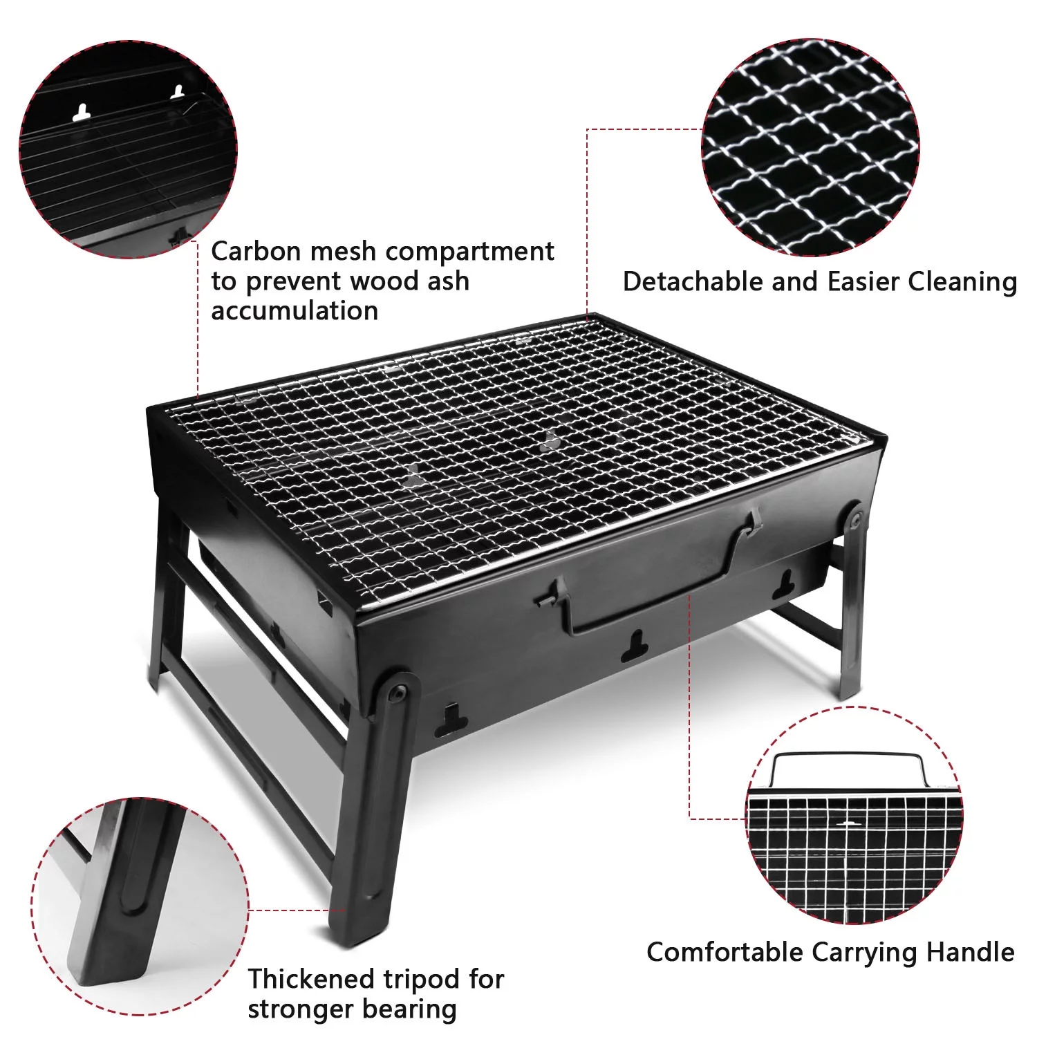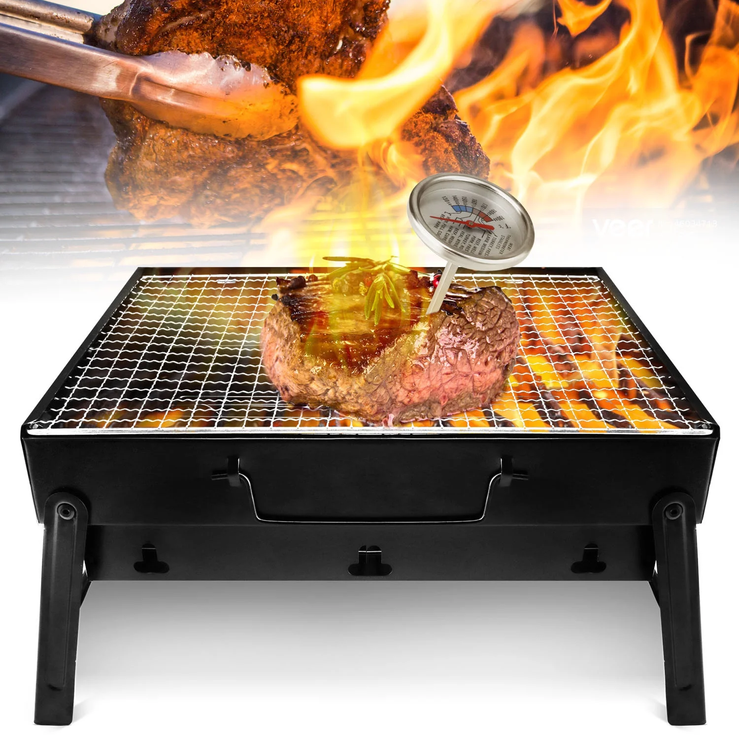 Htwon 13.7" Foldable BBQ Charcoal Grill, Portable Heavy Duty Barbecue Stainless Steel Tabletop Grill Stove with Handle Outdoor Camping Picnic Barbecue BBQ Accessories Tools