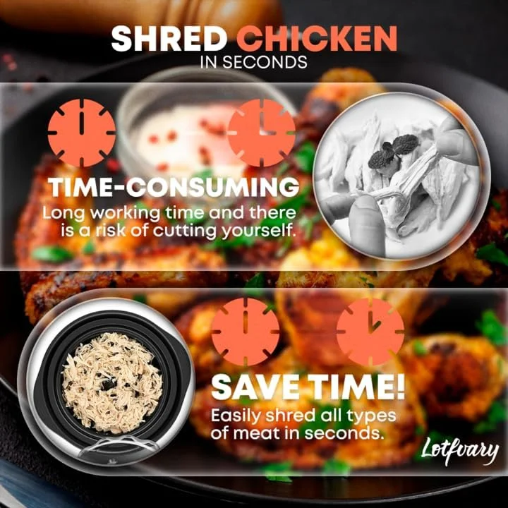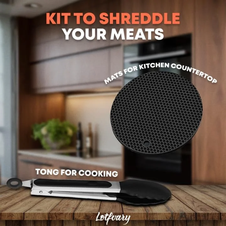 Chicken Shredder, 11”Perfect for Chicken Breast and Pulled Pork - Tool Twist for safe Meat Shredder - Including Tong and Anti Slip mat for full Food Shredder Set - Dishwasher Safe - Heat Resistant
