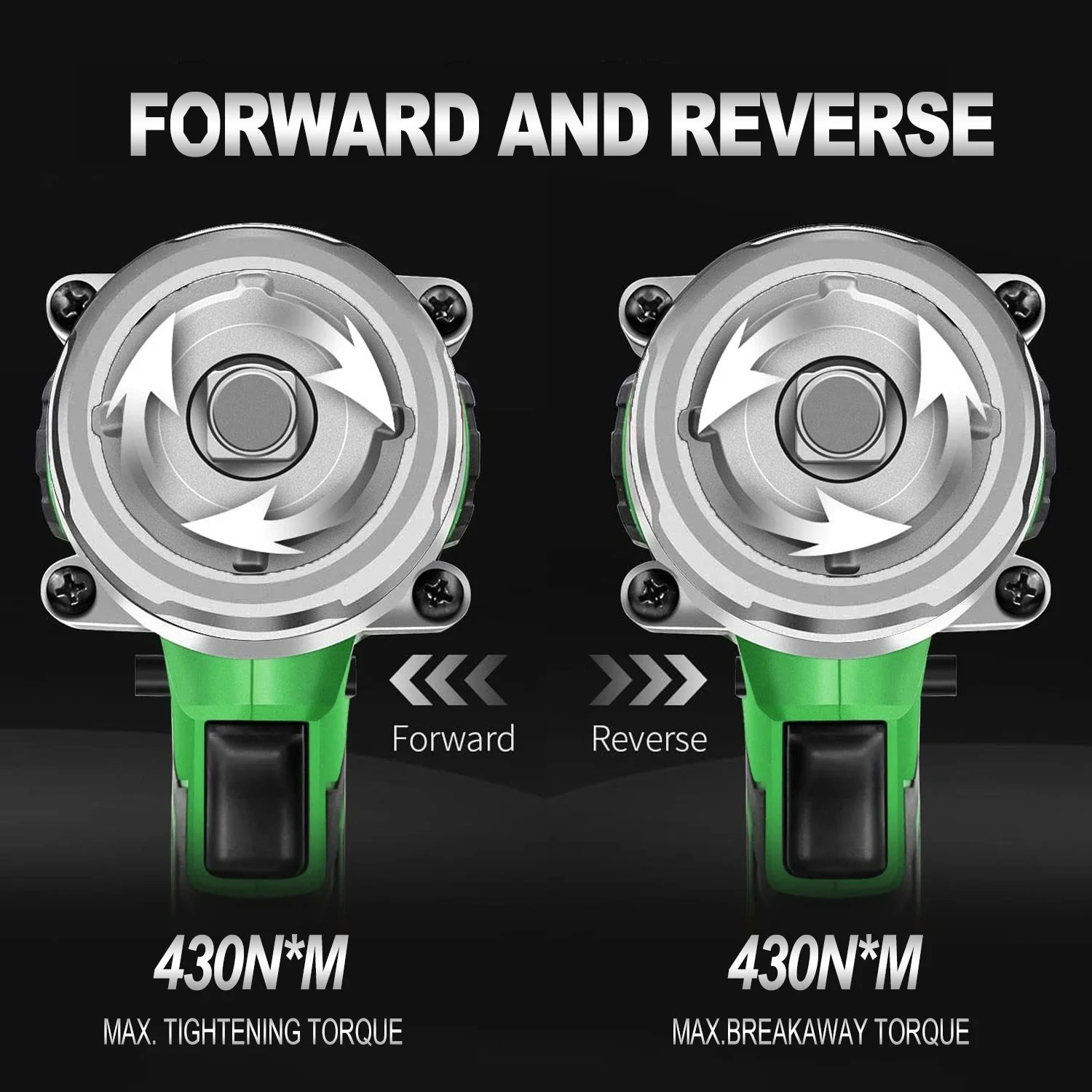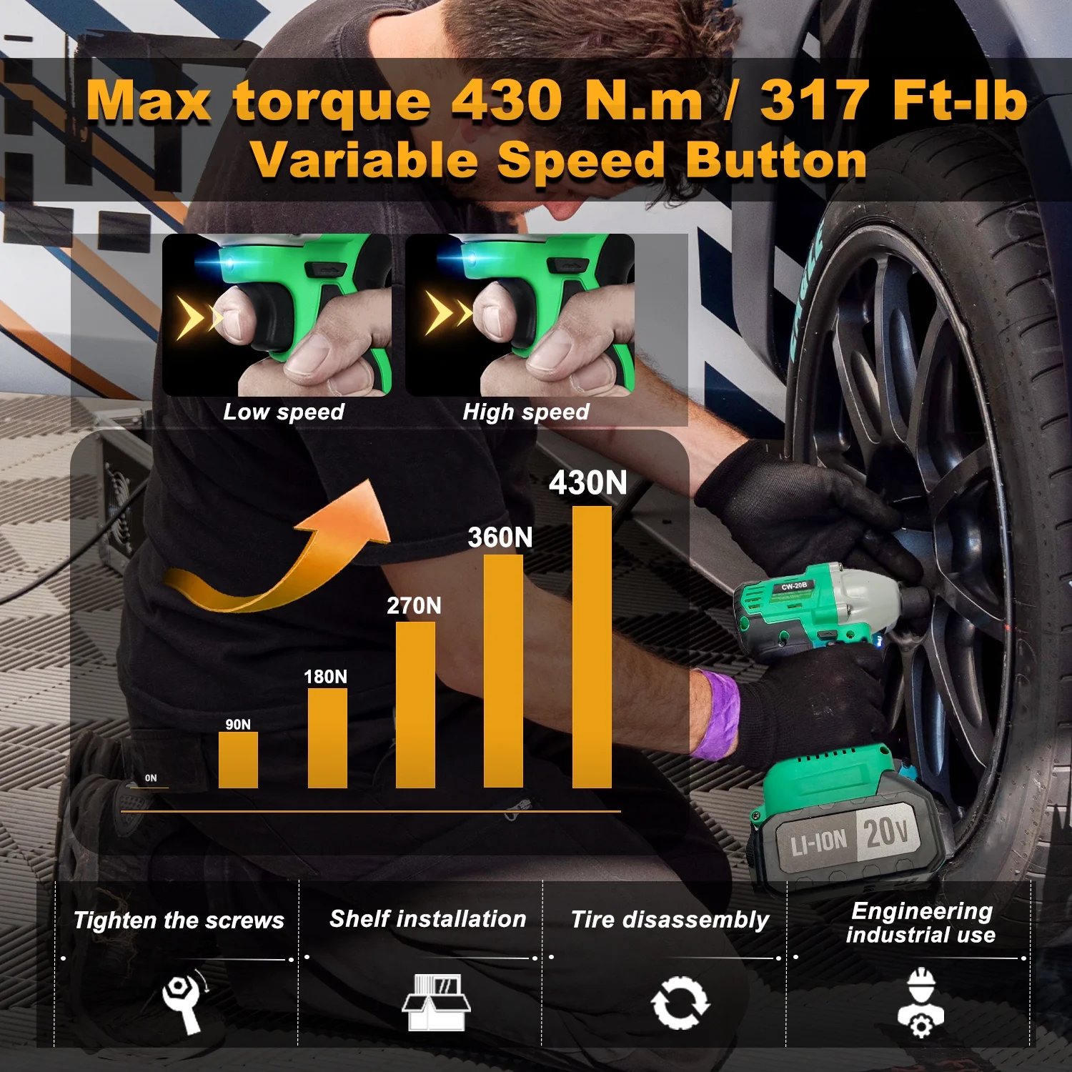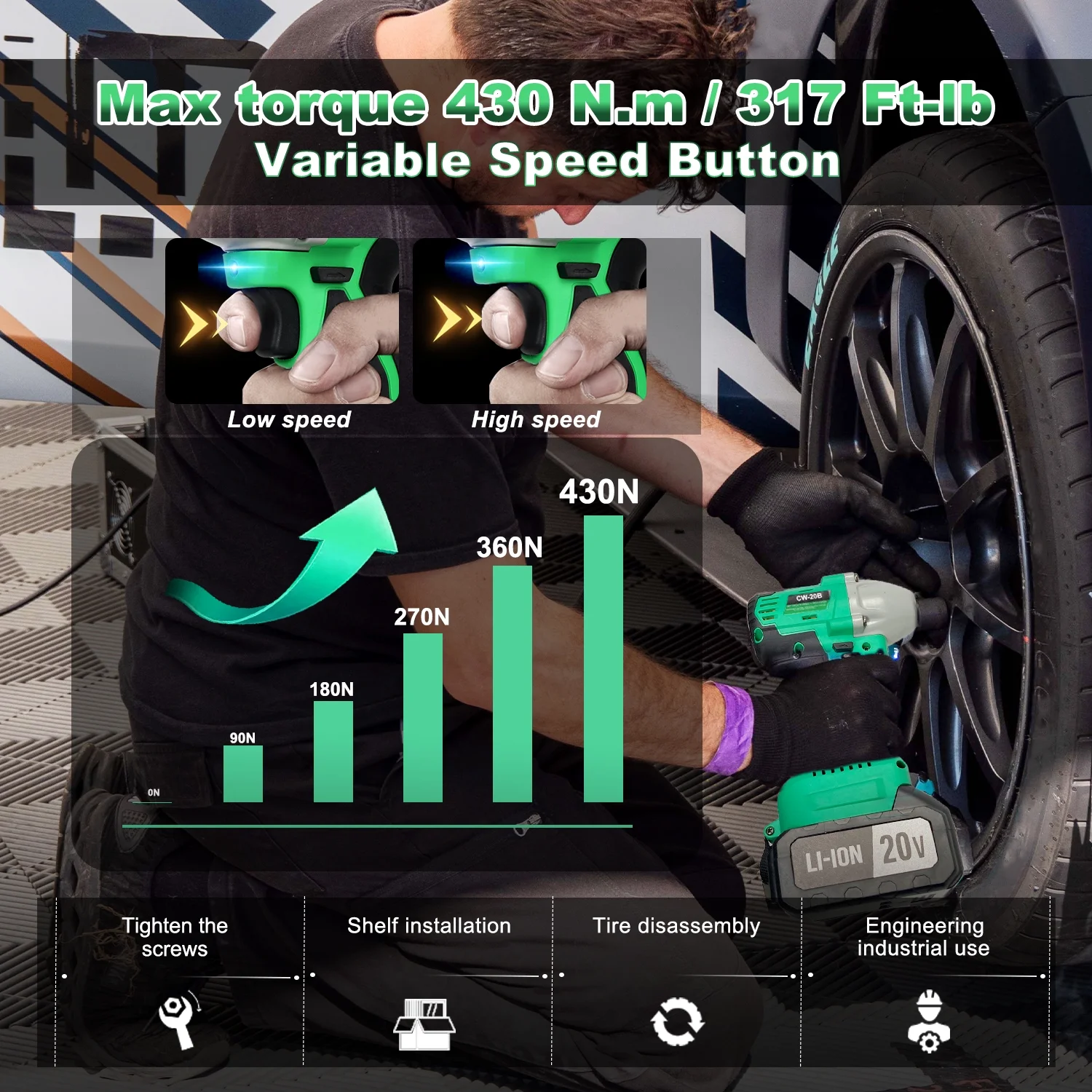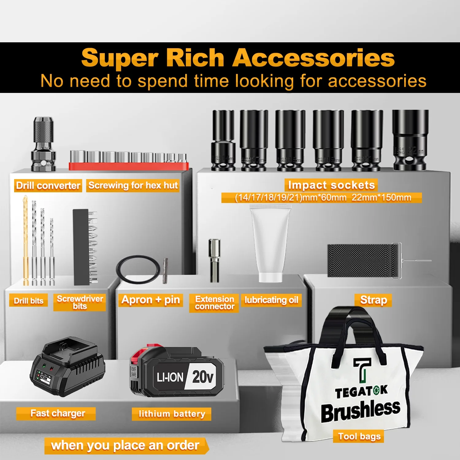 Tegatok Cordless Impact Wrench, Power Impact Gun 1/2 (430N.m), 2400 RPM Brushless Impact Driver with 4000 mAH Battery, Fast Charger, 6 Sockets & Tool Bag, 3-in-1 Electric Impact Wrench for Car Home