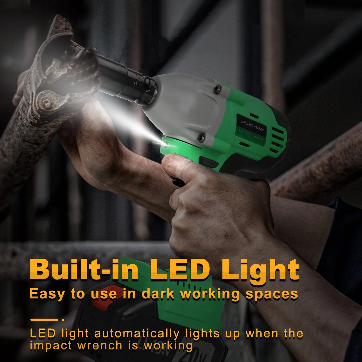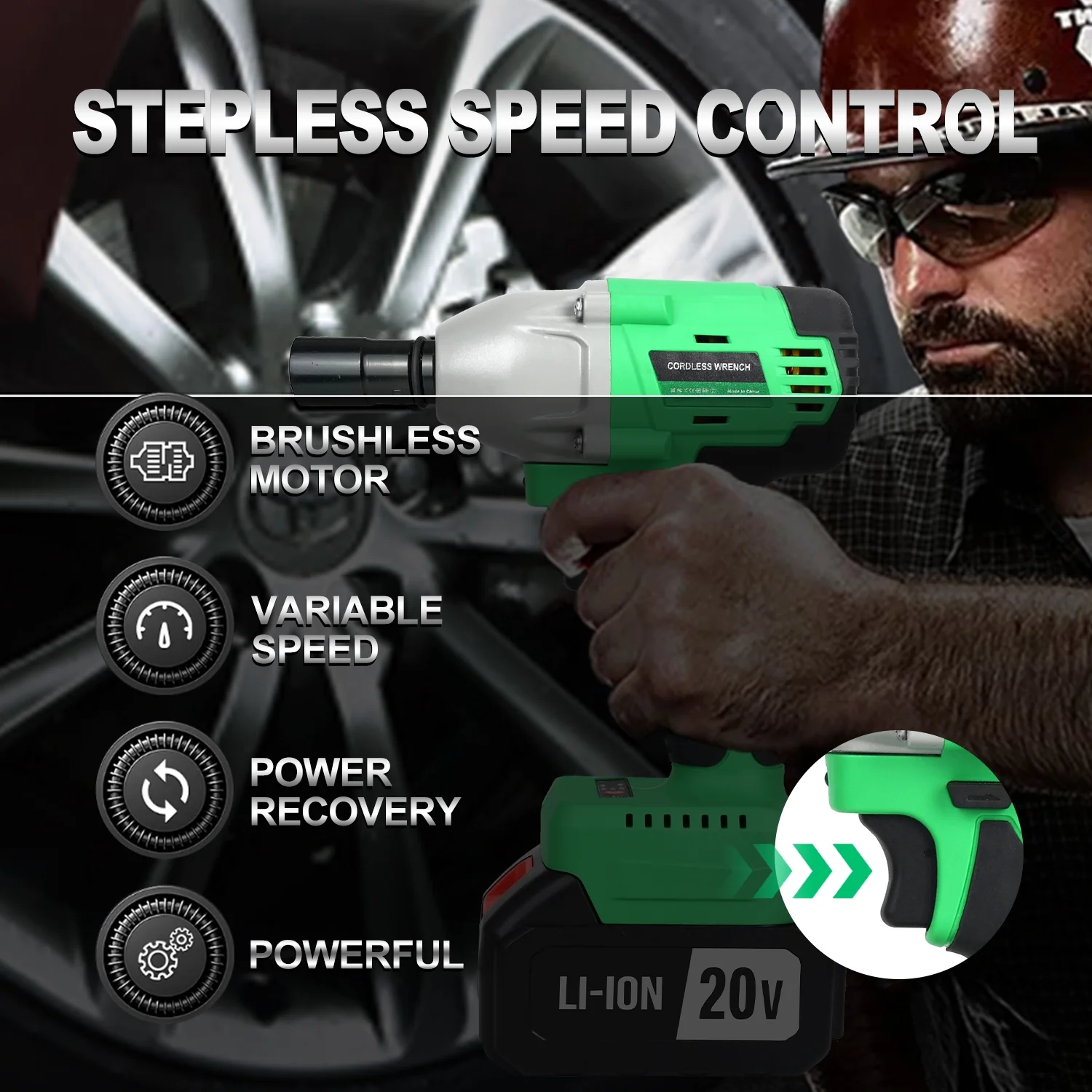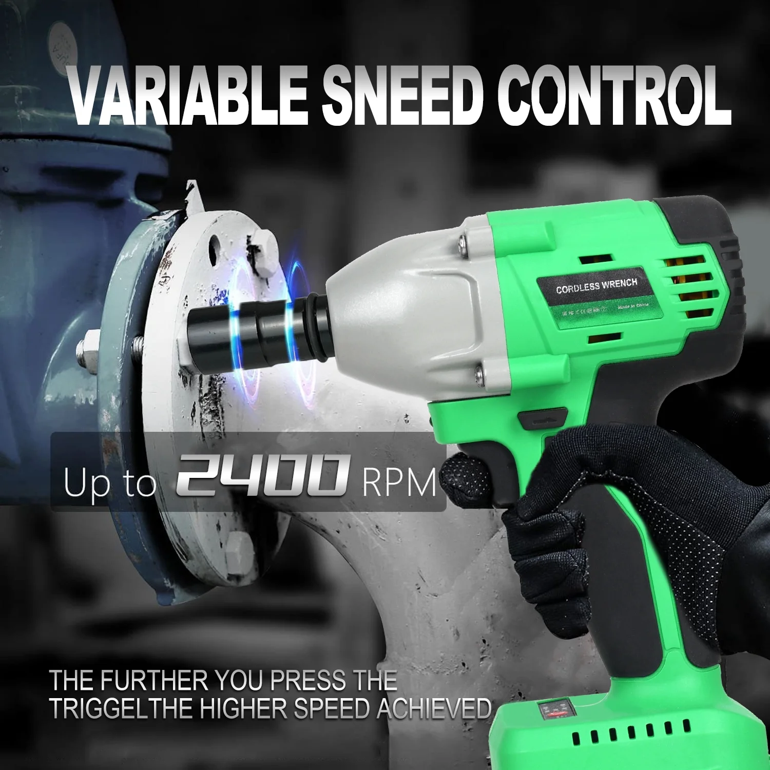 Tegatok Cordless Impact Wrench, Power Impact Gun 1/2 (430N.m), 2400 RPM Brushless Impact Driver with 4000 mAH Battery, Fast Charger, 6 Sockets & Tool Bag, 3-in-1 Electric Impact Wrench for Car Home