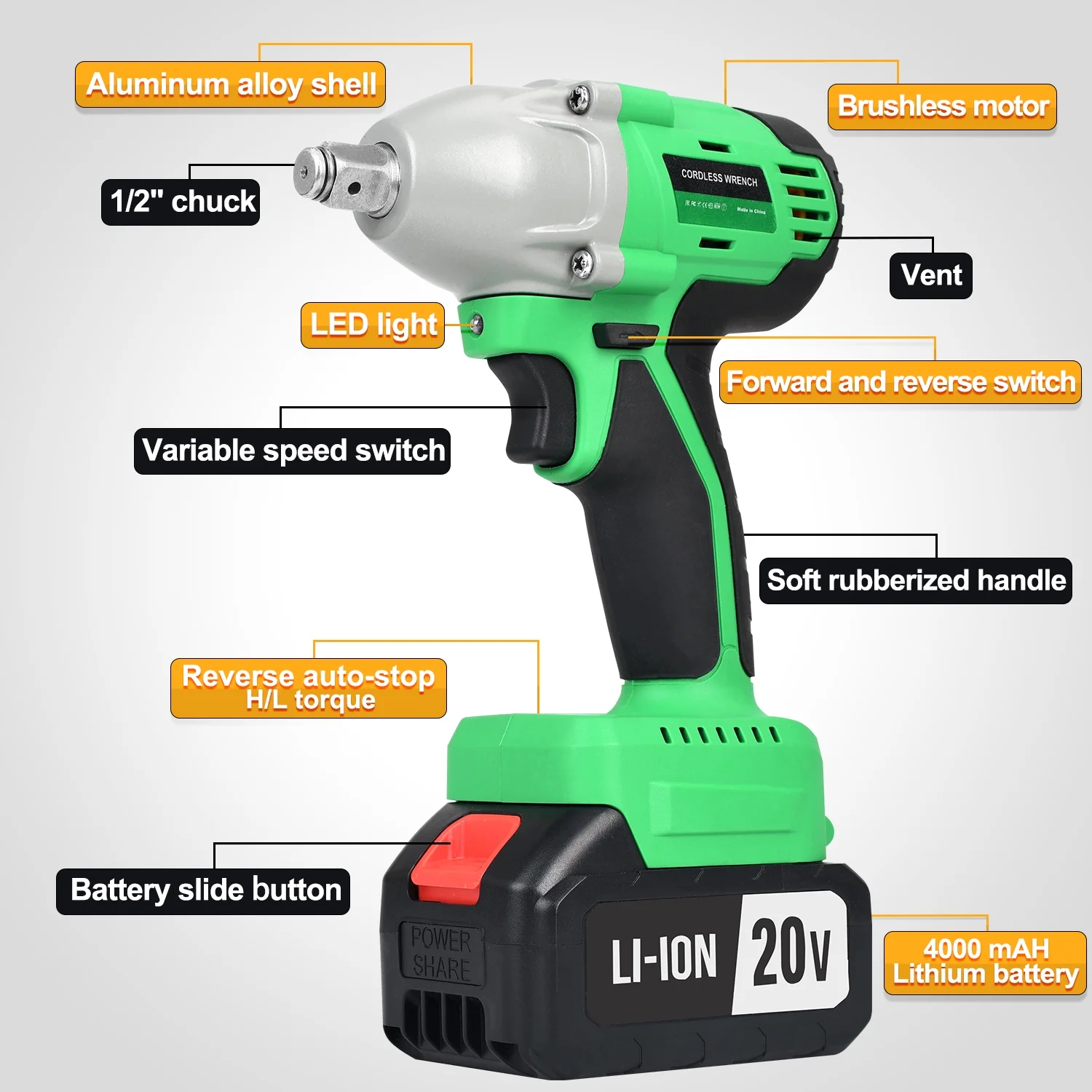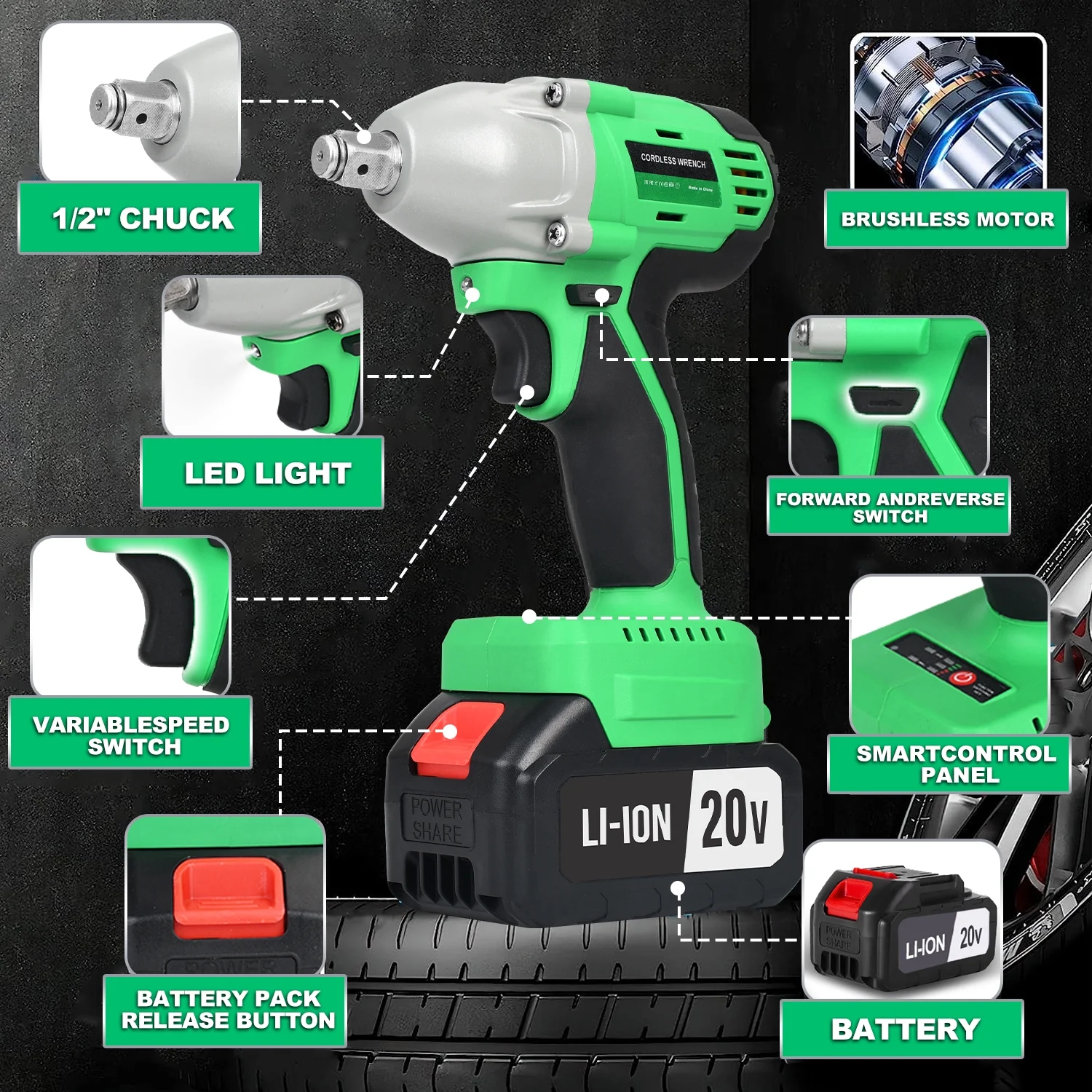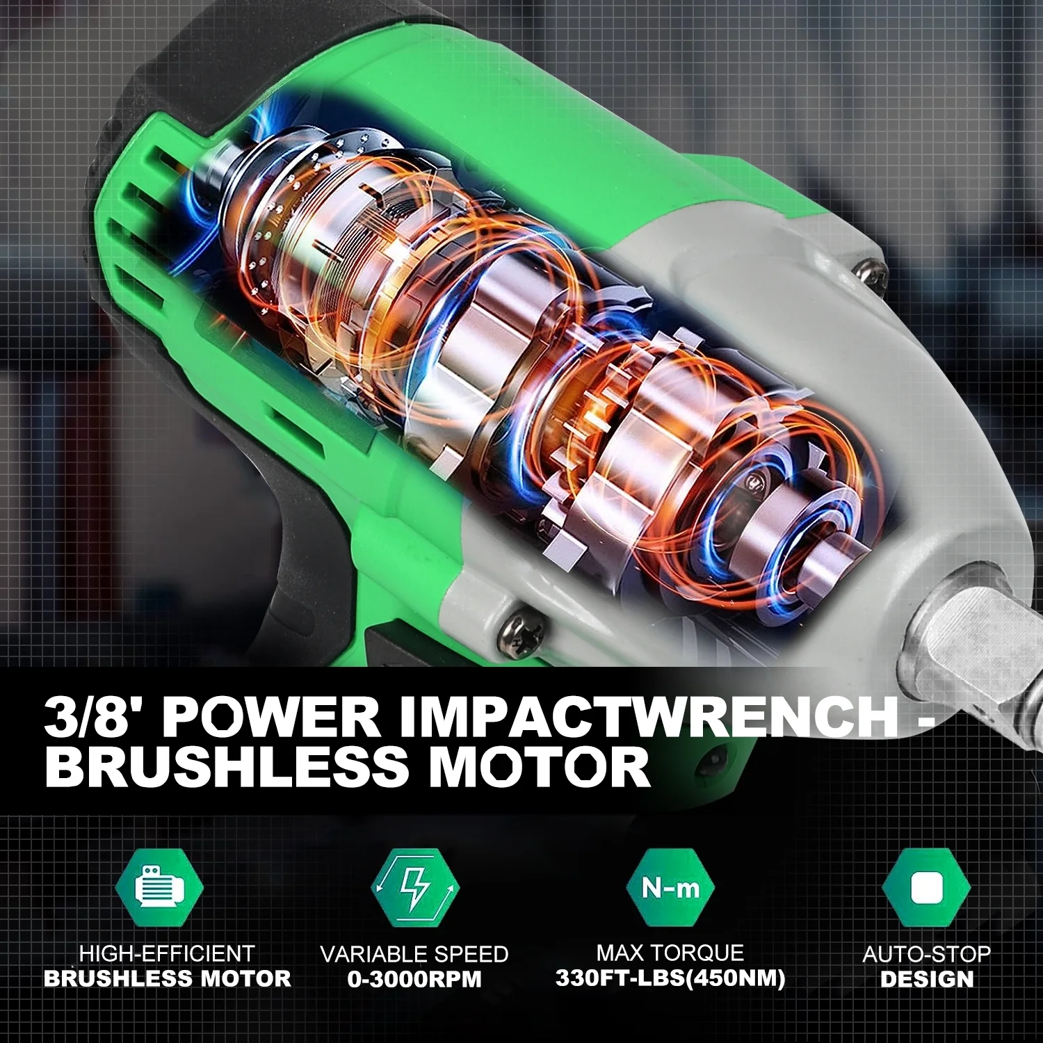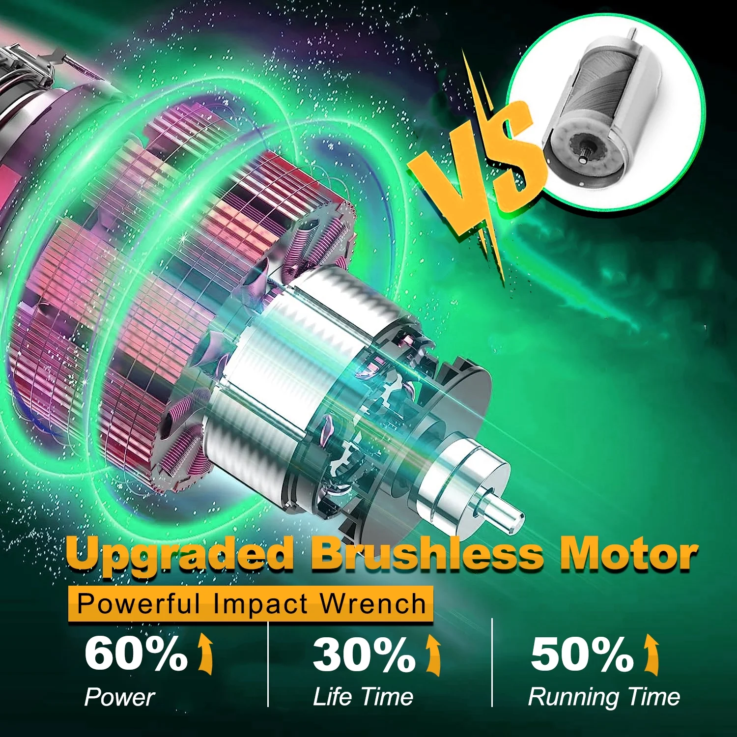 Tegatok Cordless Impact Wrench, Power Impact Gun 1/2 (430N.m), 2400 RPM Brushless Impact Driver with 4000 mAH Battery, Fast Charger, 6 Sockets & Tool Bag, 3-in-1 Electric Impact Wrench for Car Home
