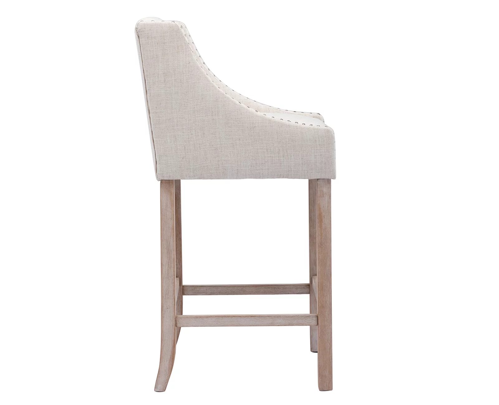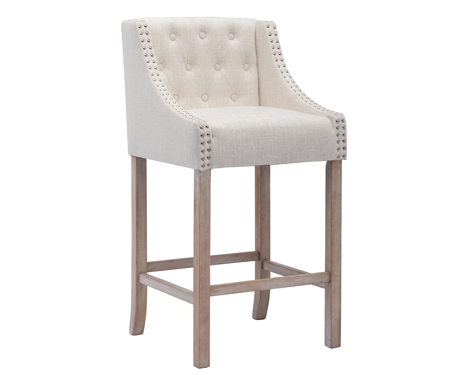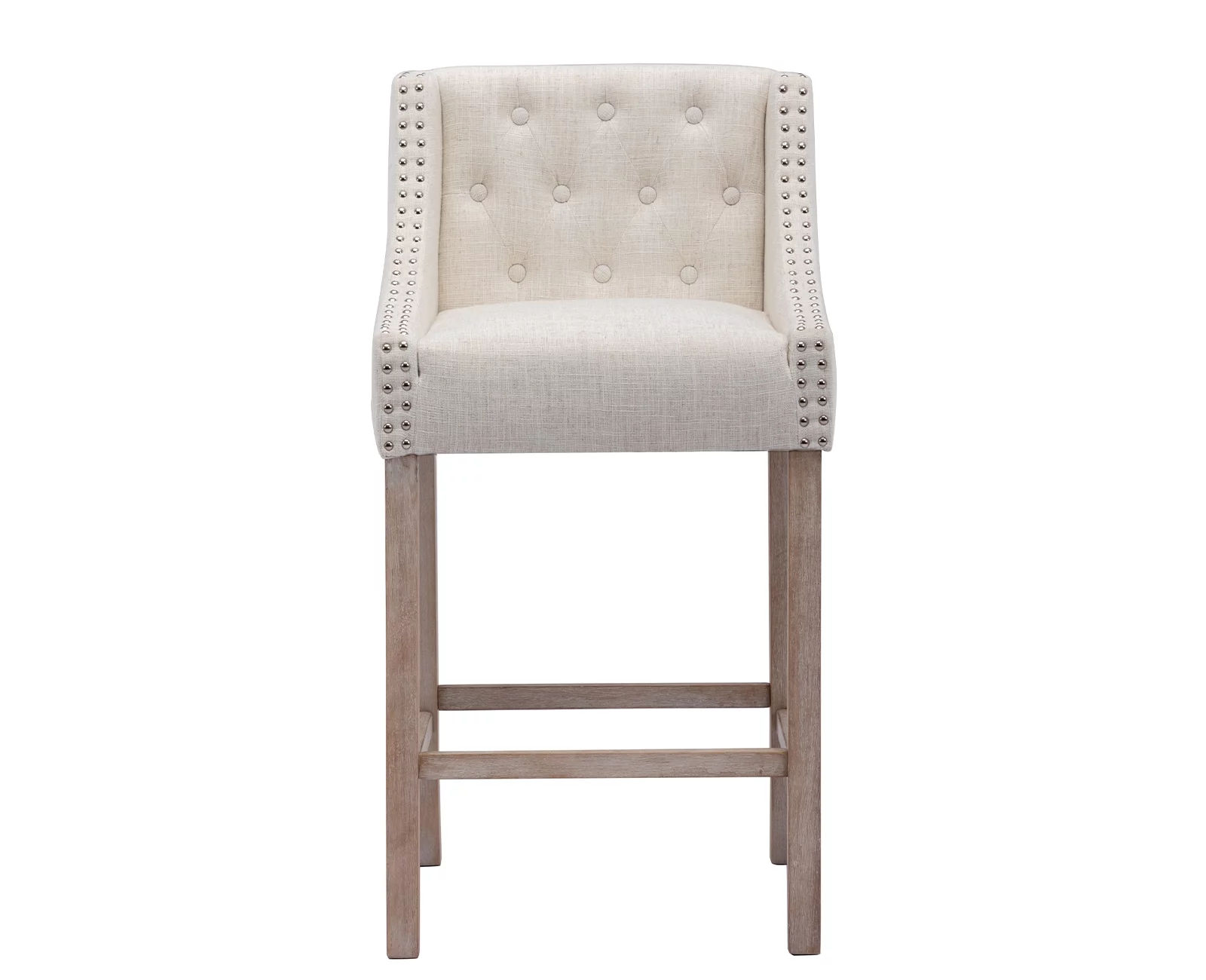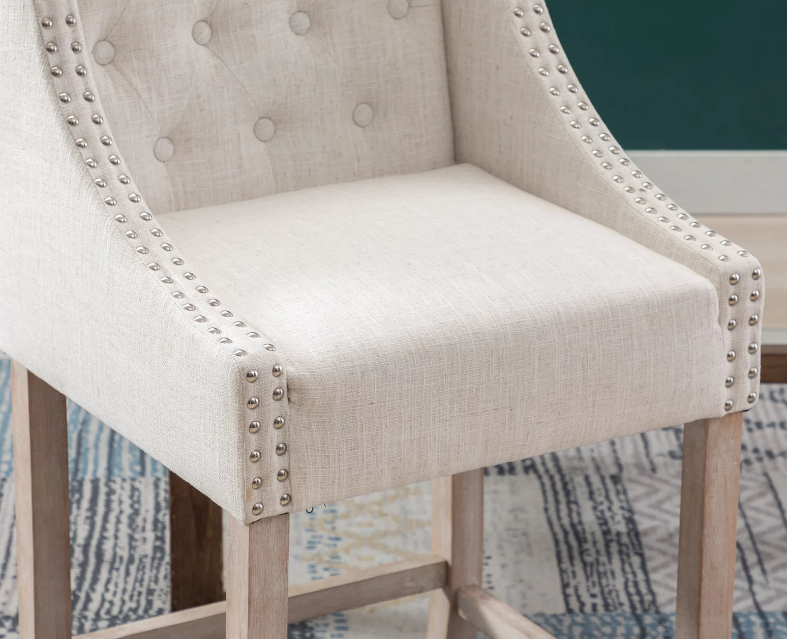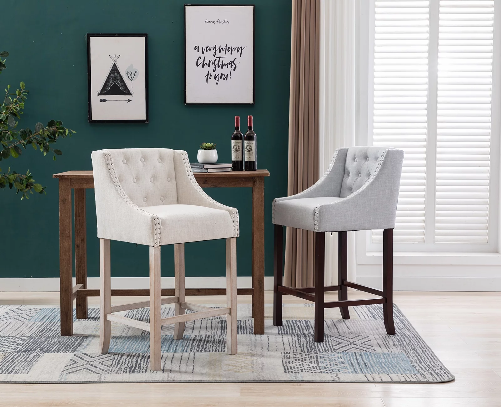 Guyou 30" Counter Height Bar Stools Set of 2, Mid Century Linen Tufted Farmhouse Bar Chairs with Back for Home Bar Club Kitchen Island, Beige