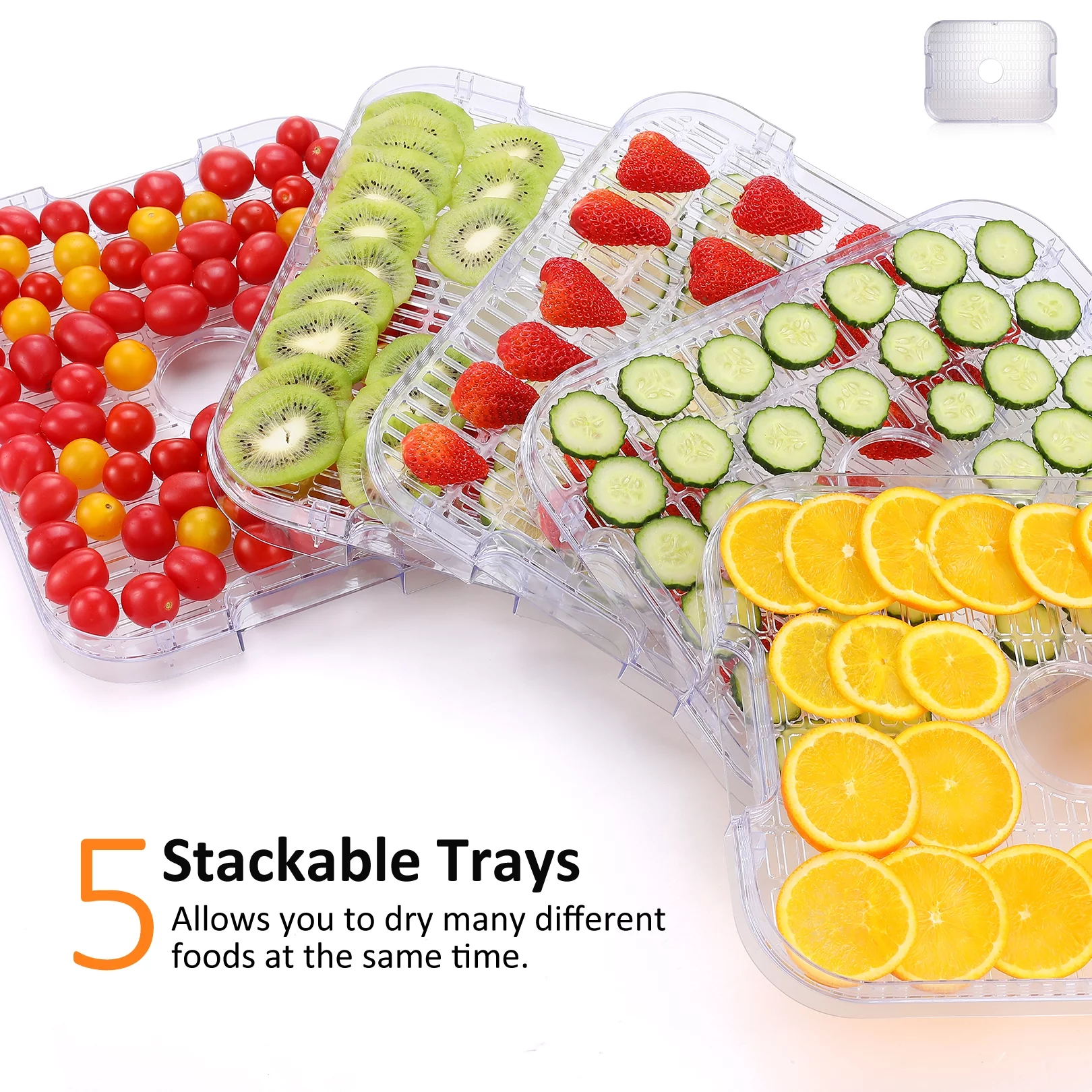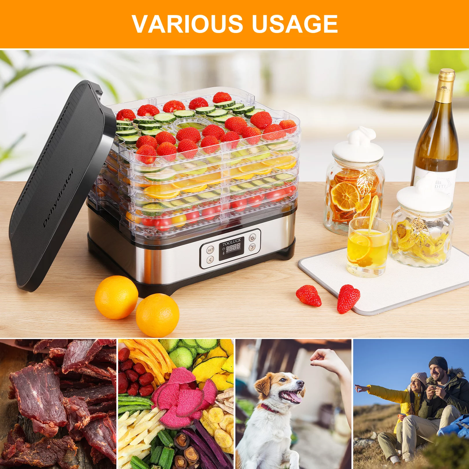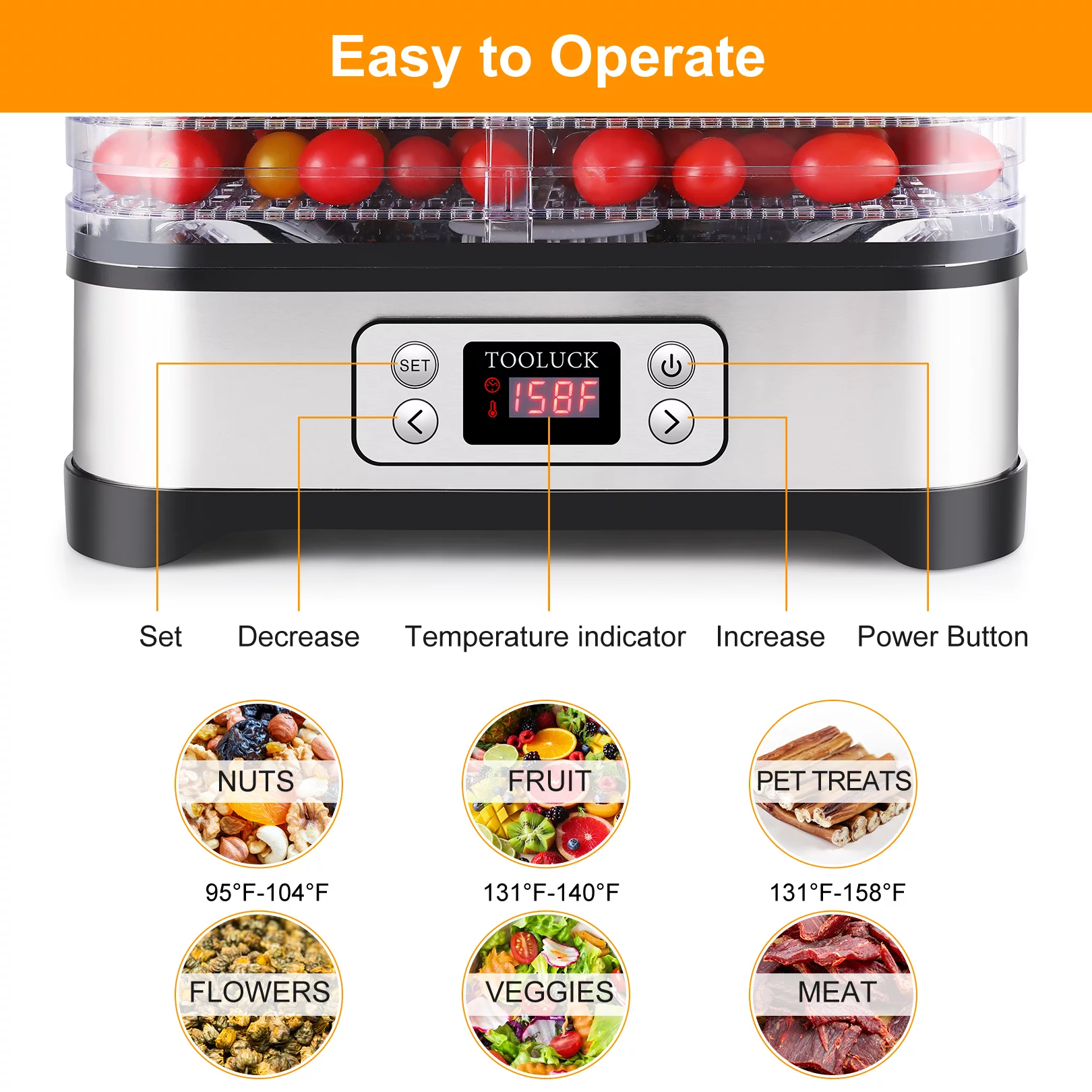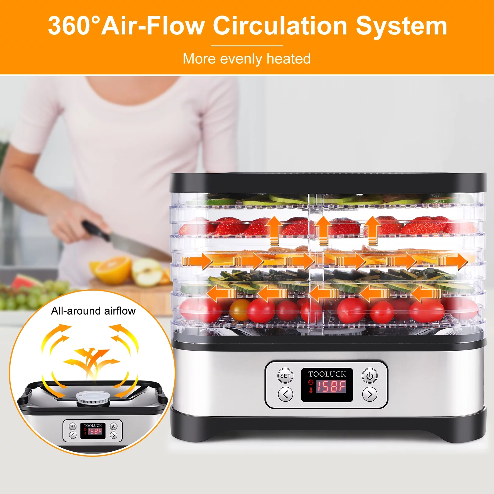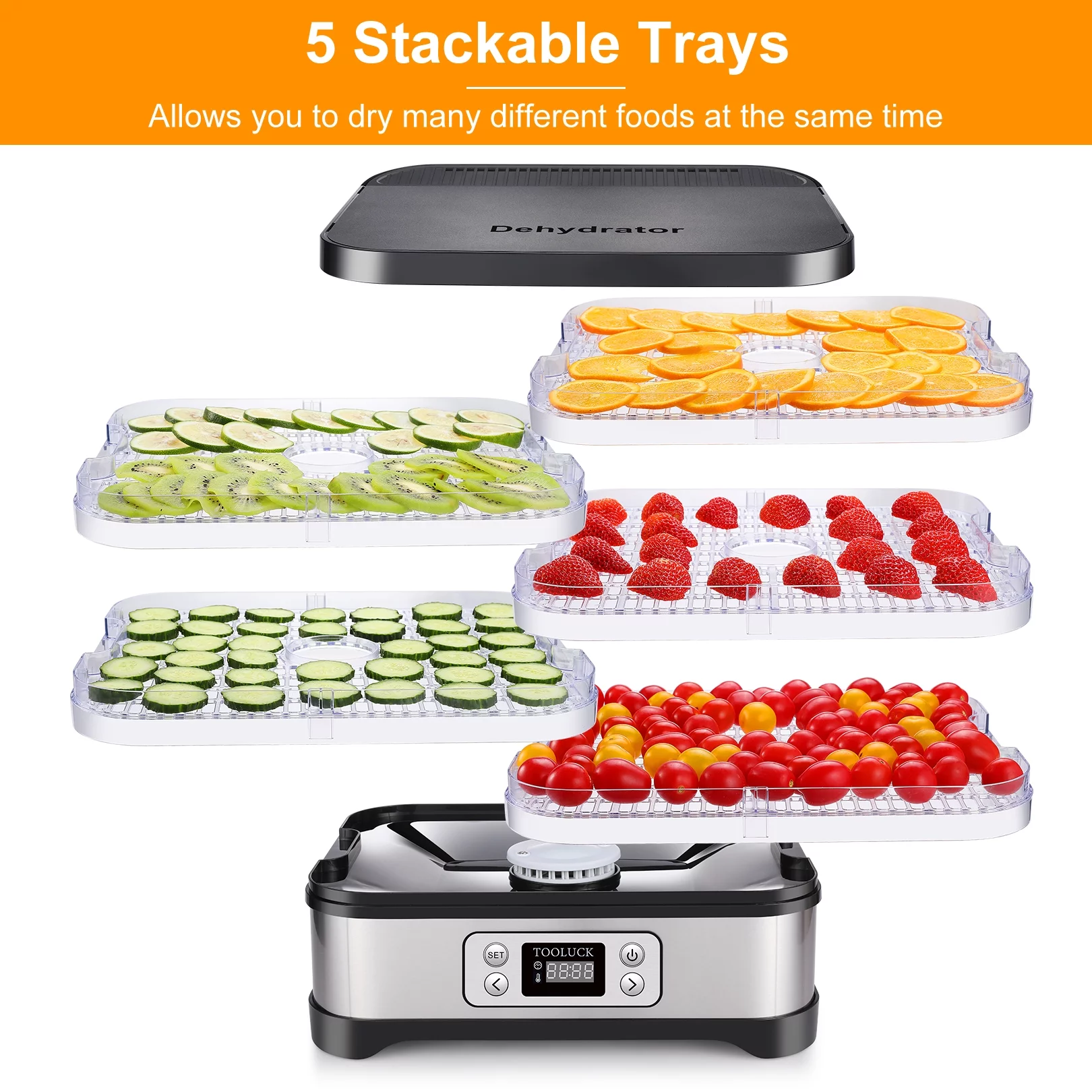 TOOLUCK Electric Food Dehydrator Machine,250W Power,Timer and Temperature Settings, 5 Drying Trays, Stainless Steel, BPA Free - Perfect for Beef Jerky, Herbs, Fruits, Vegetables