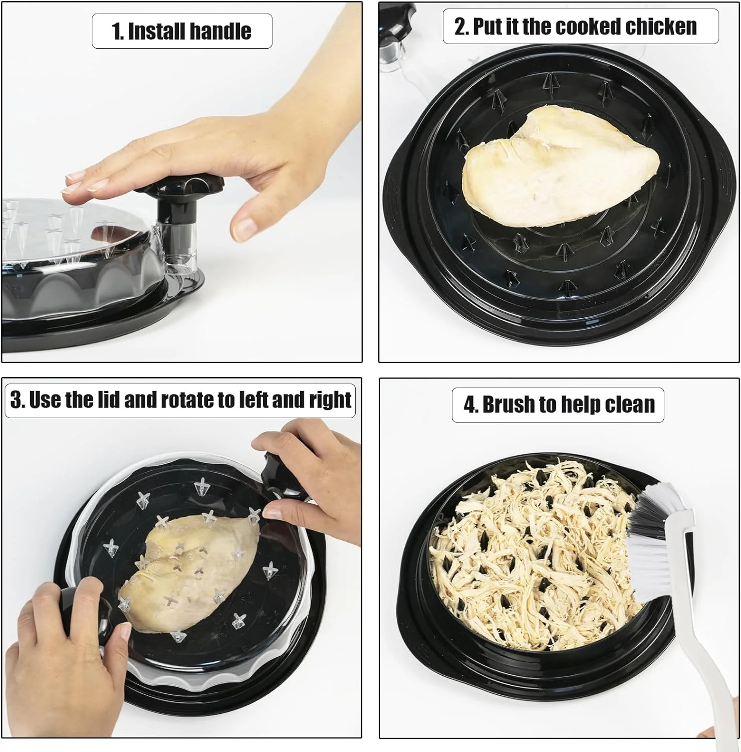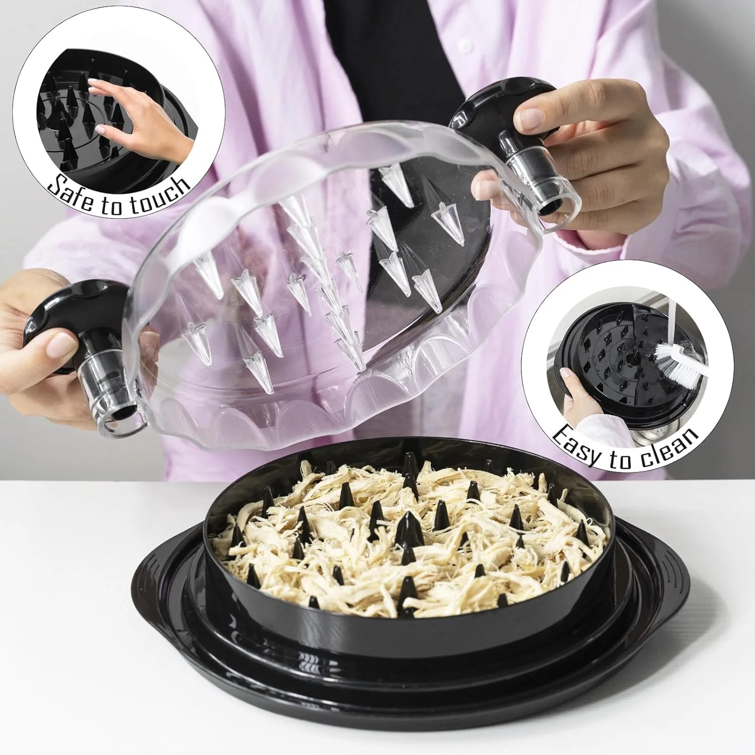 Ragnify Non-Skid Chicken Shredder Tool with Transparent Lid & Cleaning Brush, Alternative to Claws Meat for Boil Chicken, Beef and Other Meat 10.8 Inches (Black)