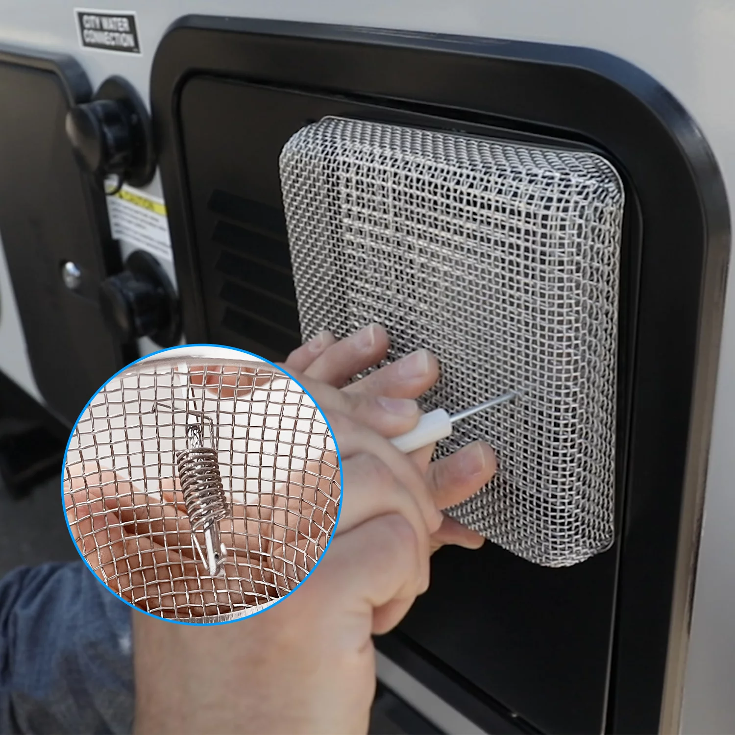 RV Flying Insect Screen for RV Water Heater Vent Cover Stainless Steel Mesh with Installation Tool 2.8''x1.2'' & 8.5" x 6" x 1.2" & 4.5'' x 4.5'' x 1.2''