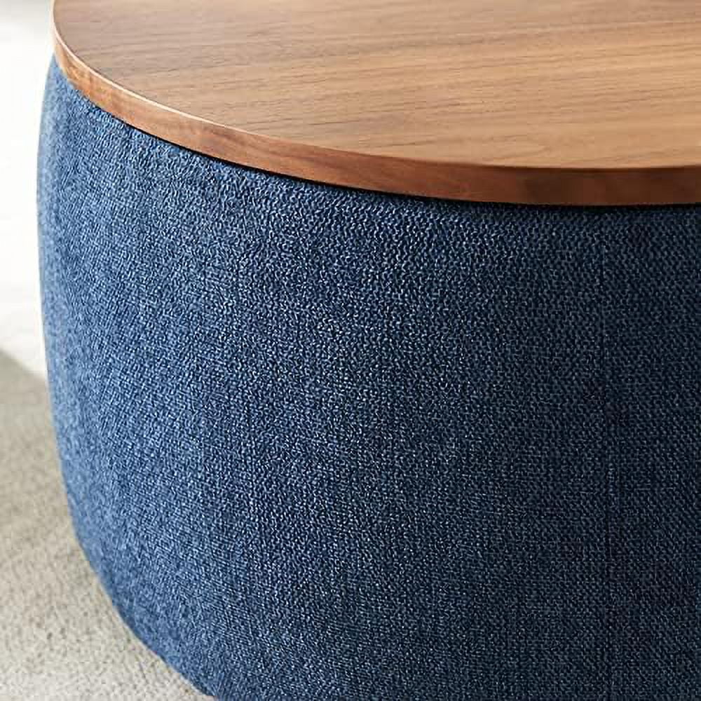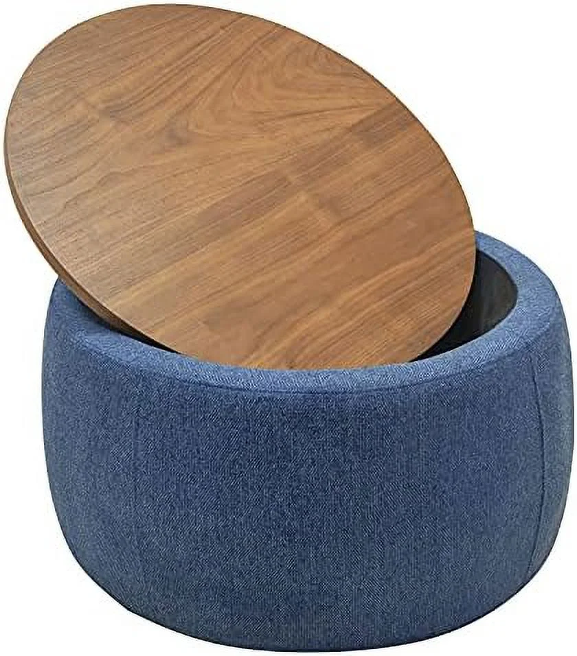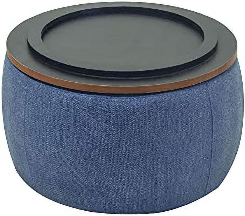 RUNFAYBIU Round Ottoman with for Living Room - Coffee Table Foot Footstool End Table - with Reversible Lid Tray (Natural)