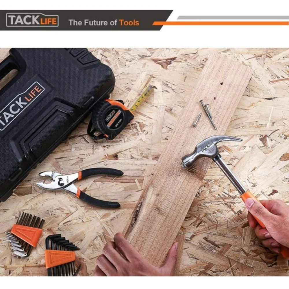 STEELHEAD 87-Piece Tool Set, Screwdriver Handle, 11 Bits, Magnetic Screwdrivers, Pliers, Tape Measure, 9” Torpedo Level, Hammer, Wrenches, Rugged 14” Tool Box
