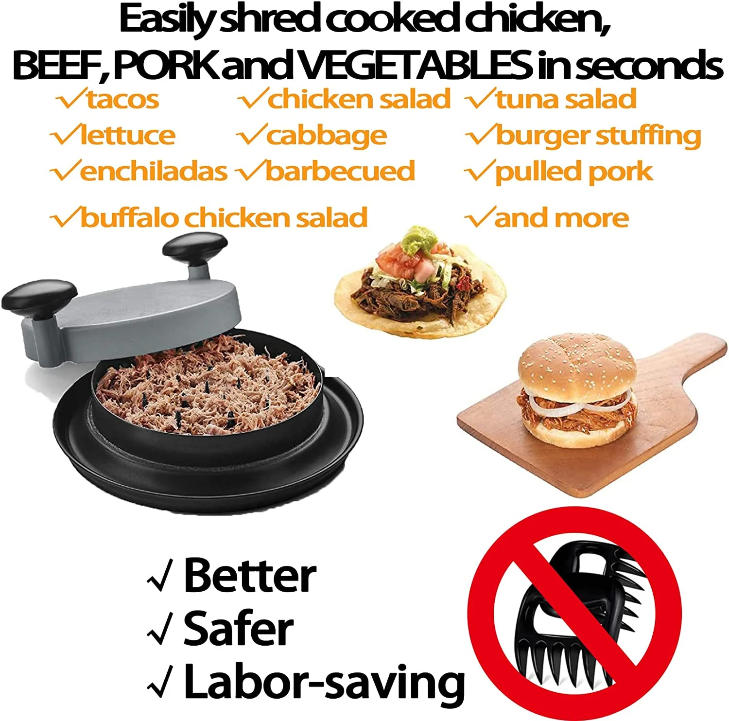 Chicken Shredder Tool with Handles and Non-Skid Base for Ground Beef Pulled Pork and Chicken 25CM/9.8inch
