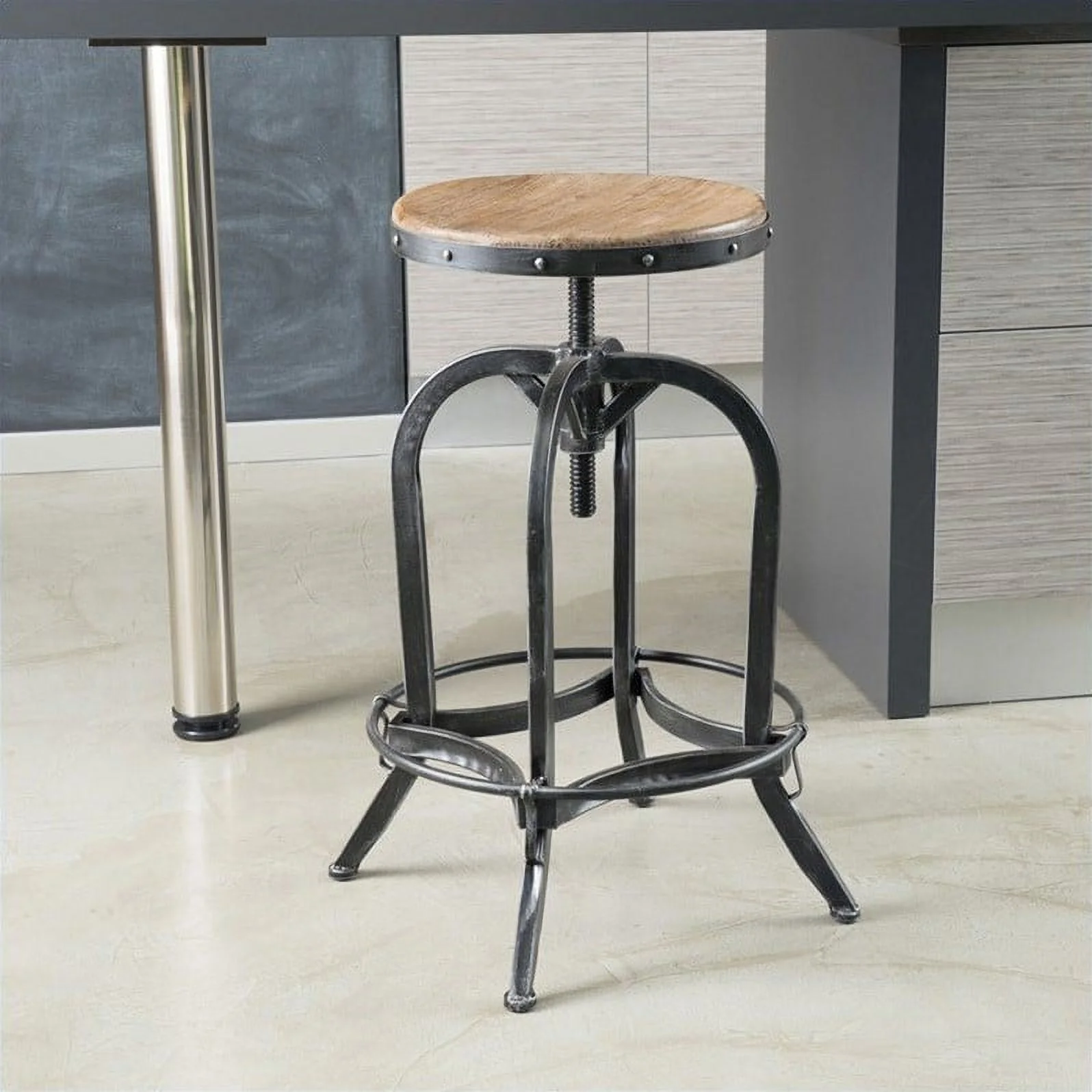 Noble House 26" Mikah Adjustable Bar Stool in Weathered Oak