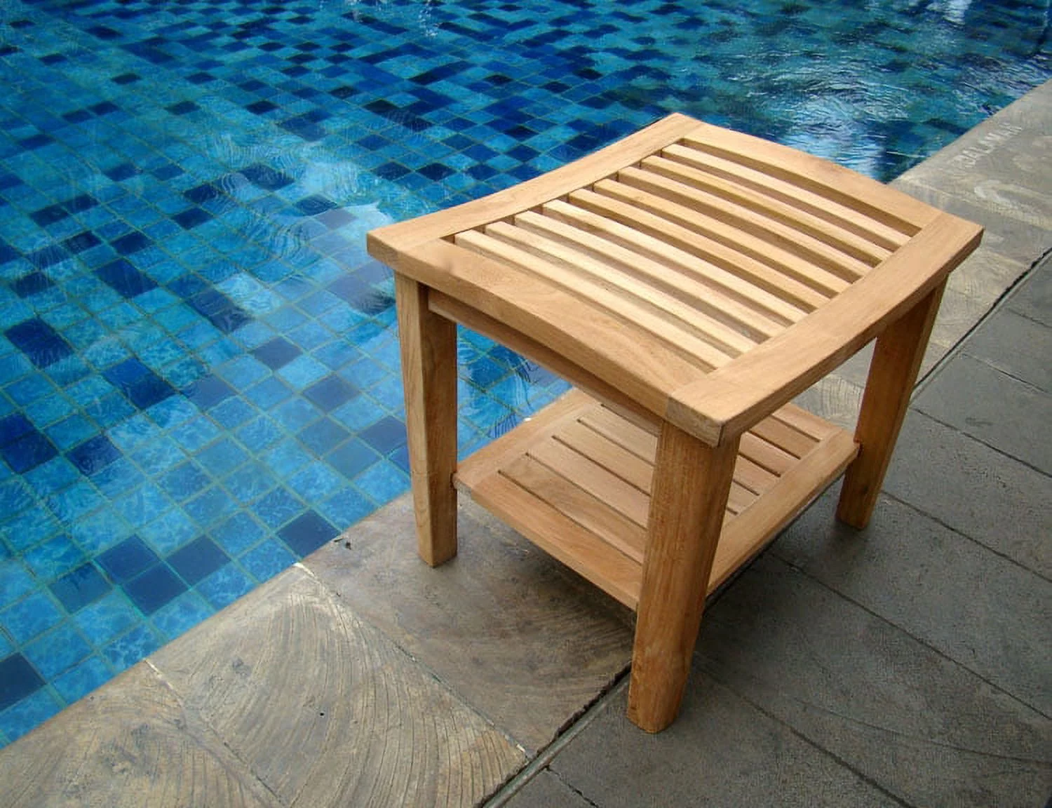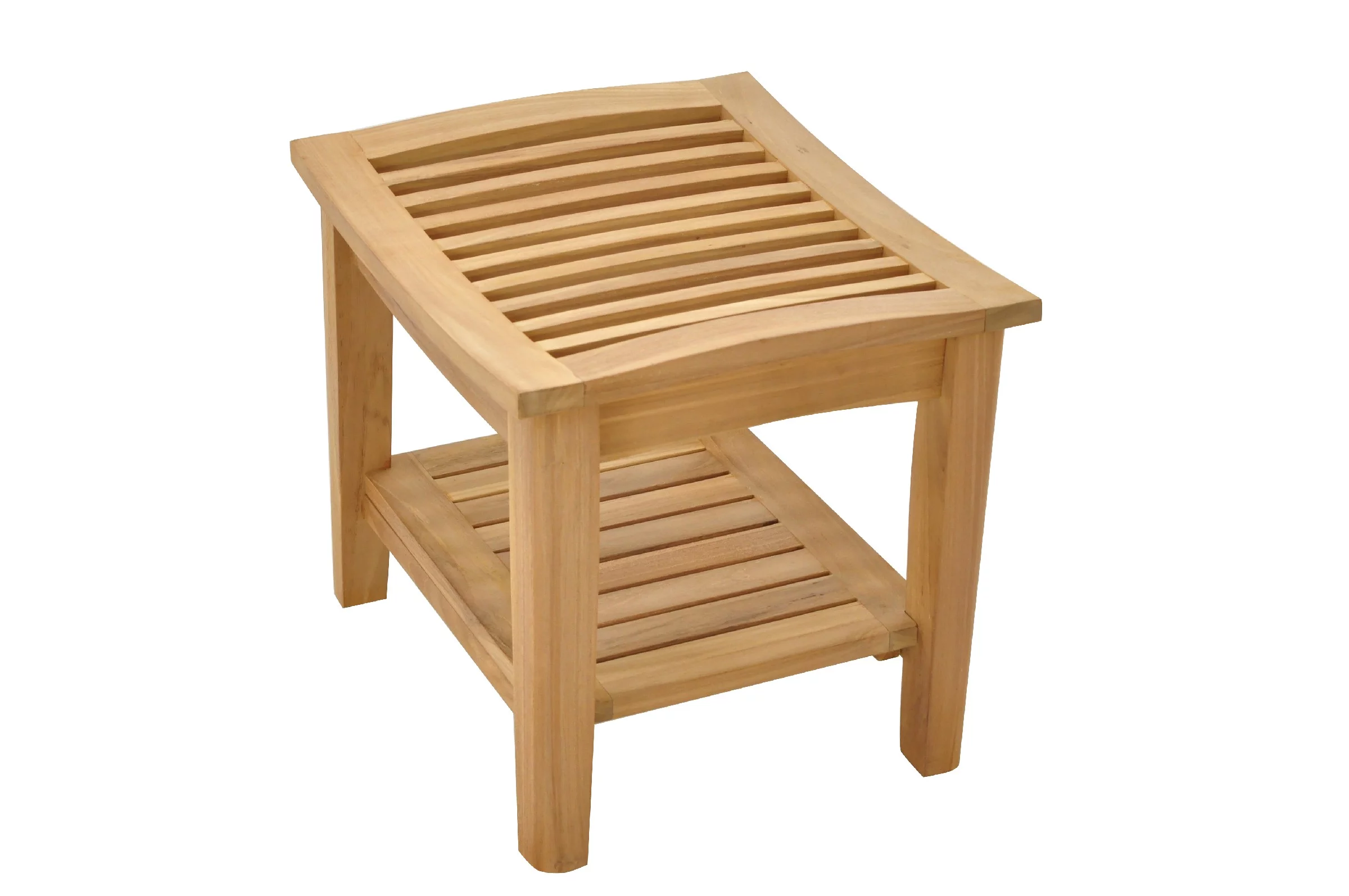 WholesaleTeak Outdoor Patio Grade-A Teak Wood Shower / Bath Room / Pool / Spa Stool Bench with Shelf #WMAXTSWS