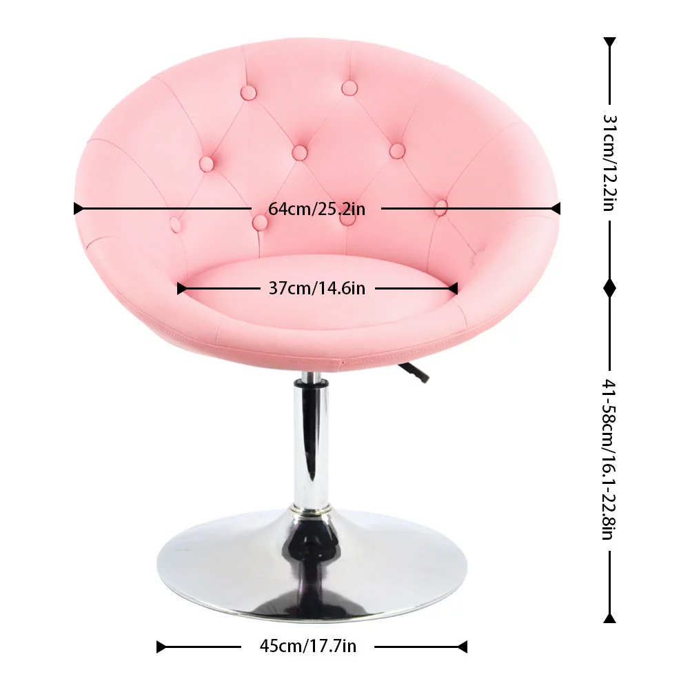 FURWOO Fashion PU Leather Round Tufted Back Tilt Swivel Accent Chair Height Adjustable Swivel with Diamond Backrest for Dining Chair Store Shop Beauty Salon Stool(Pink)