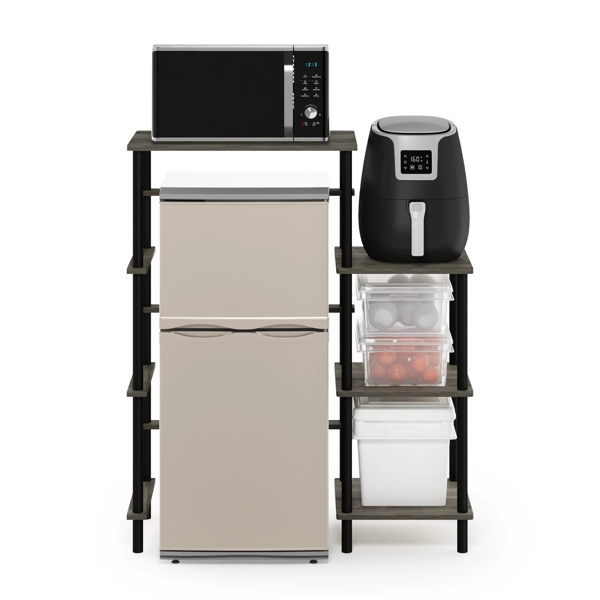 Furinno Turn-N-Tube Toolless Kitchen Storage Shelf Tall, French Oak Grey/Black
