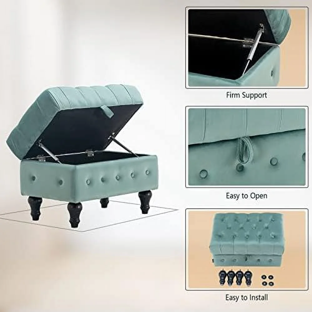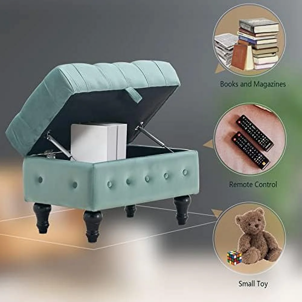 KHBIULIFE Coffee Table Ottoman Button Tufted Velvet Upholstery Footstool Bed Ottoman for Living Room Home Office Space-Saving Toy Box Stool Pink