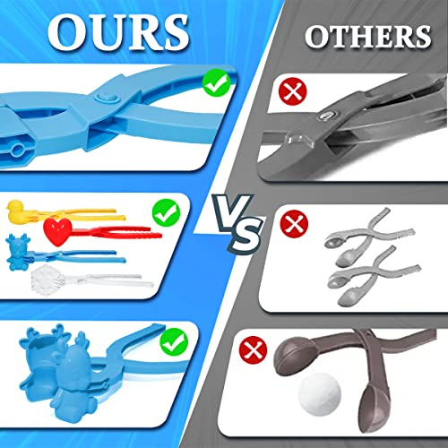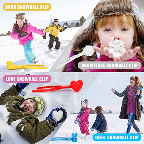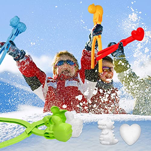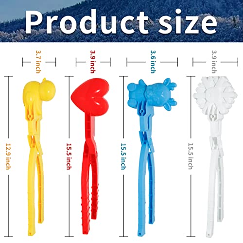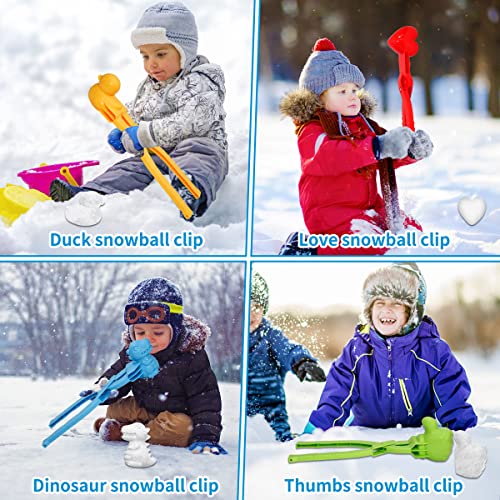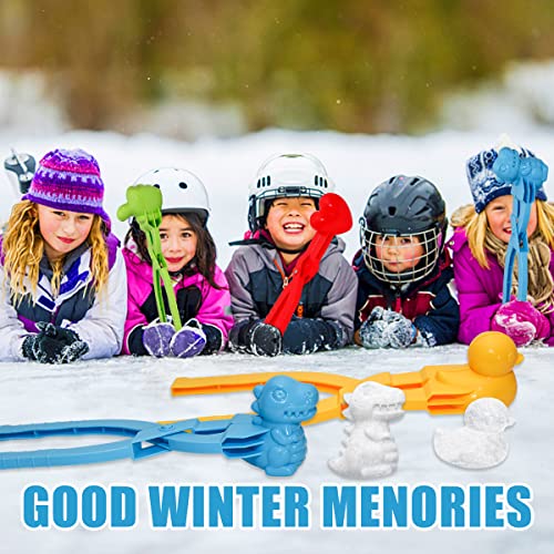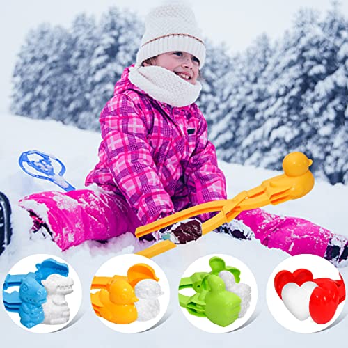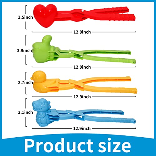 Holady 4PCS Large Size Snowball Maker Clip,Snowball Maker Tool with Handle for Snow Ball Fights, Snow Toys Kids Winter Outdoor Toys(Dinosaur, Love Heart, Duck, Thumb Shape)