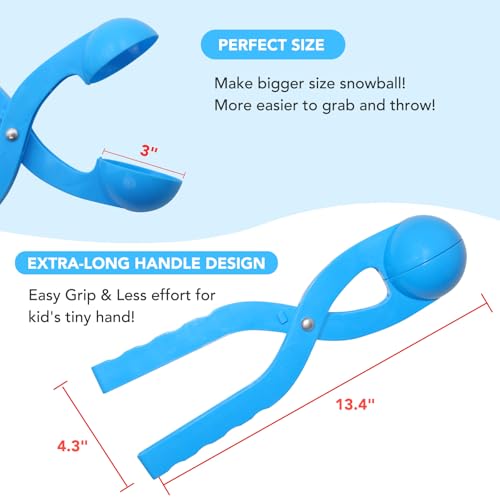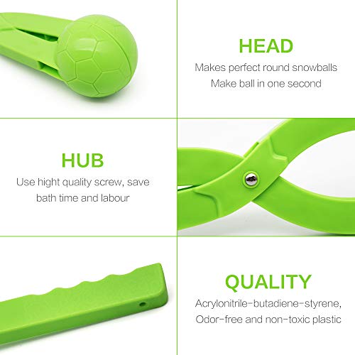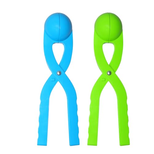 Snow Toys, Snowball Maker Snow Ball Shaper Molds with Handle for Kids Outdoor Indoor Winter Snowball Fight Maker Tool Clip Snow Games for Toddlers Boys Girls Ages 4 5 6 7 (Set of 2,Green,&Ocean Blue)