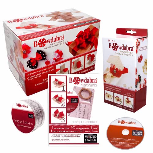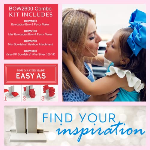 Bowdabra Combo Pack Bow Maker for Ribbon for Wreaths (Set of 4 Tools), Art Supplies Craft Kit Set, Bows for Crafts Wedding Decor, Arts and Crafts for Adults - Wreath Making Supplies Kit, Gray