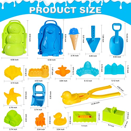 Max Fun 25Pcs Winter Snowball Tool Kit with Handle for Snow Ball Shapes Fights Duck for Kids Toddlers Adults Outdoor Sand Molds Beach Toys