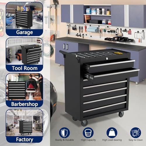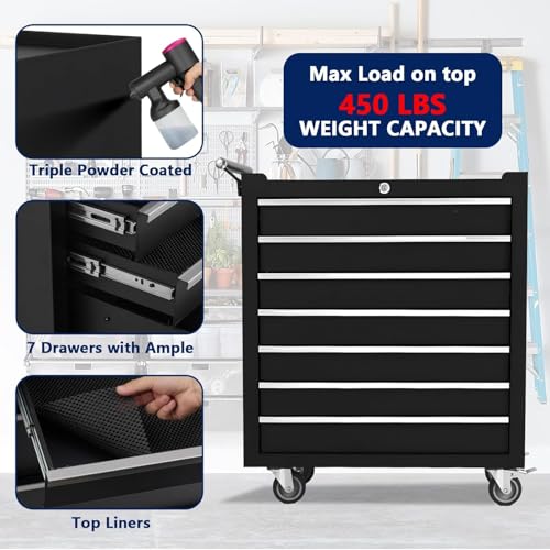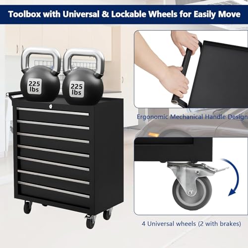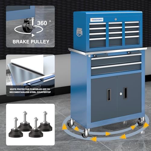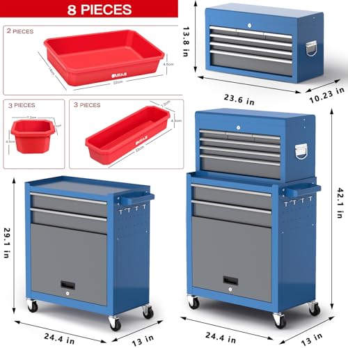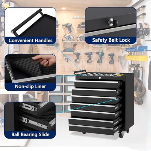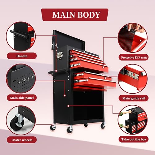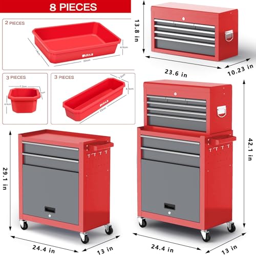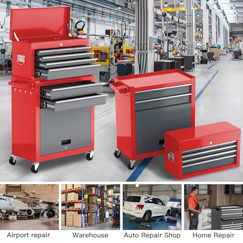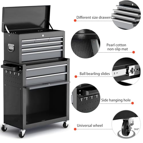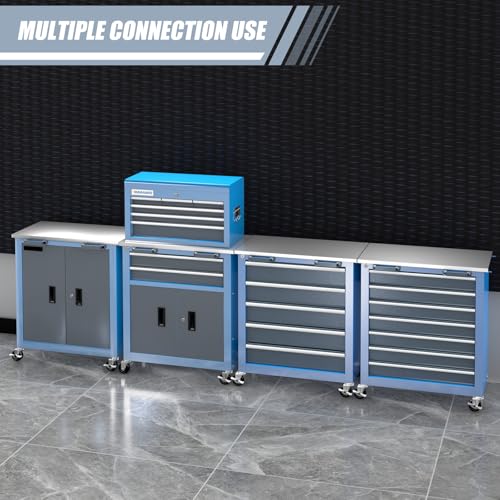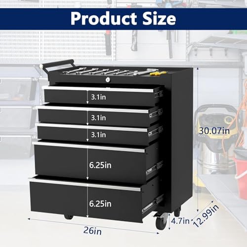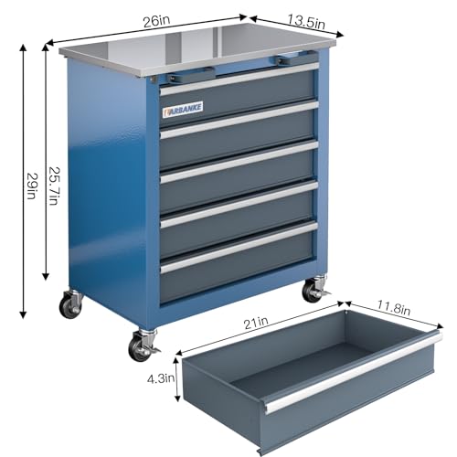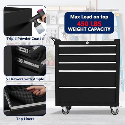 5-Drawer Tool Chest,Rolling Tool Chest on Wheels,Rollin Tool Cabinet with Locking System and Stainless Top, Tool Box with Drawer Liners,Special Link Buckle for Connecting Each Other
