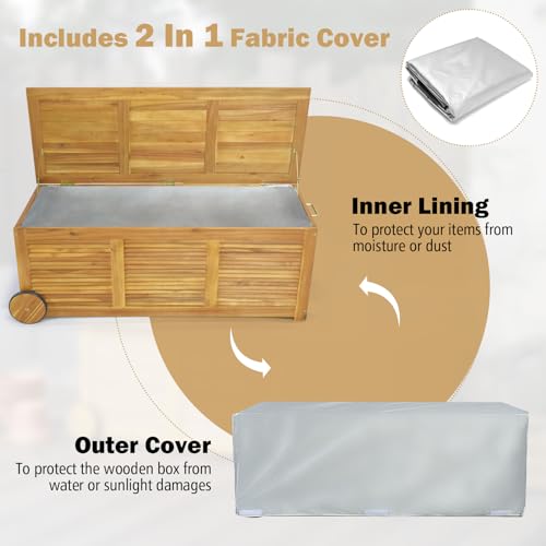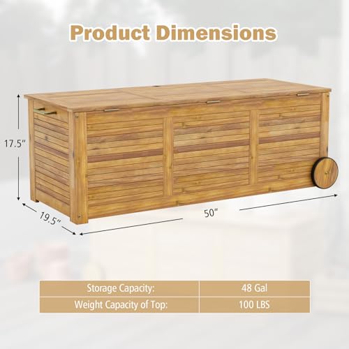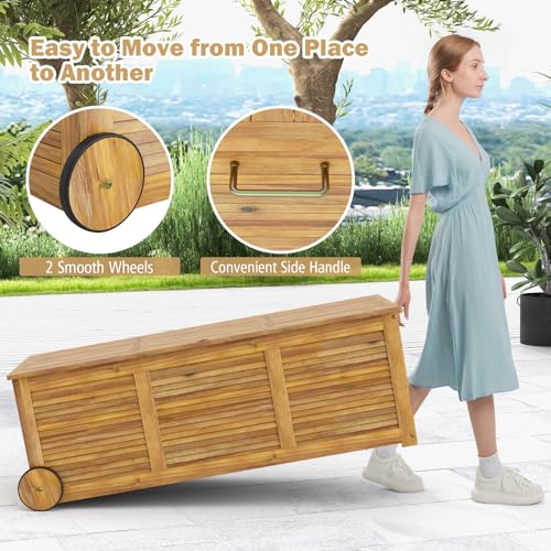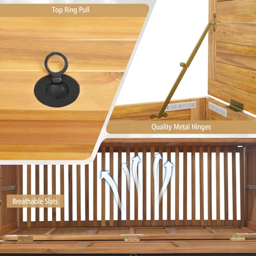 Tangkula 46 Gallon Acacia Wood Deck Box, Garden Backyard Storage Bench, Outdoor Storage Container for Patio Furniture Cushions and Gardening Tools (Natural)