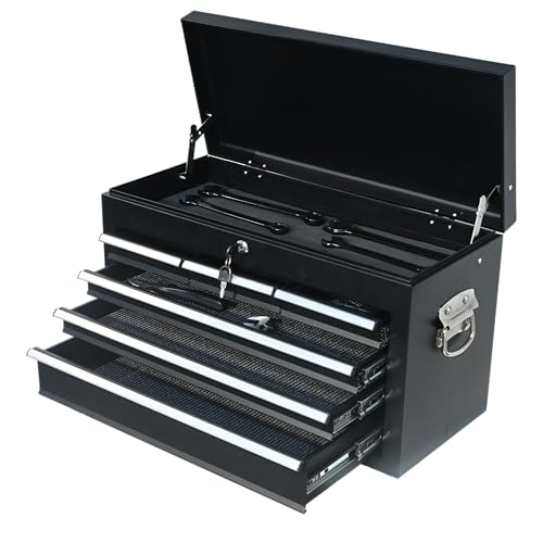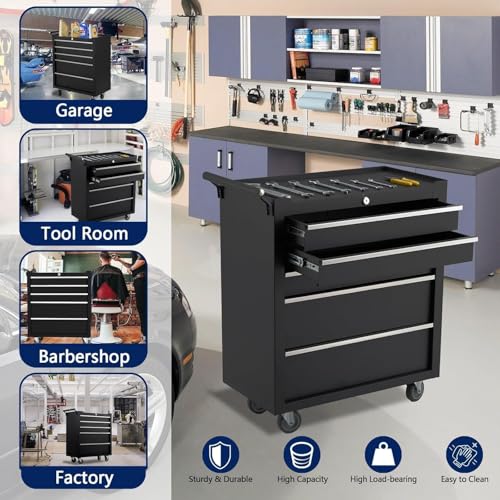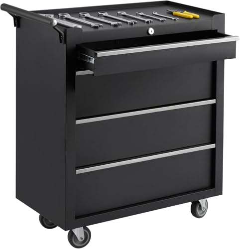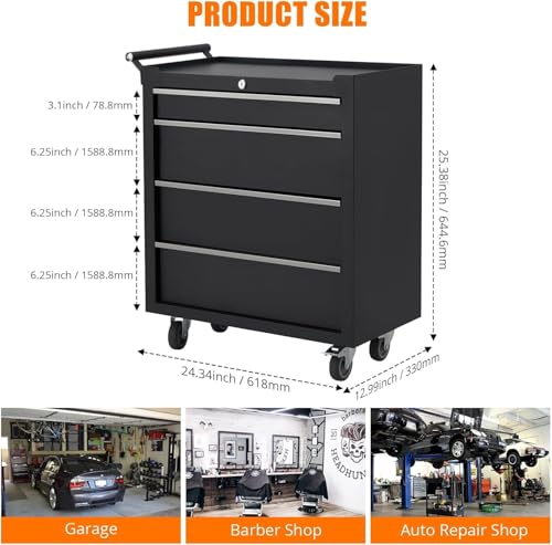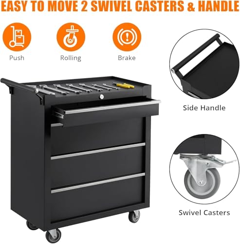 Rolling Tool Chest, 4 Drawers Tool Storage Cabinet, Toolbox with Wheels, Portable Tool Cabinet Organizer with Locking System & Drawer Liners, Tool Storage Cart for Garage, Workshop