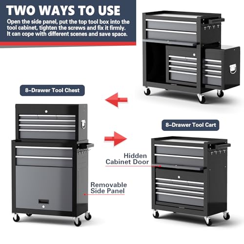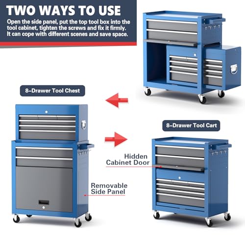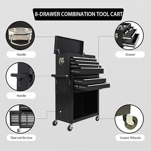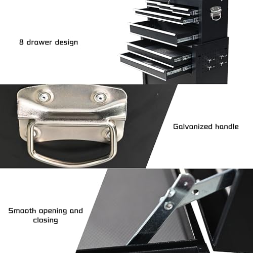 8-Drawer Rolling Tool Chest with Wheels and Door, Sliding Drawer, Stainless Steel Countertop, Large Workbench Forming Tool Chest for Garage Workshop