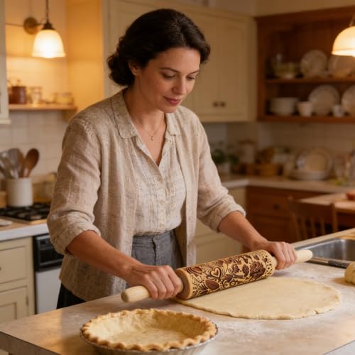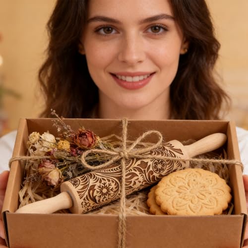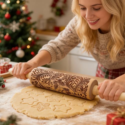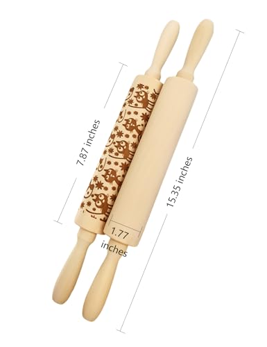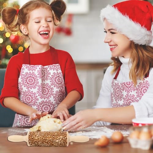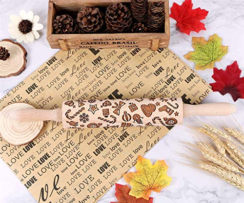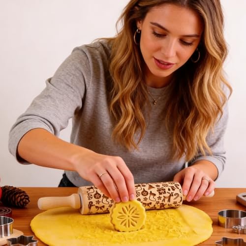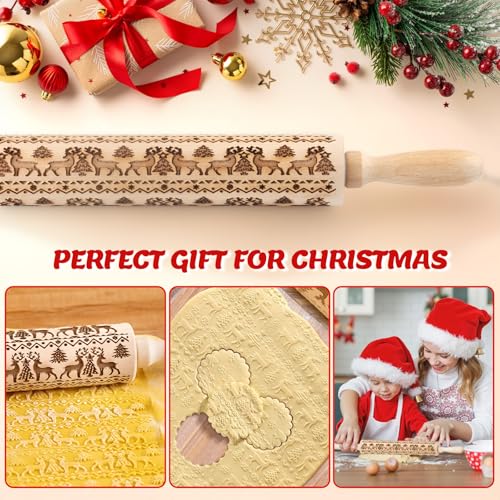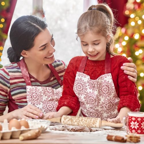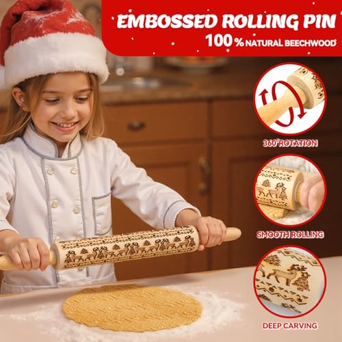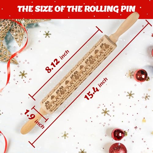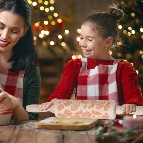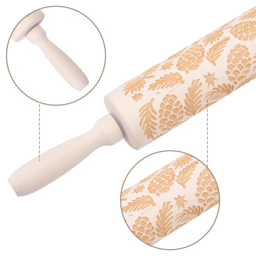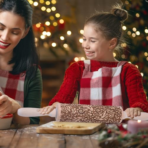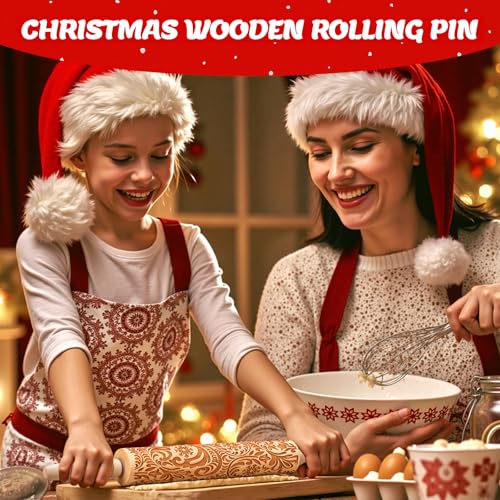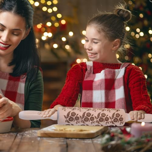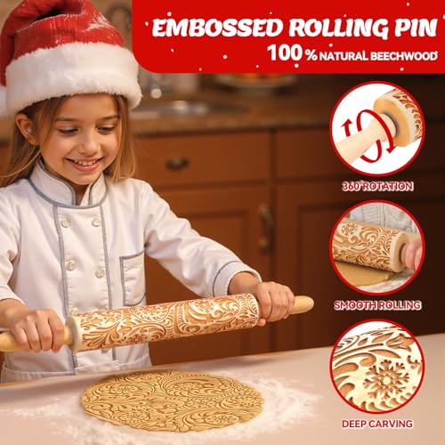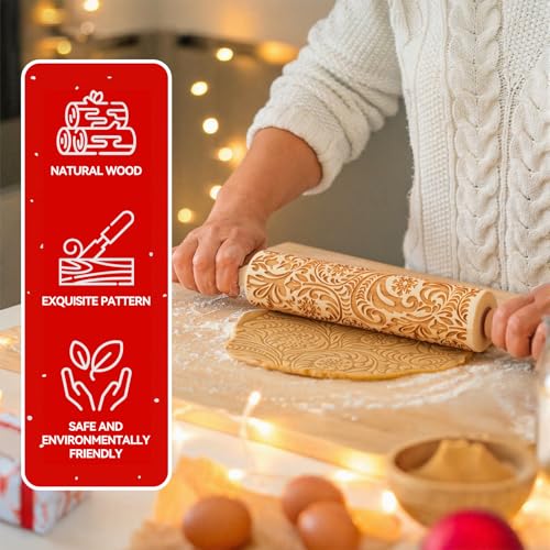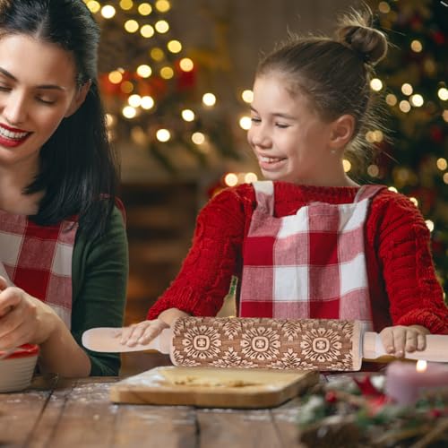Christmas Gifts Wooden Embossed Rolling Pin for Baking, Stocking Stuffers Gifts for Women, Deep Engraved Embossing Rolling Pins with Snow Pattern Designs for Baking Cookies Stamps Roller DIY Tools