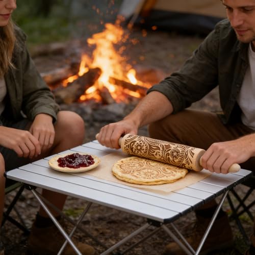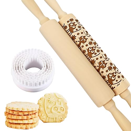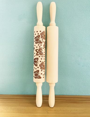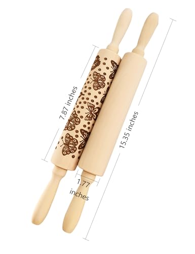 Embossed Rolling Pin 2 Pack, Wooden Non Stick Rolling Pin for Baking with Pattern Designs, French Pastry Dough Roller for Cookies, Pie Crust, Fondant, Kitchen Baking Tools Supplies Set (2 Piece)