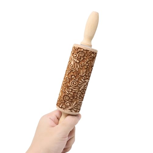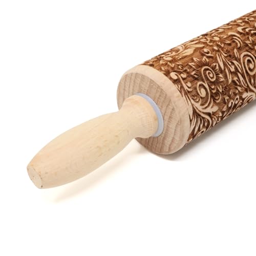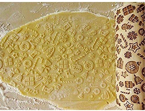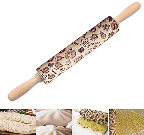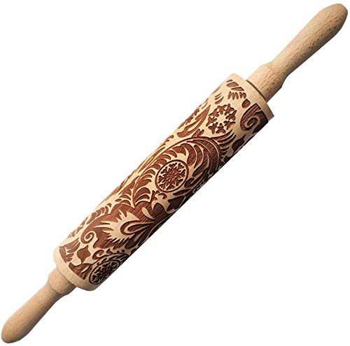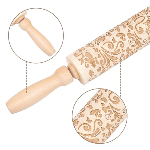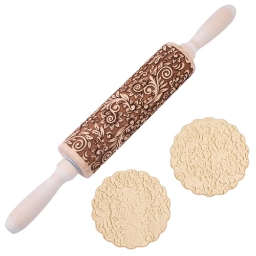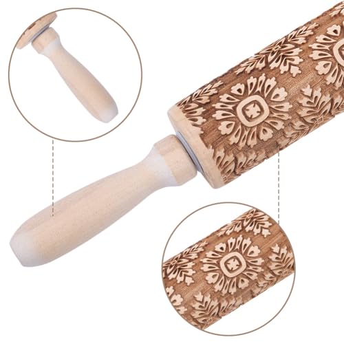 Embossed Rolling Pins for Christmas,3D Paisley Pattern Flower Snowflake rattan Wooden Roll Pin Laser Engraved Rolling Pin DIY Tool,Rolling Pin for Kids and Adults to Make Cookie Dough (38 * 5)